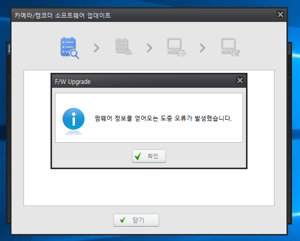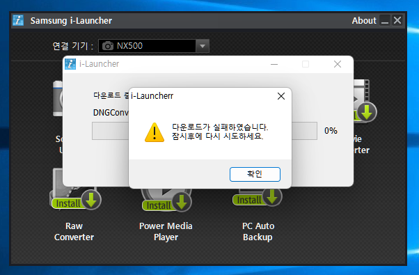 그래서 다른 곳에서 i-launcer 설치파일을 구해서 실행해 보았더니 서버를 닫았는지 위와 같이 각종 부가 프로그램이나 펌웨어 업데이트를 할 수 없게 되었습니다.