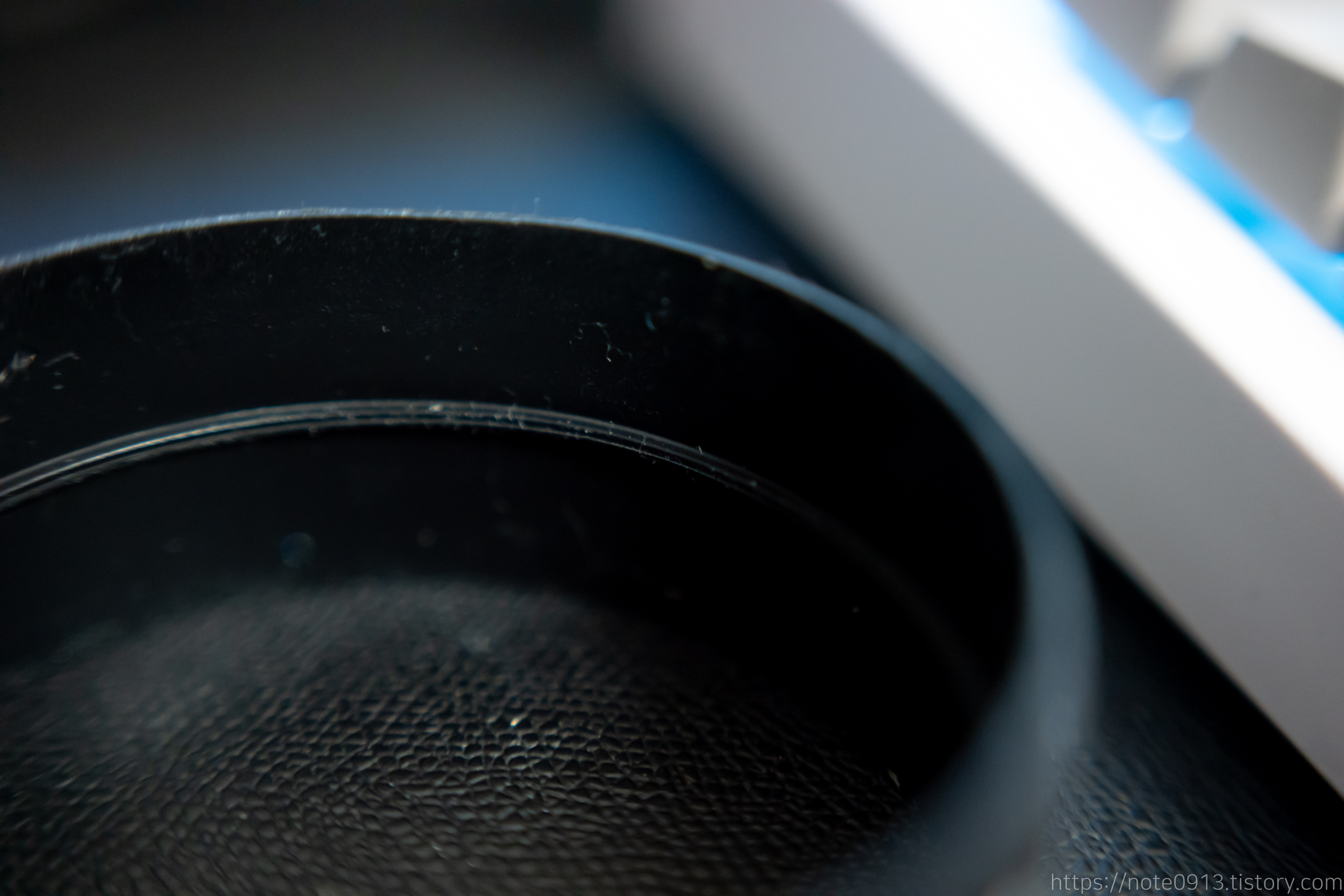 아래 부분입니다. 밑부분에 회전방향을 표시하는 그림이 각인되어 잇습니다. 또한 핸드 스트랩을 연결할 수 있는 구멍이 있습니다.