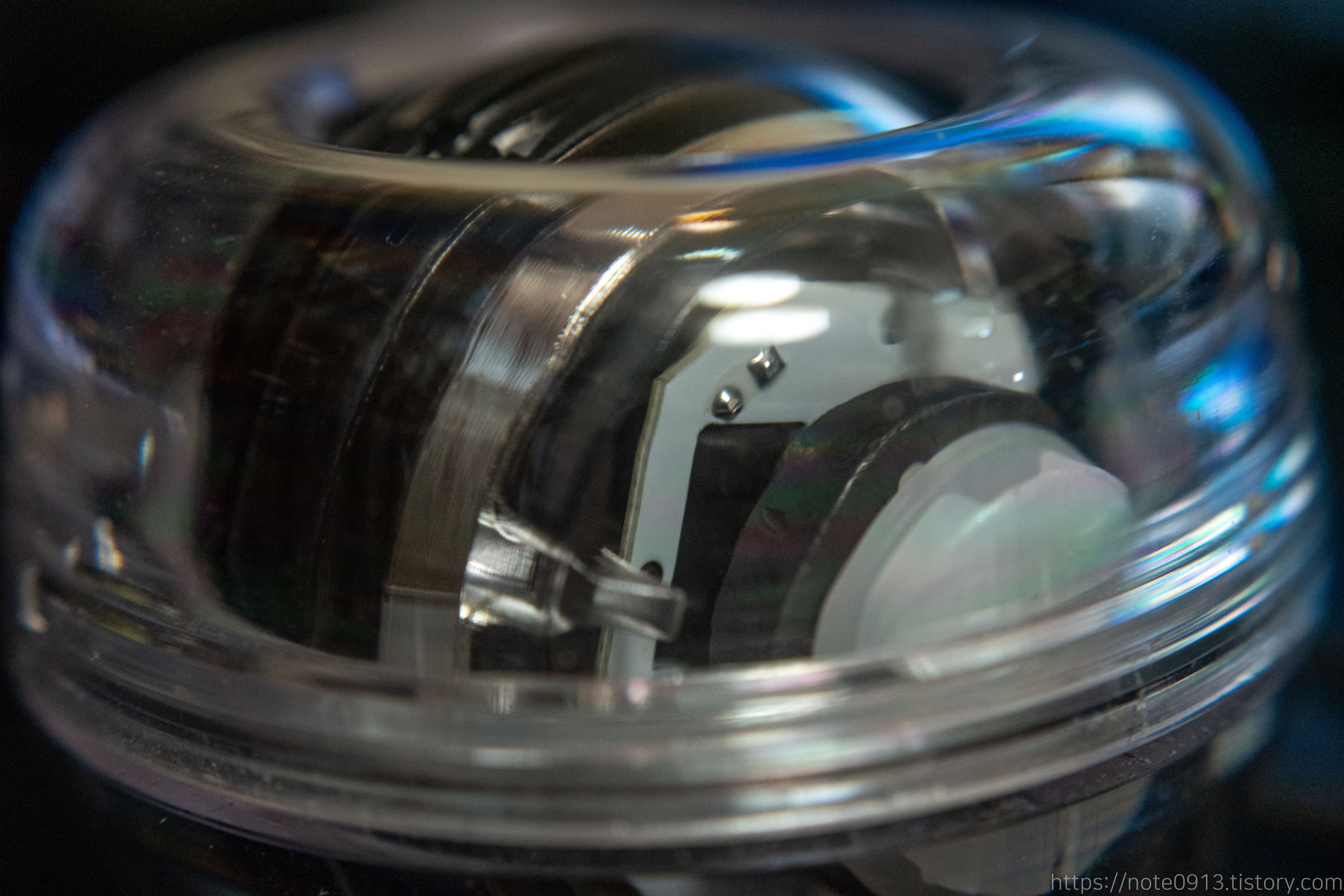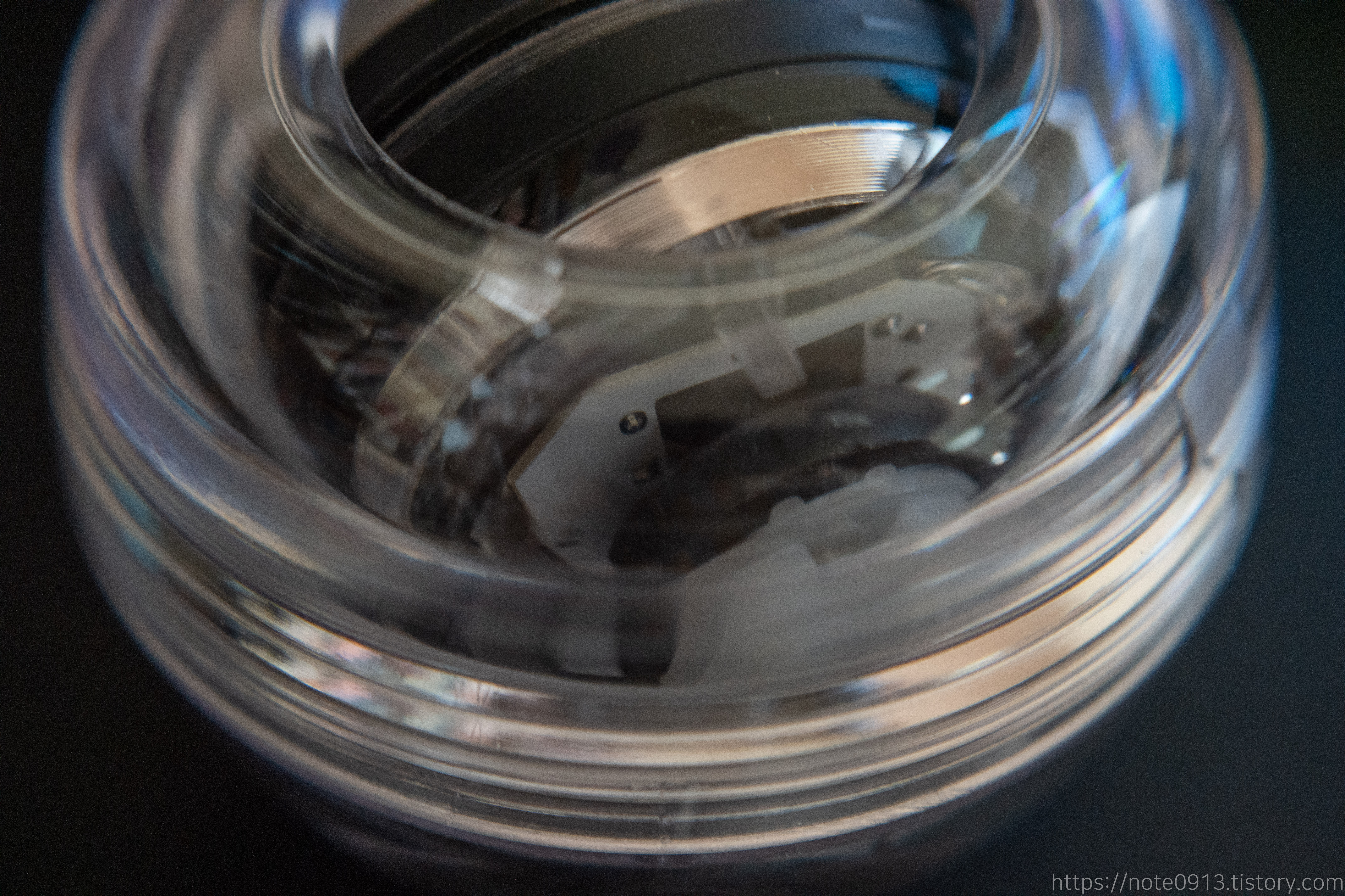 가까이에서 찍은 자이로 볼입니다. 겉부분은 폴리카보네이트(PC) 소재로 되어있고 만듦새는 꽤 괜찮은 거 같습니다.