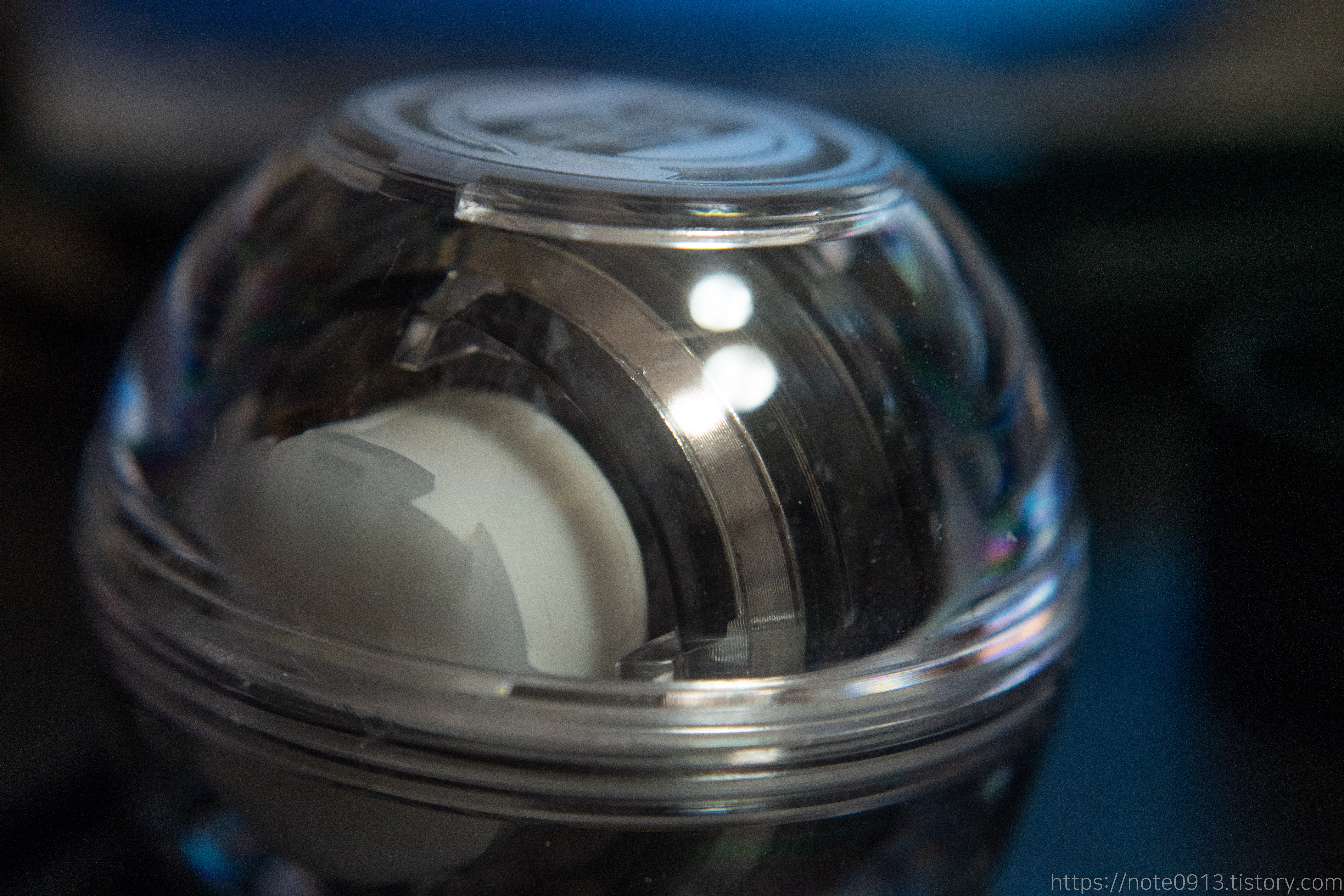 가까이에서 찍은 자이로 볼입니다. 겉부분은 폴리카보네이트(PC) 소재로 되어있고 만듦새는 꽤 괜찮은 거 같습니다.