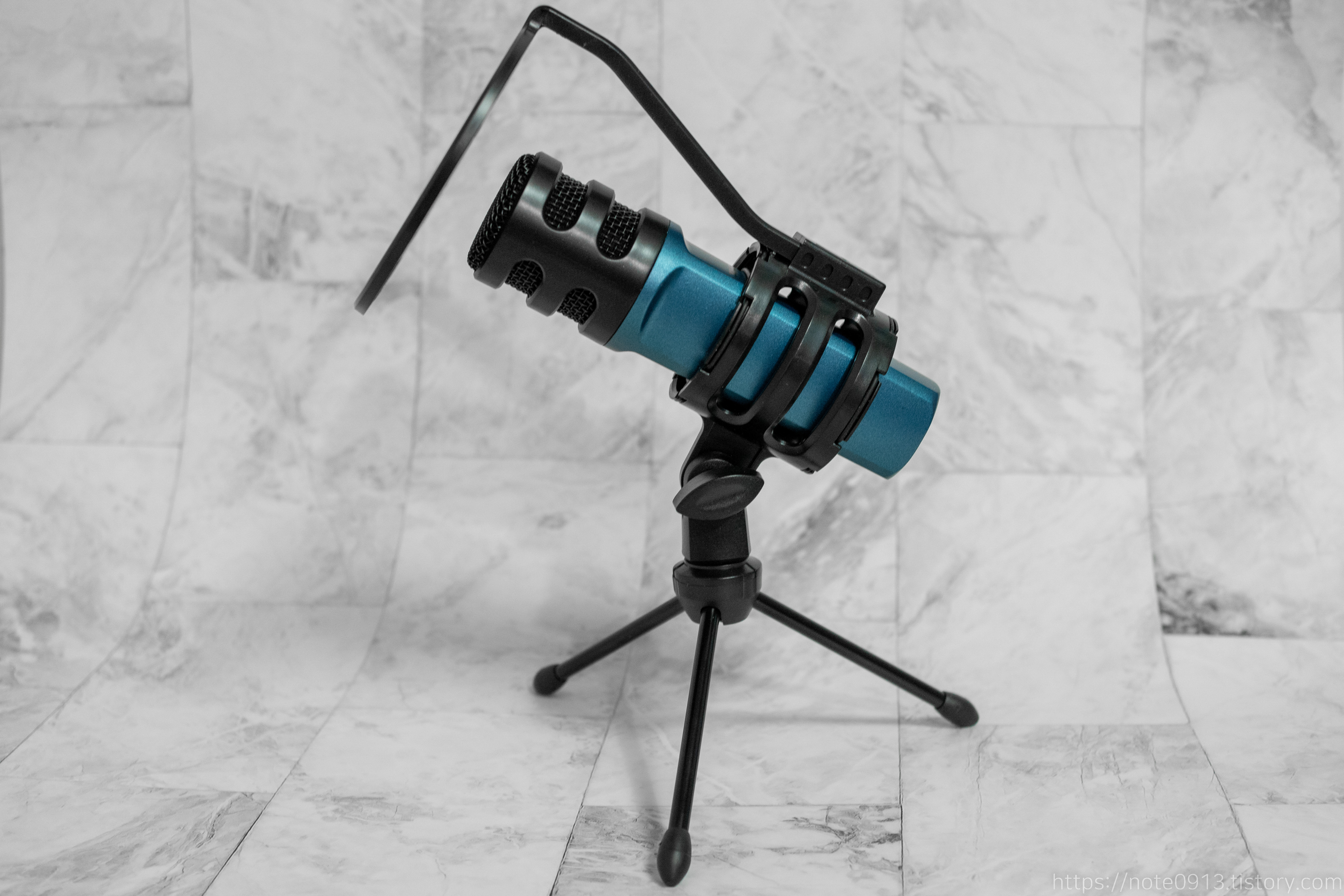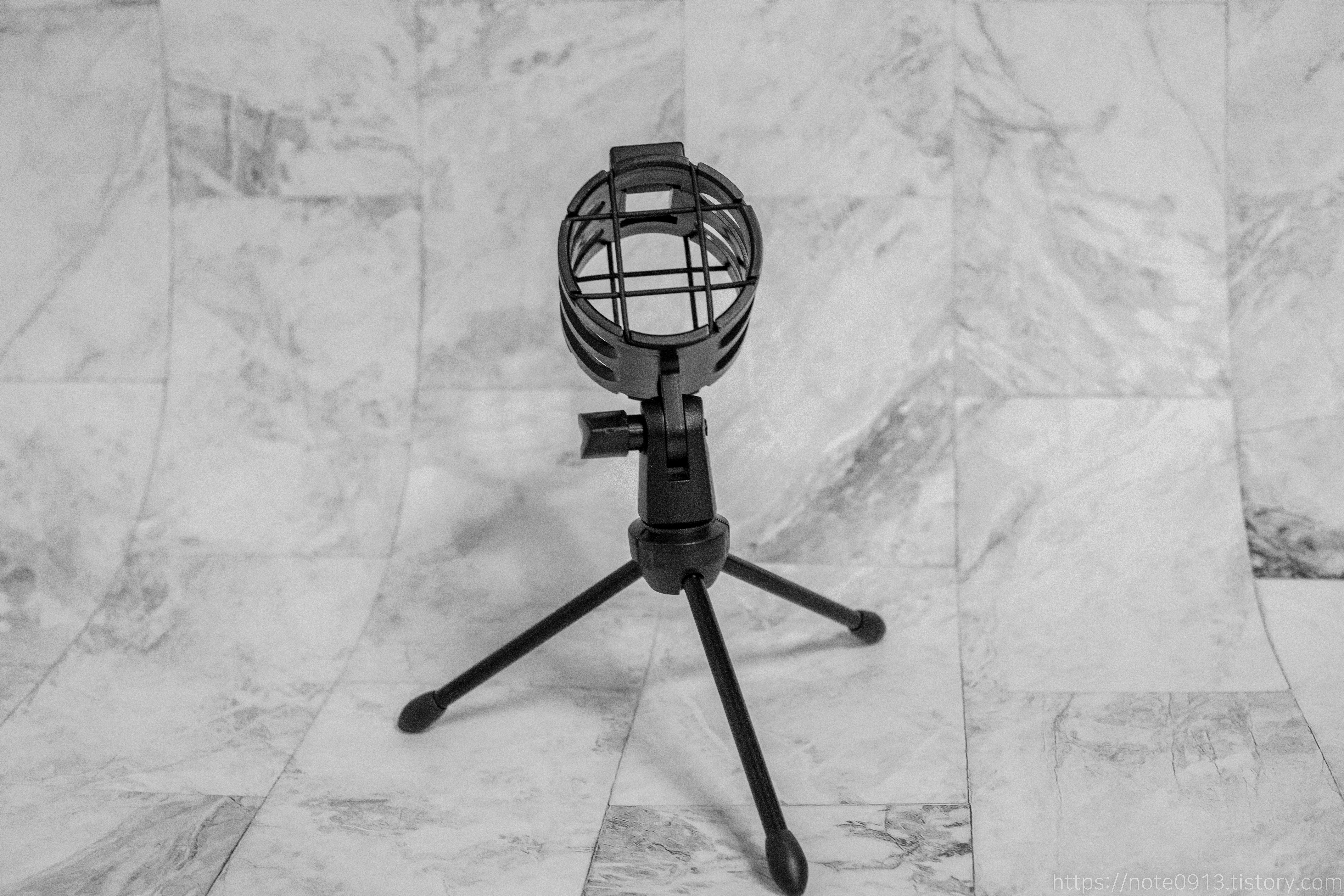 마이크와 쇼크마운트, 스탠드를 결합한 모습입니다.