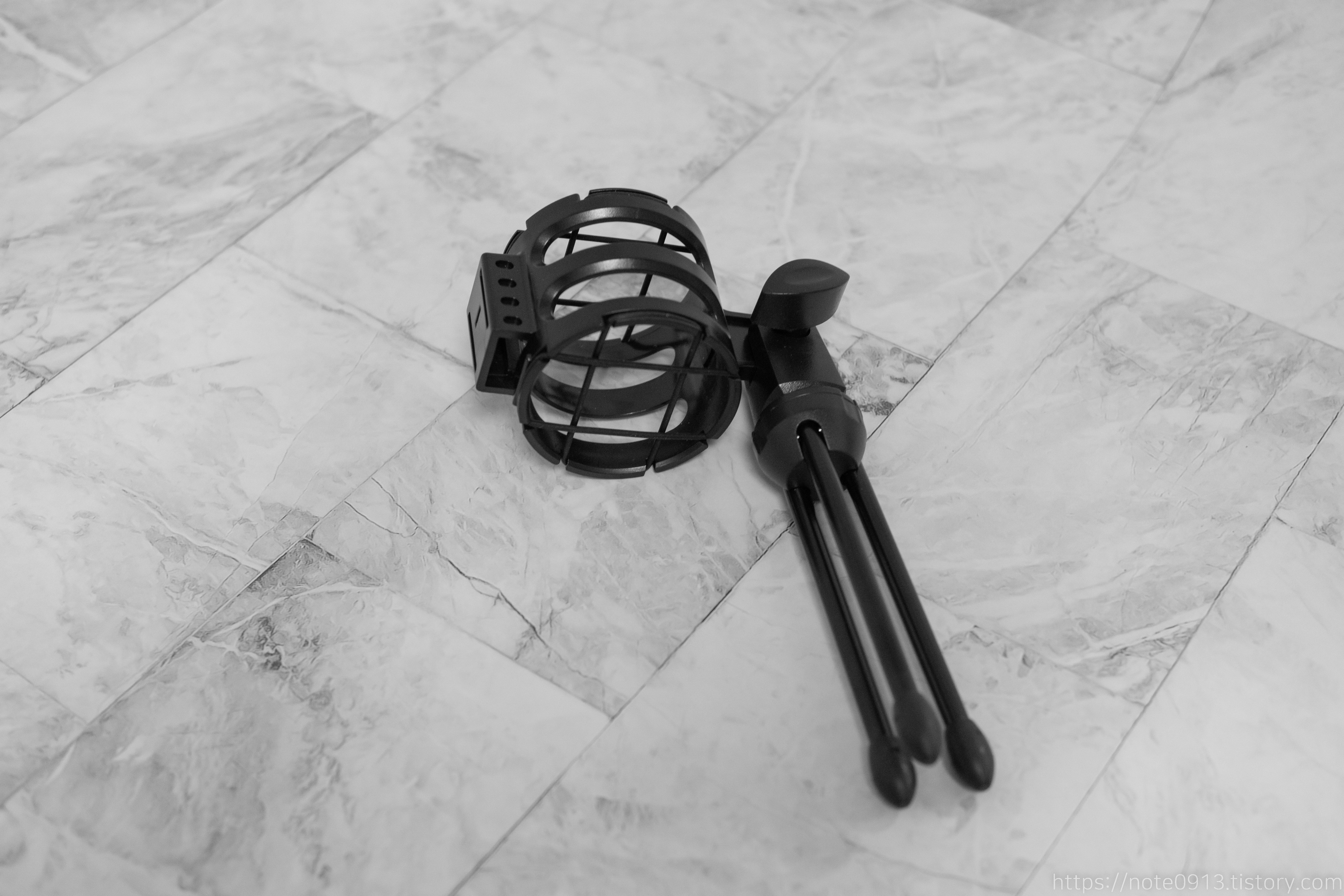 콘덴서 마이크와 쇼크마운트, 스탠드가 결합되어서 포장되어 있습니다.