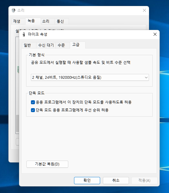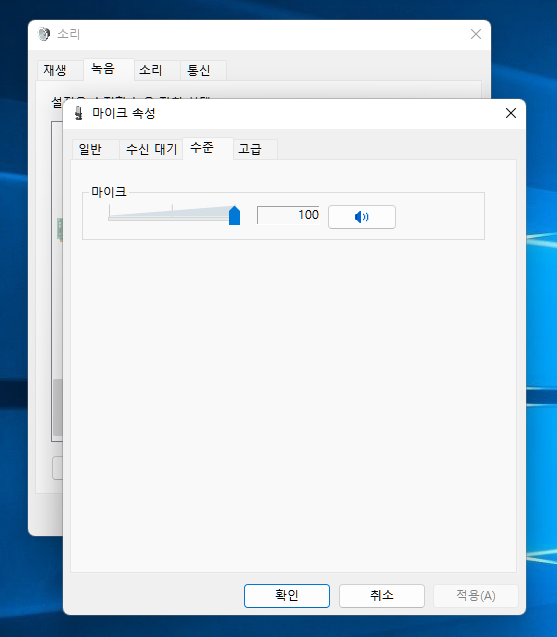 마이크 속성입니다. USB 방식이라 마이크 수준에서 따로 증폭 메뉴는 없습니다.