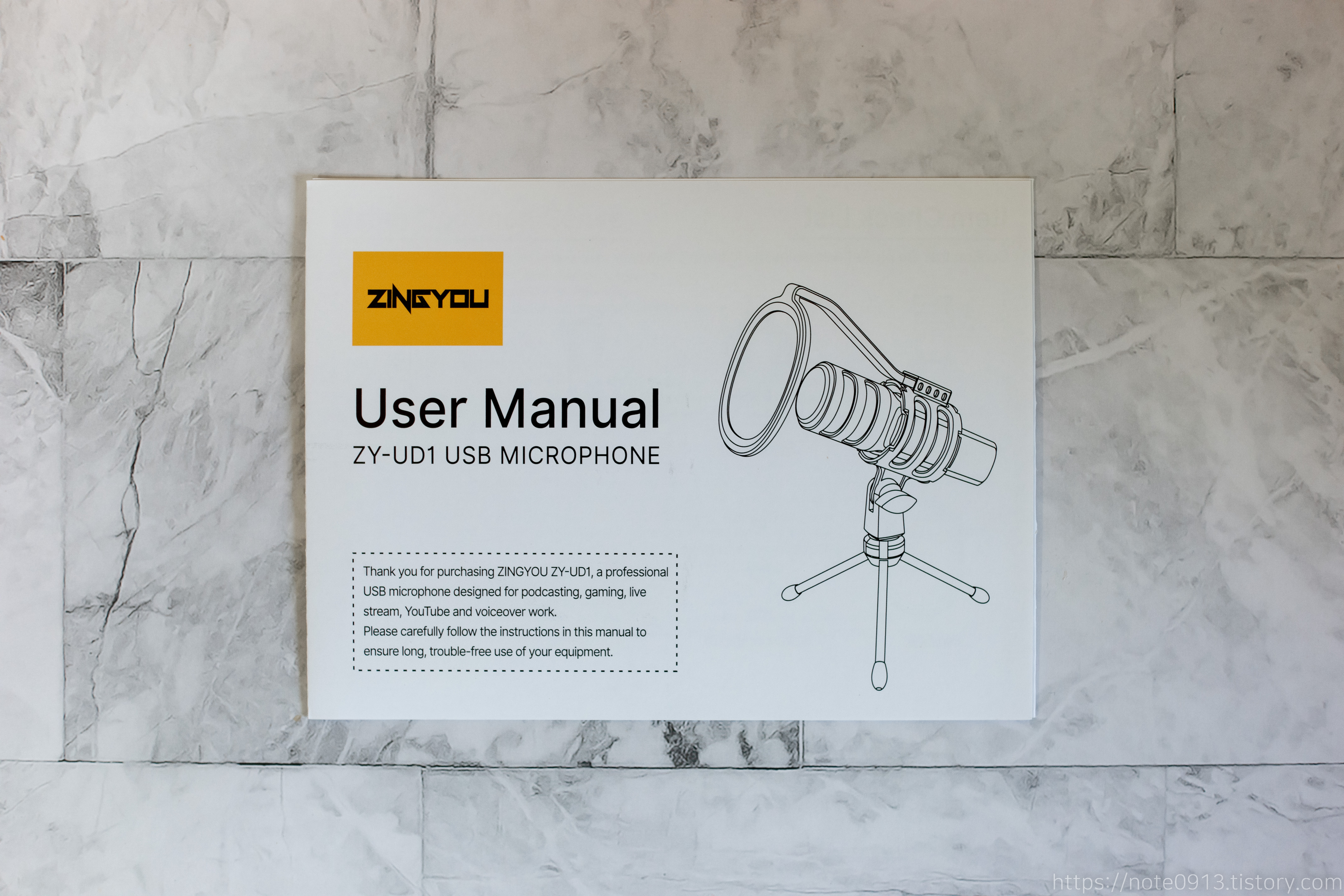 마이크 모양은 윗부분은 원통형이고 아래쪽은 사각형의 형태를 하고 있습니다. 회사이름이 ZINGYOU 인가 봅니다. ZINGYOU라는 글자가 적혀있네요.