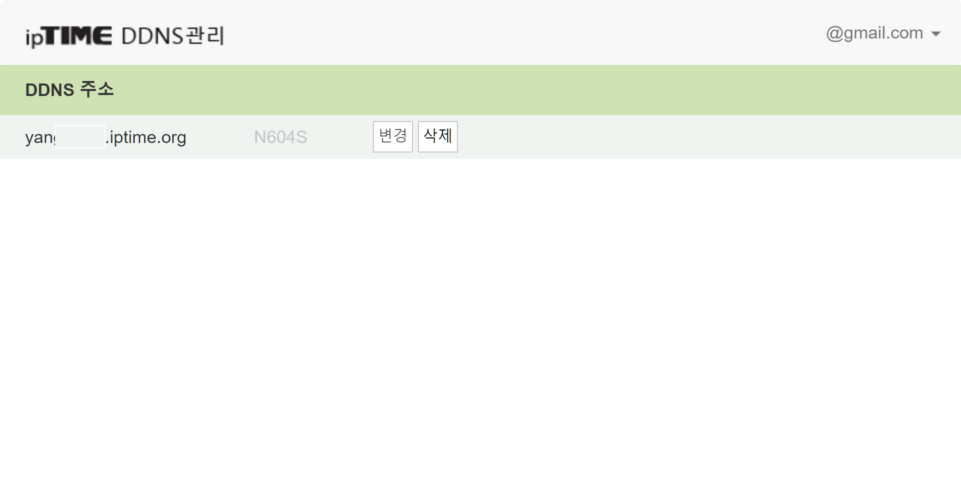 로그인을 하게되면 로그인한 이메일로 등록된 DDNS 목록을 확인할 수 있습니다.