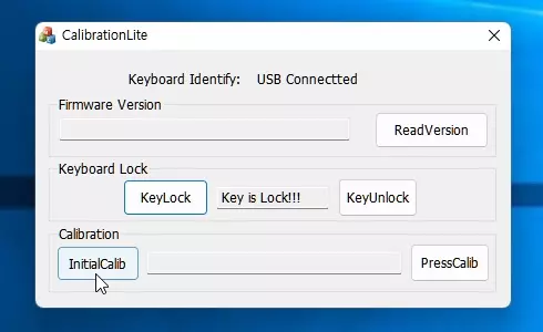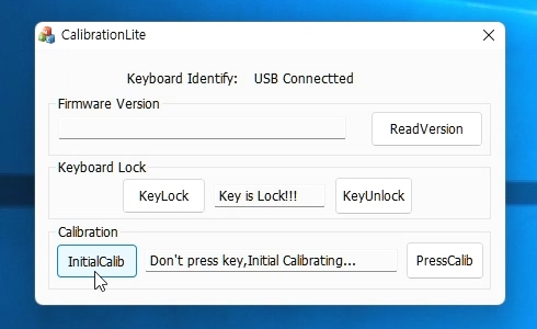 InitialCalib 버튼을 누르면 Don't press key, Initial Calibrating.. 이라는 문구가 나타납니다.
