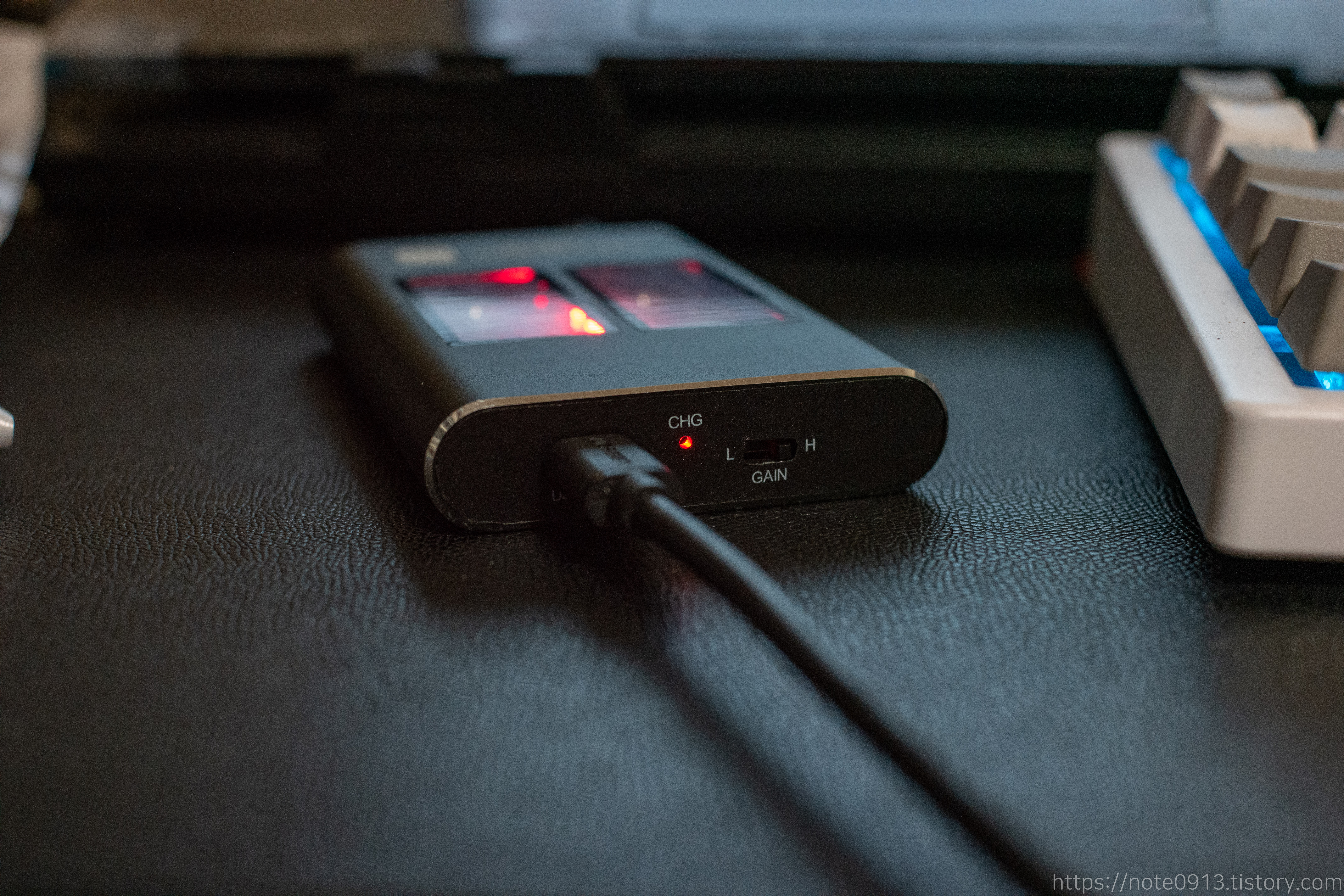 충전 중일 때 사용하면 사용할 수 있는데 그라운드 루프 노이즈 때문인지 노이즈도 같이 들립니다. 테스트 해보니 접지되지 않은 전원을 이용하면 노이즈기 사라집니다. 예를 들면 휴대폰 충전기에 연결하거나, 충전 중이지 않은 노트북으로 충전하거나 접지되지 않은 충전기로 충전 등, 접지를 한 곳으로 만들면 노이즈가 사라집니다.