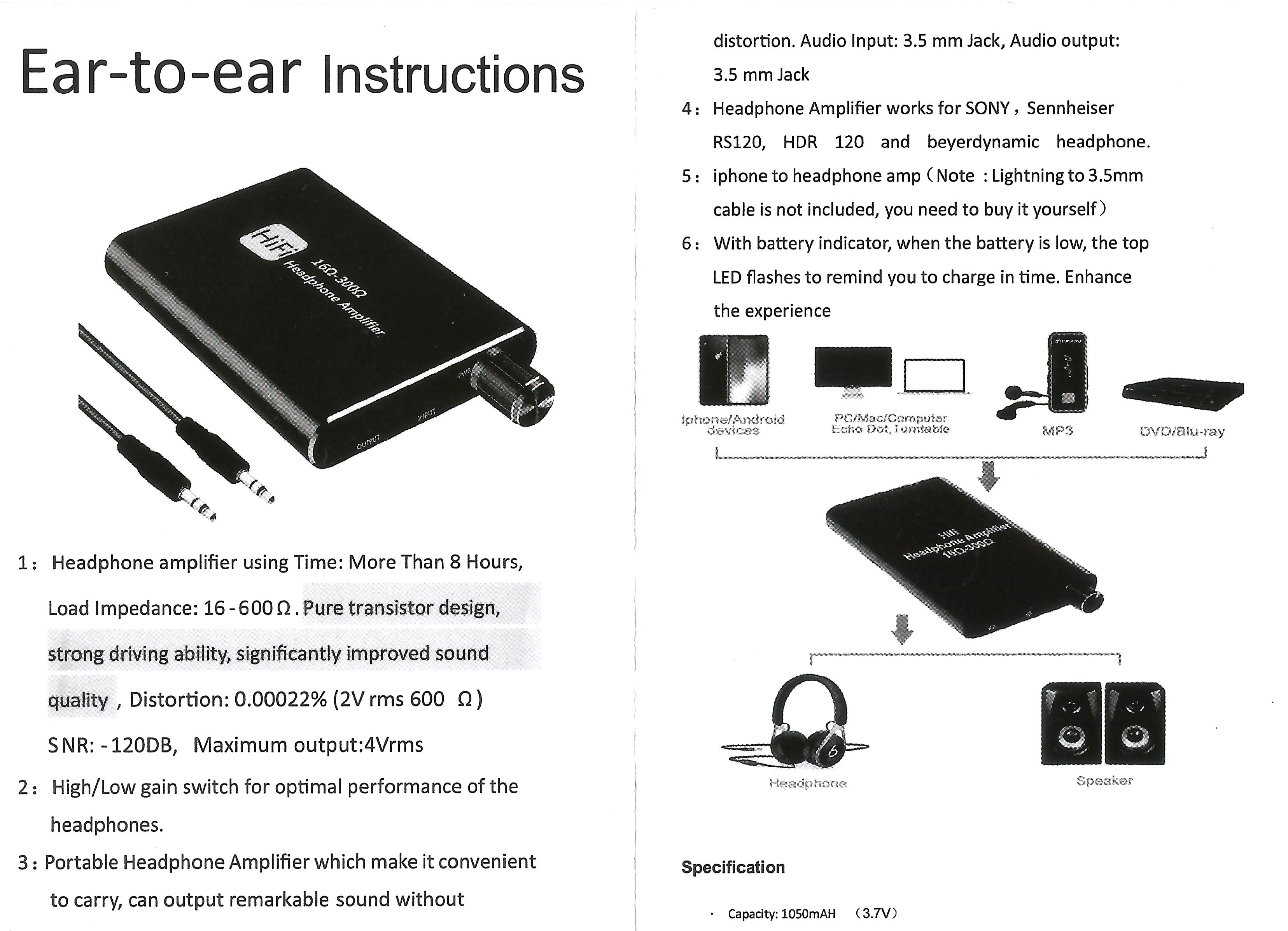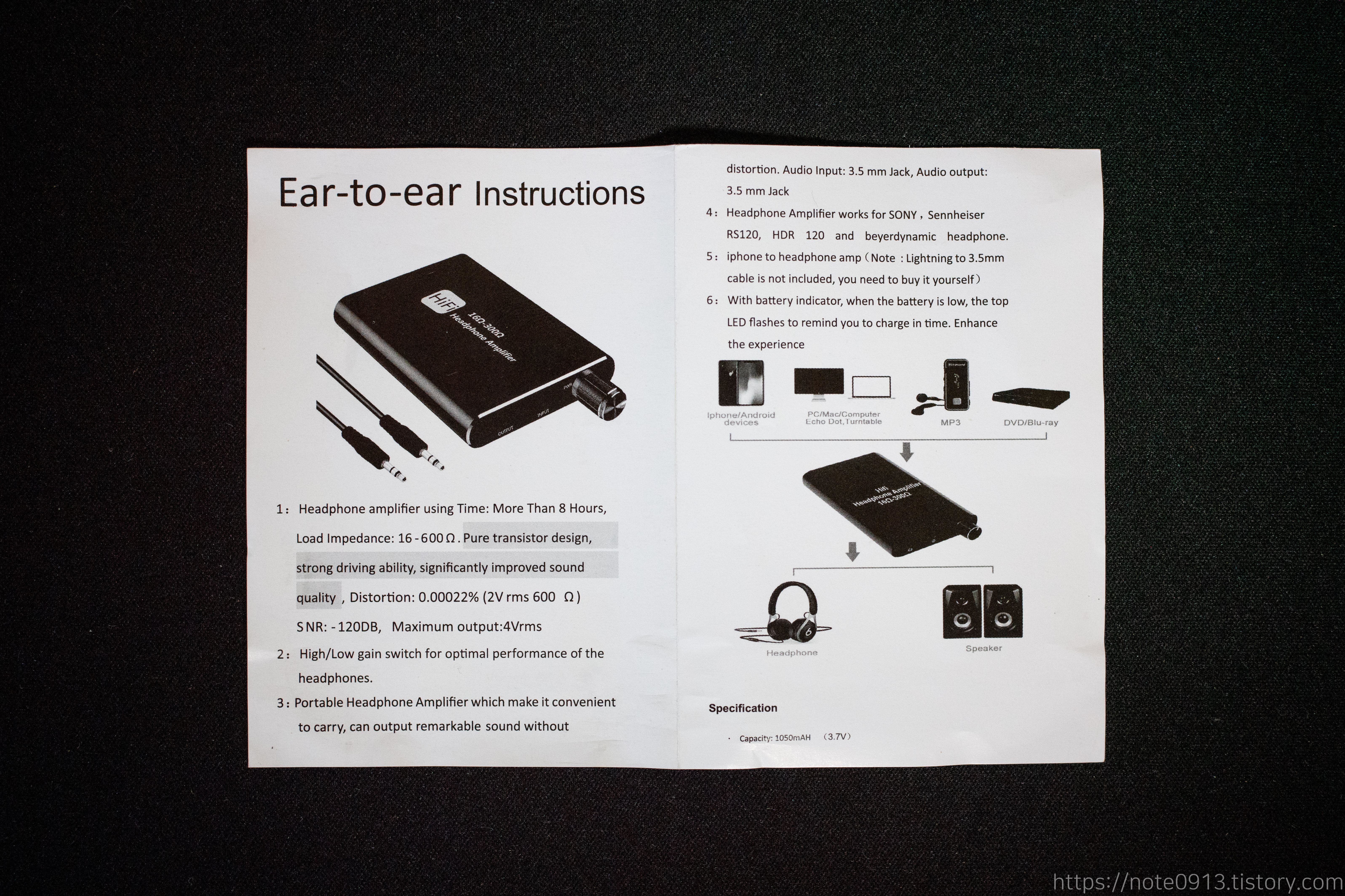 의외인 점은 제품표면에는 출력 임피던스 범위가 16 ~ 300Ω 까지인데 설명서에는 600Ω 까지 가능하다고 적혀 있네요.