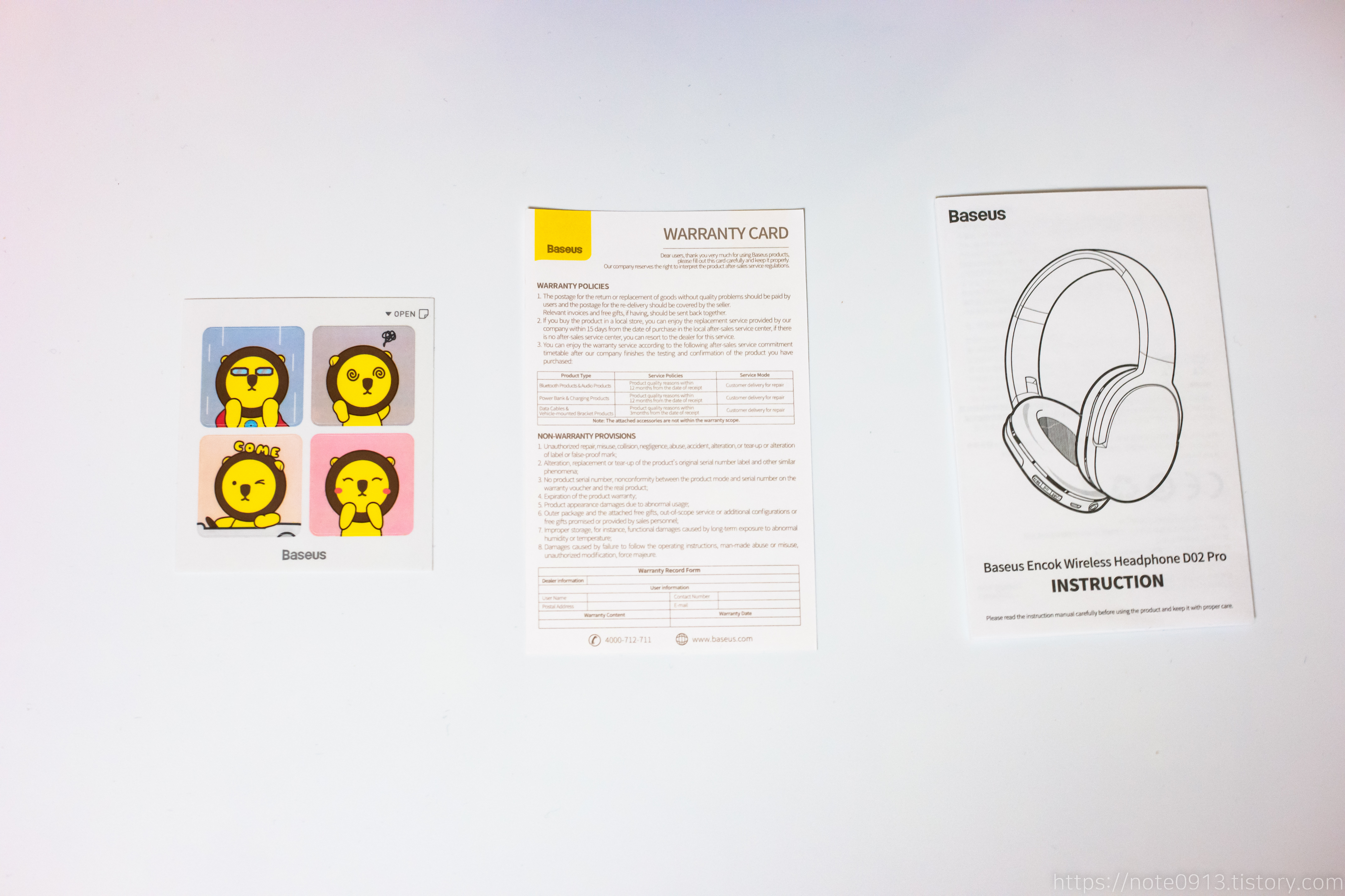 사용설명서와 보증서, 그리고 스티커가 들어있습니다.