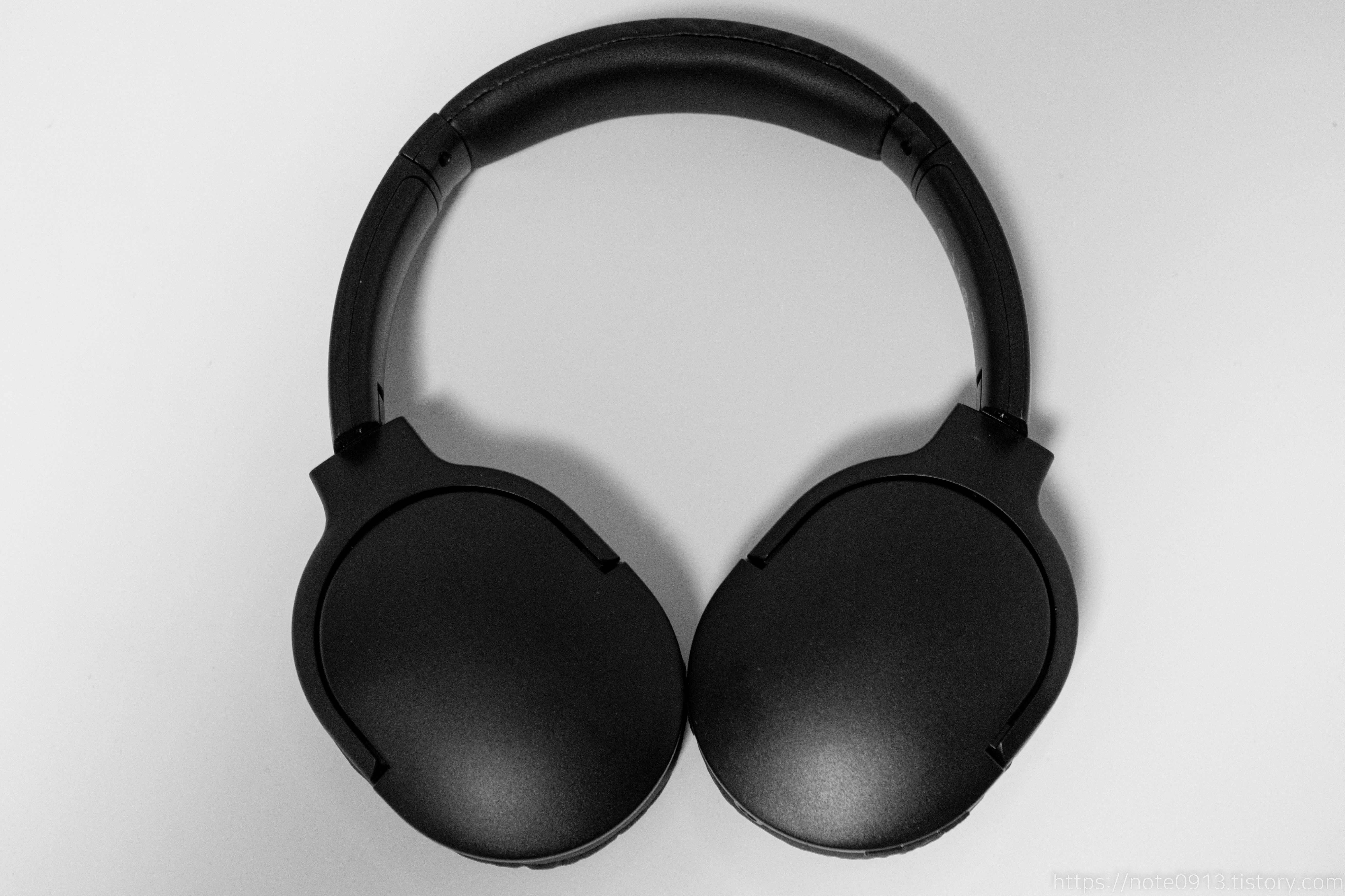 D02 Pro 헤드폰의 앞과 뒷모습입니다. 무광 재질이고 플라스틱입니다.