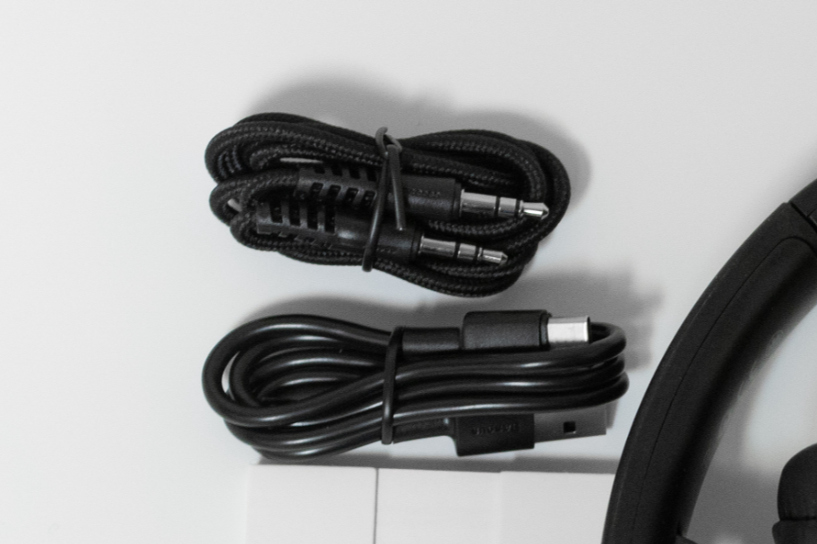케이블은 3,5mm AUX 케이블과 USB A to C 케이블이 들어있습니다. AUX 케이블은 패브릭 재질이라 촉감이 나쁘지 않고 괜찮아 보입니다.