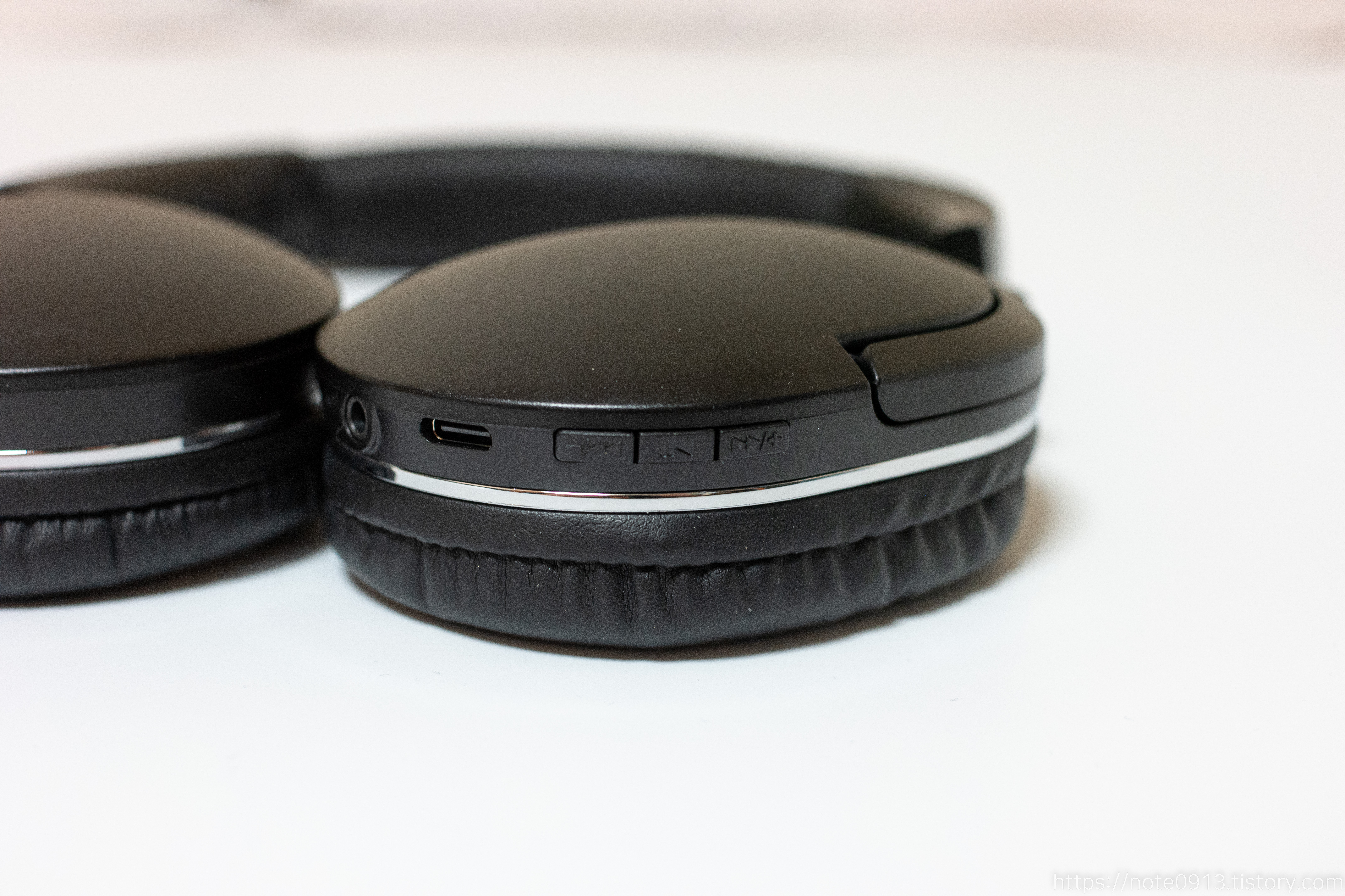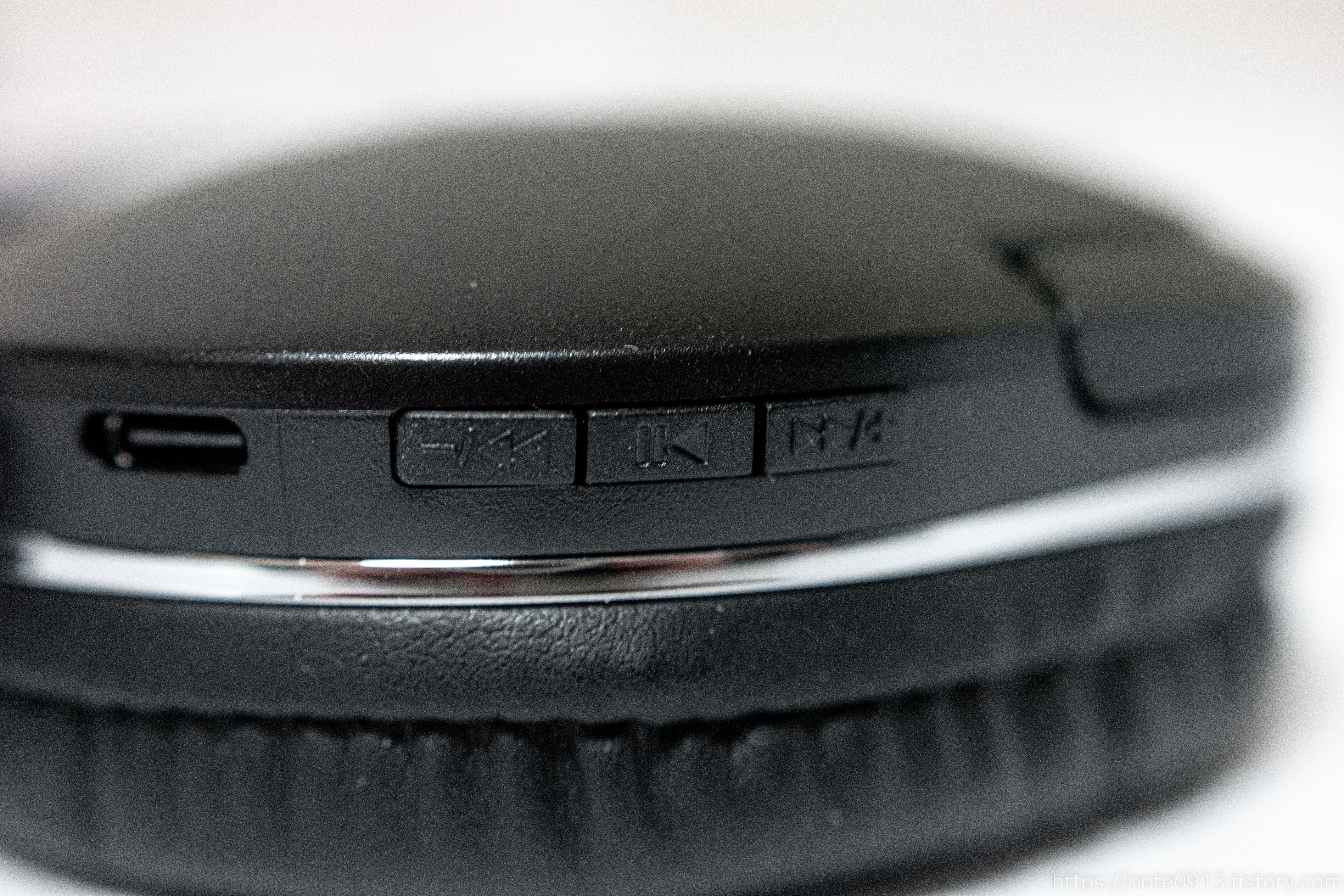 헤드폰 조작부 부분입니다. 왼쪽 유닛에 조작버튼들이 위치해 있습니다.