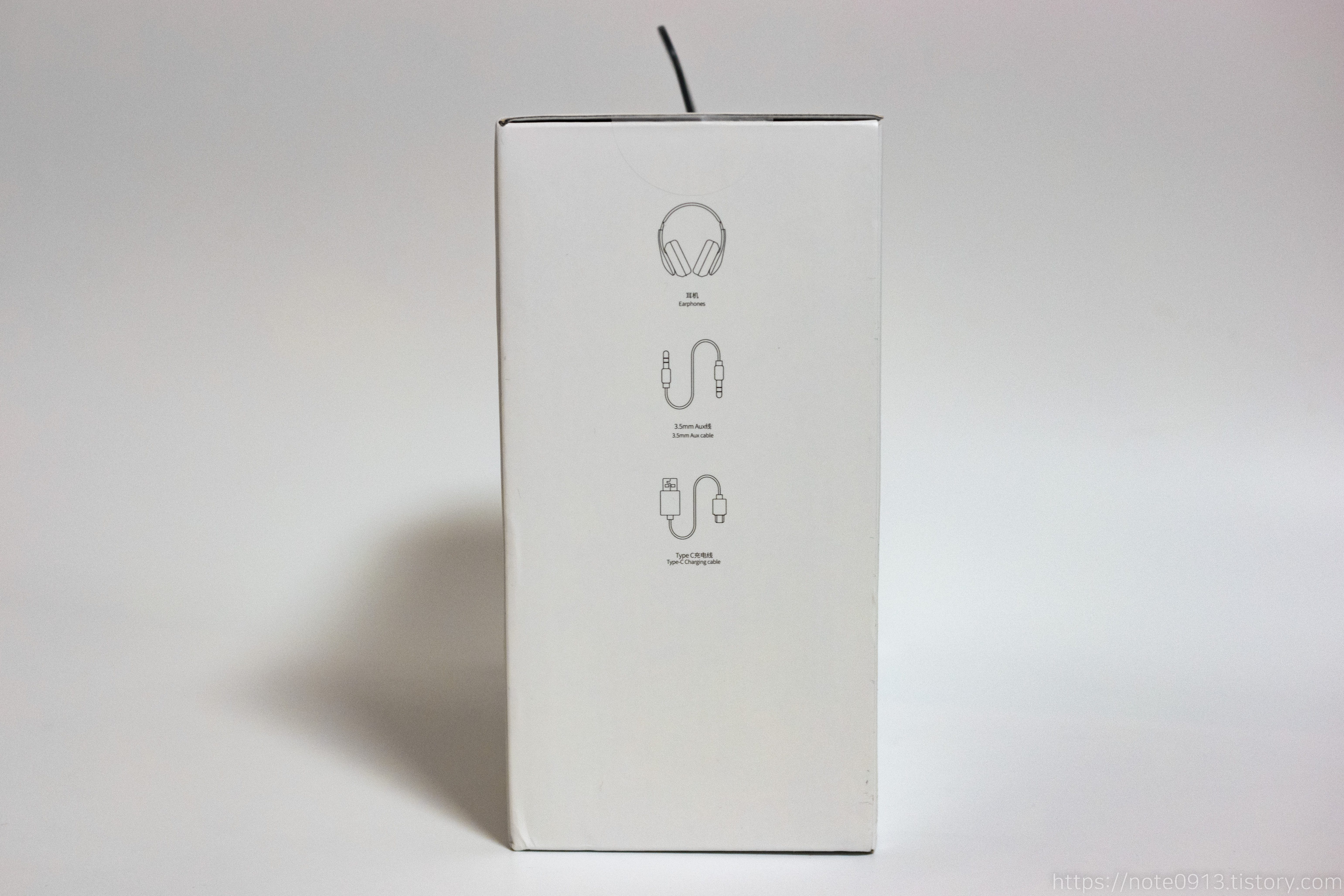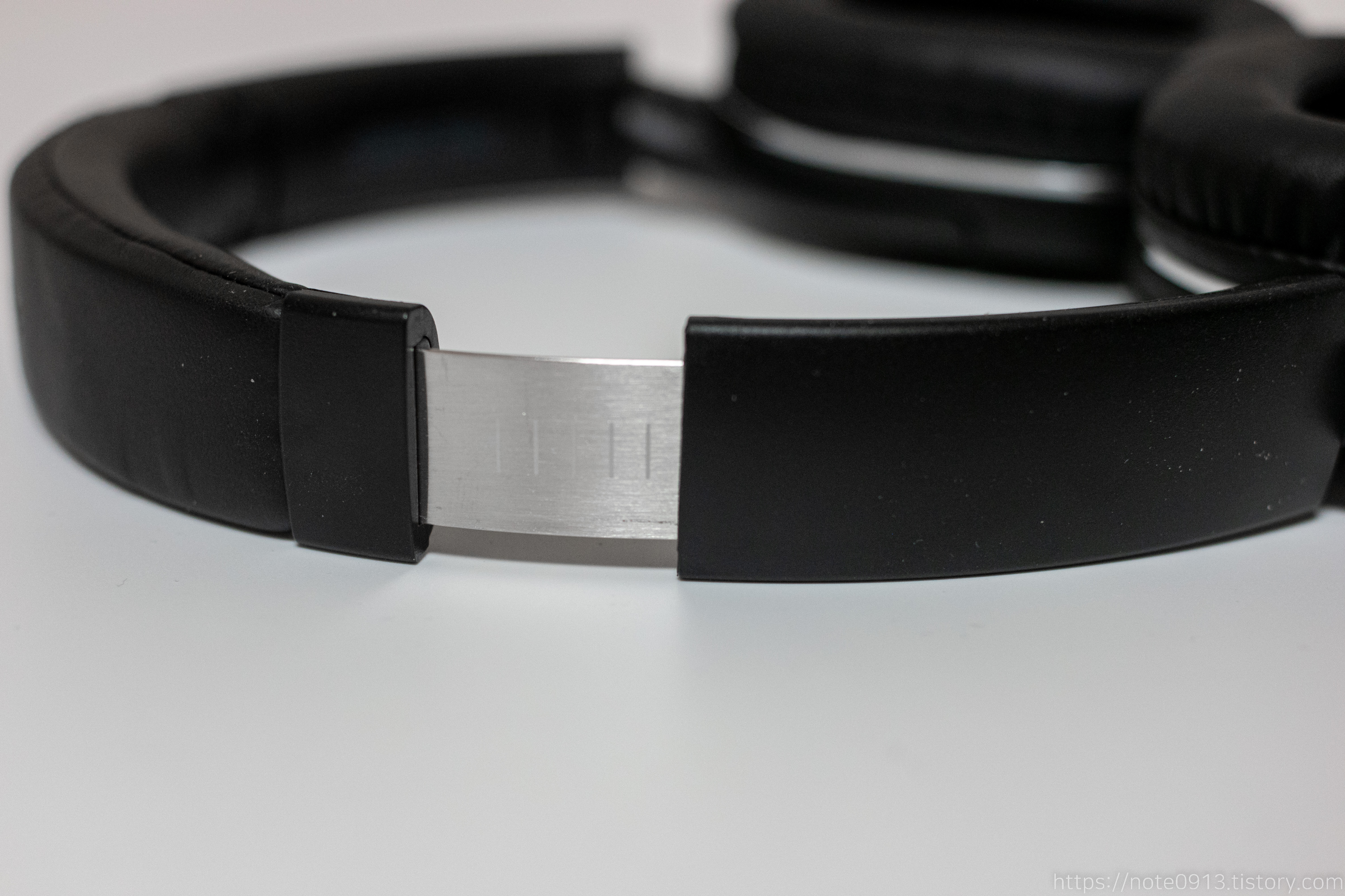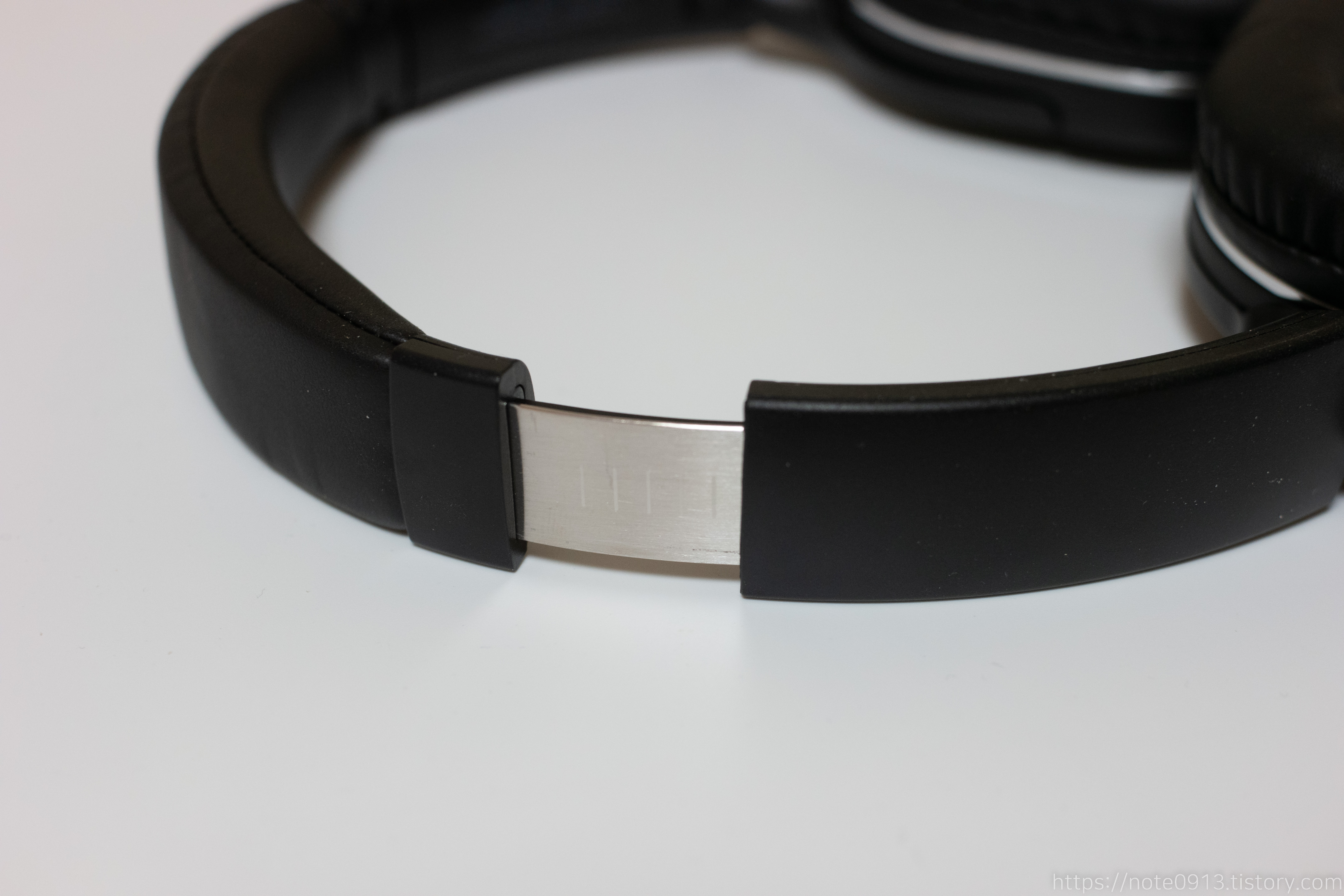 헤드폰 옆모습입니다. 옆에 금속느낌의 선으로 나름 포인트가 있습니다. 진짜 금속은 아니고 옜날 갤럭시처럼 플라스틱에 크롬 도금을한 것입니다.