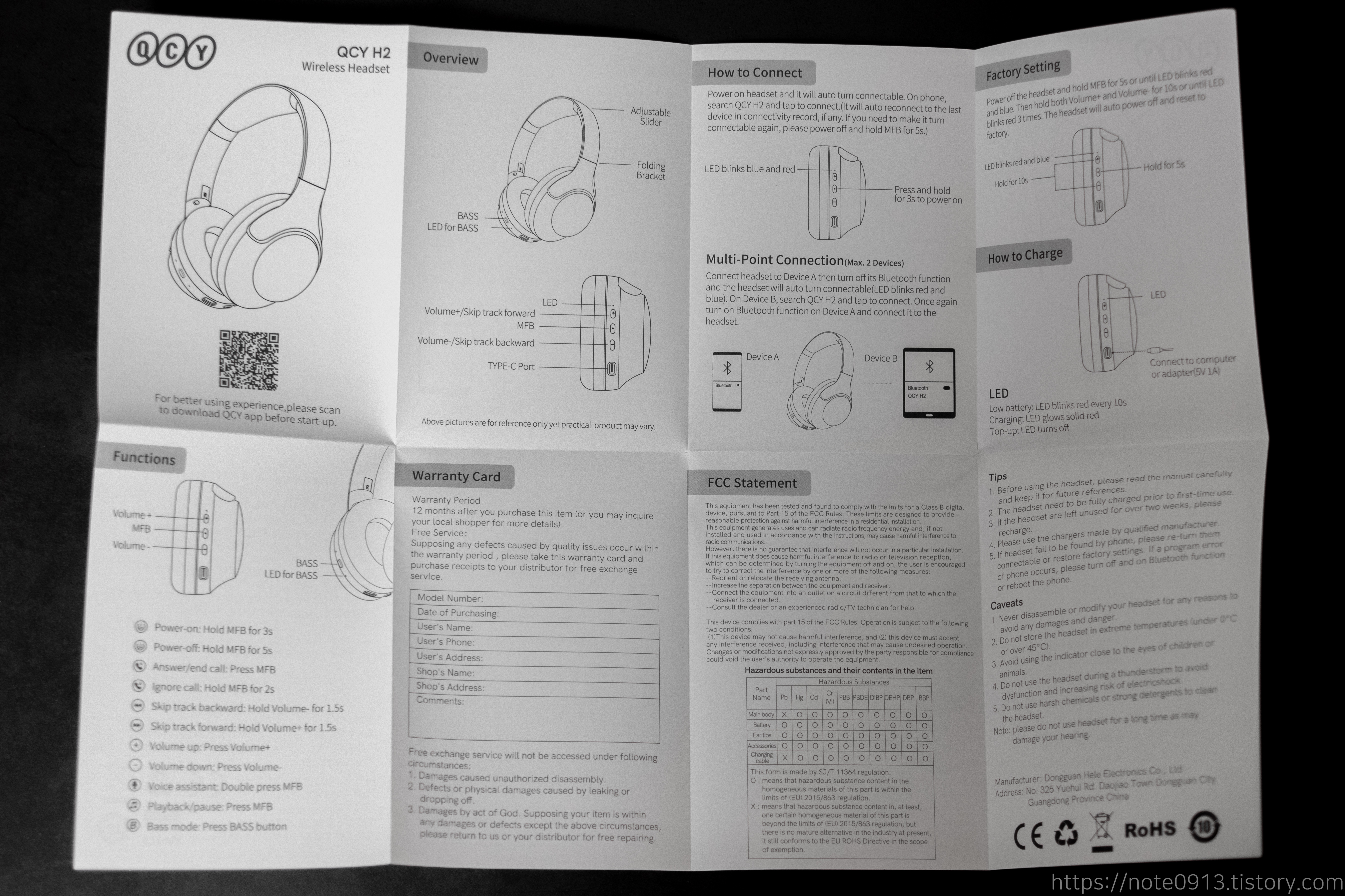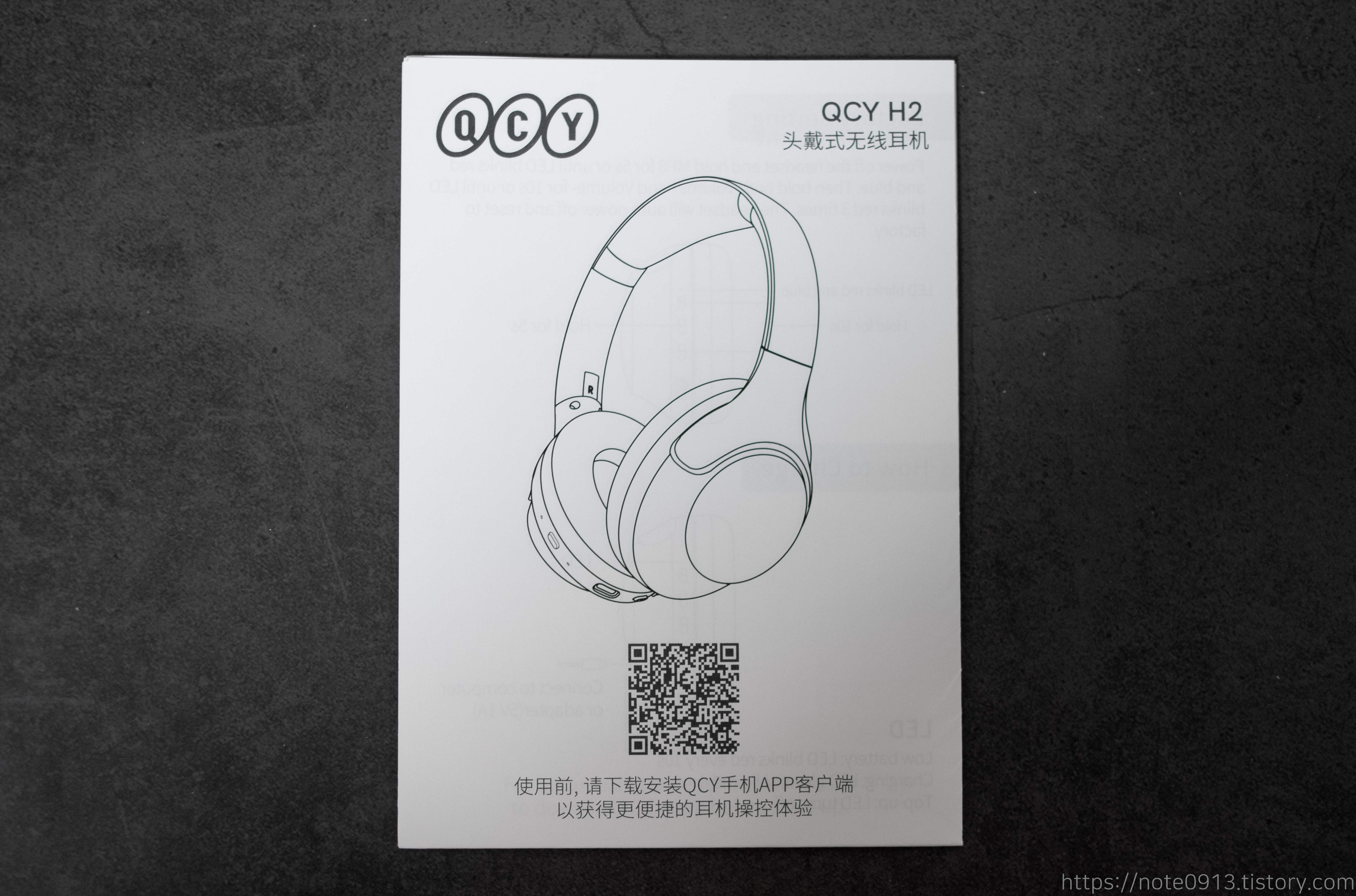 QCY H2 헤드폰 설명서입니다. 헤드폰이라서 그런지 설명서도 큼직합니다.