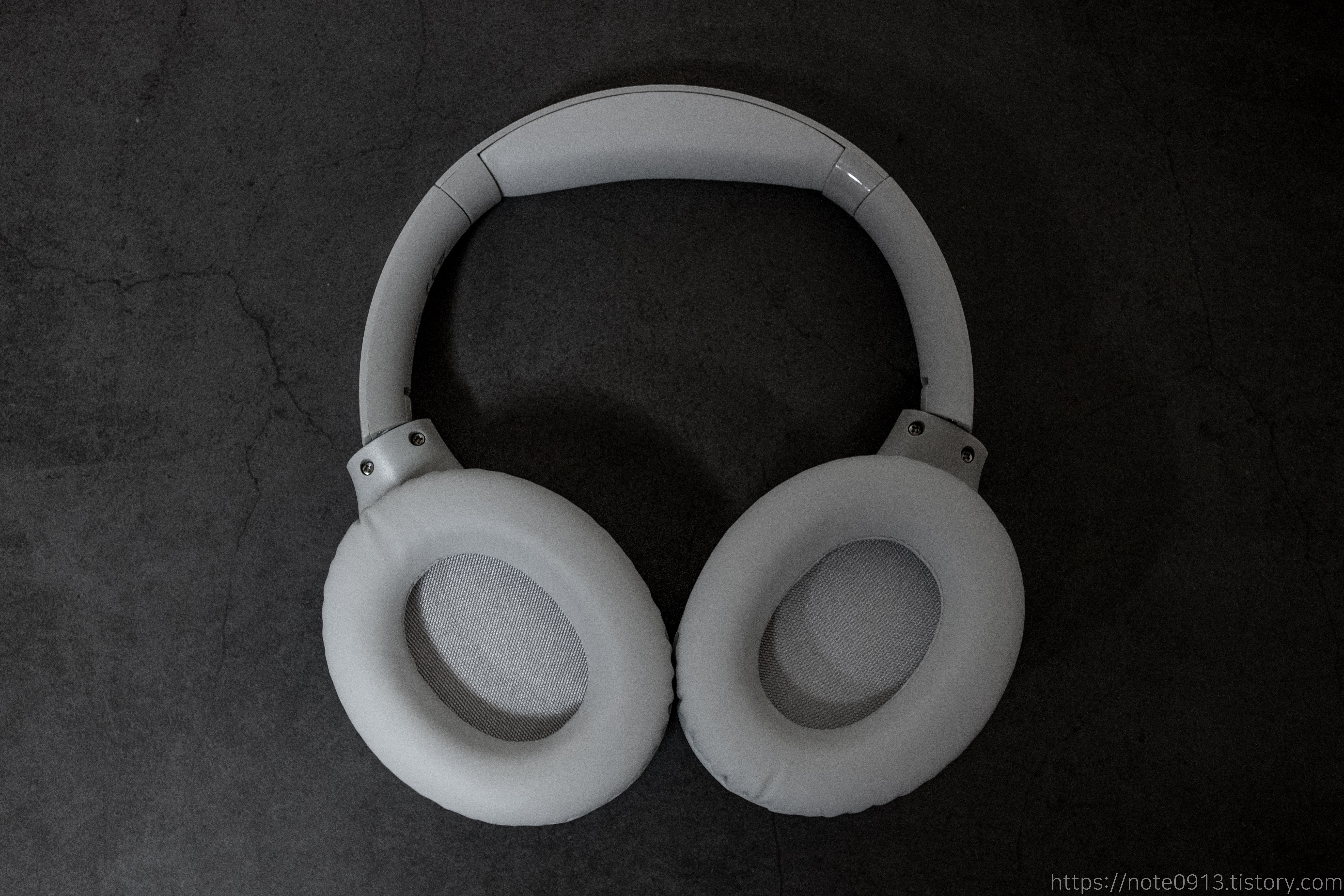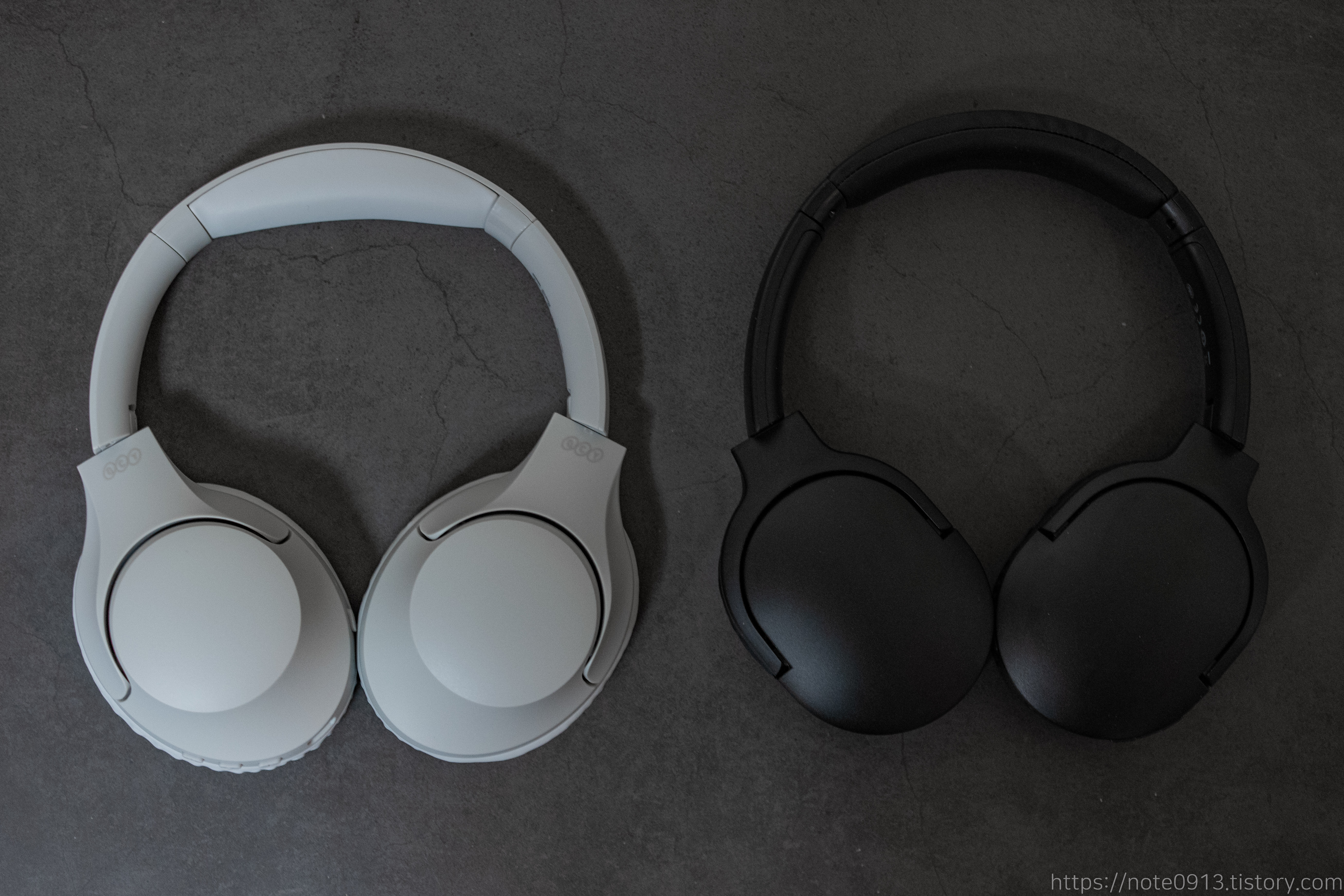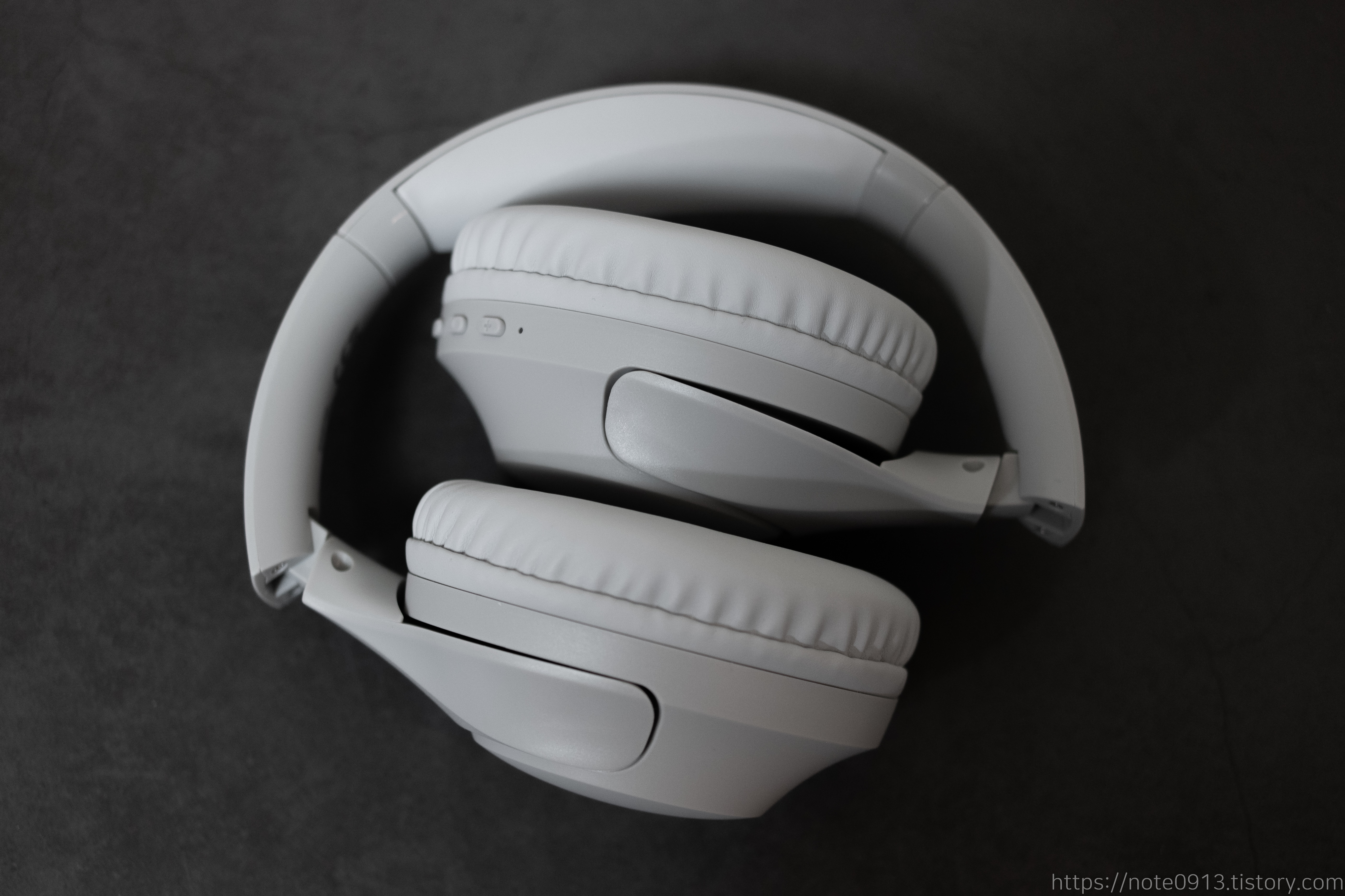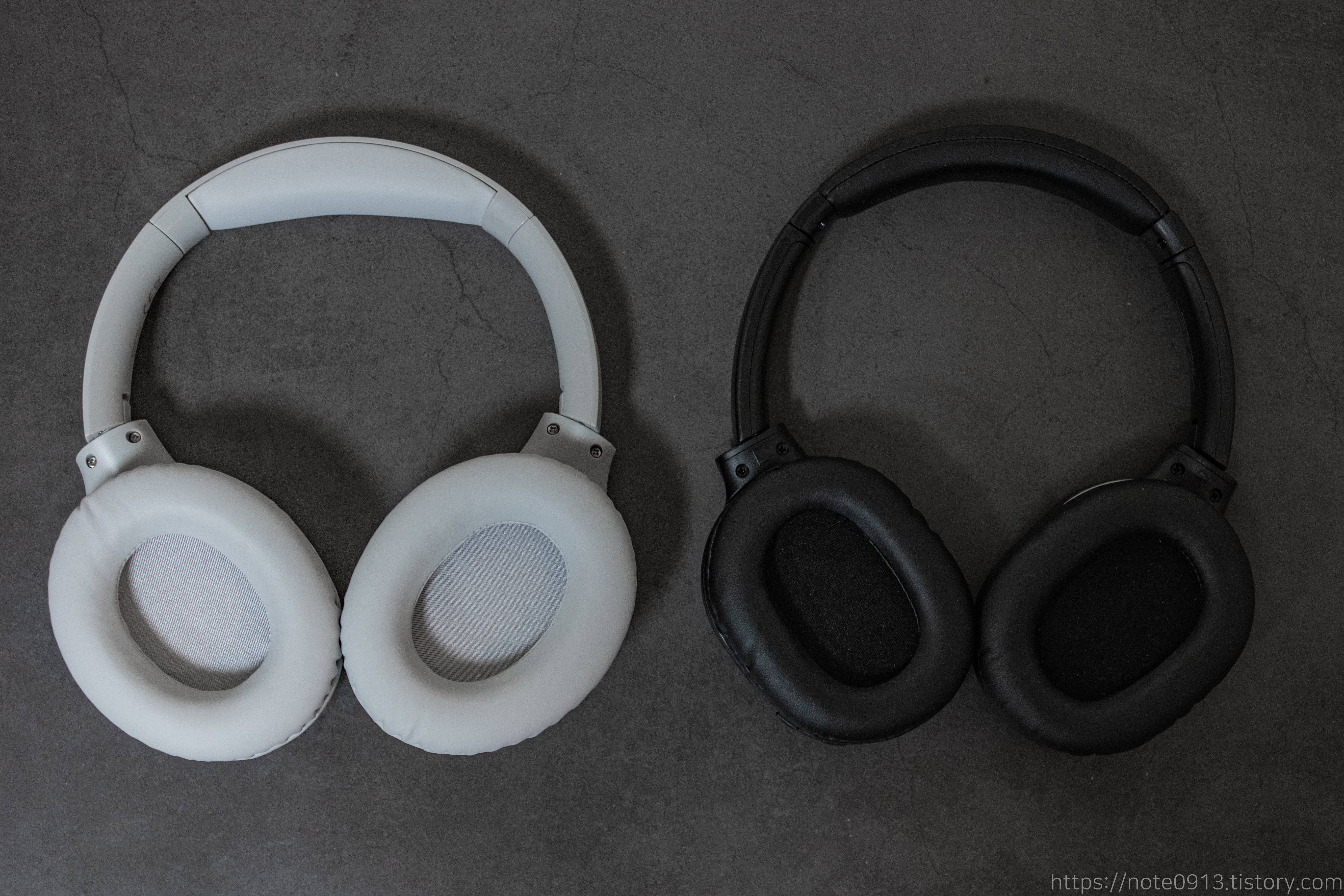 헤드폰 앞과 뒷모습입니다. 쿠션이 두꺼워서 푹신하고 편안합니다. 베이스어스의 D02 Pro 헤드폰보다 조금 더 푹신합니다.