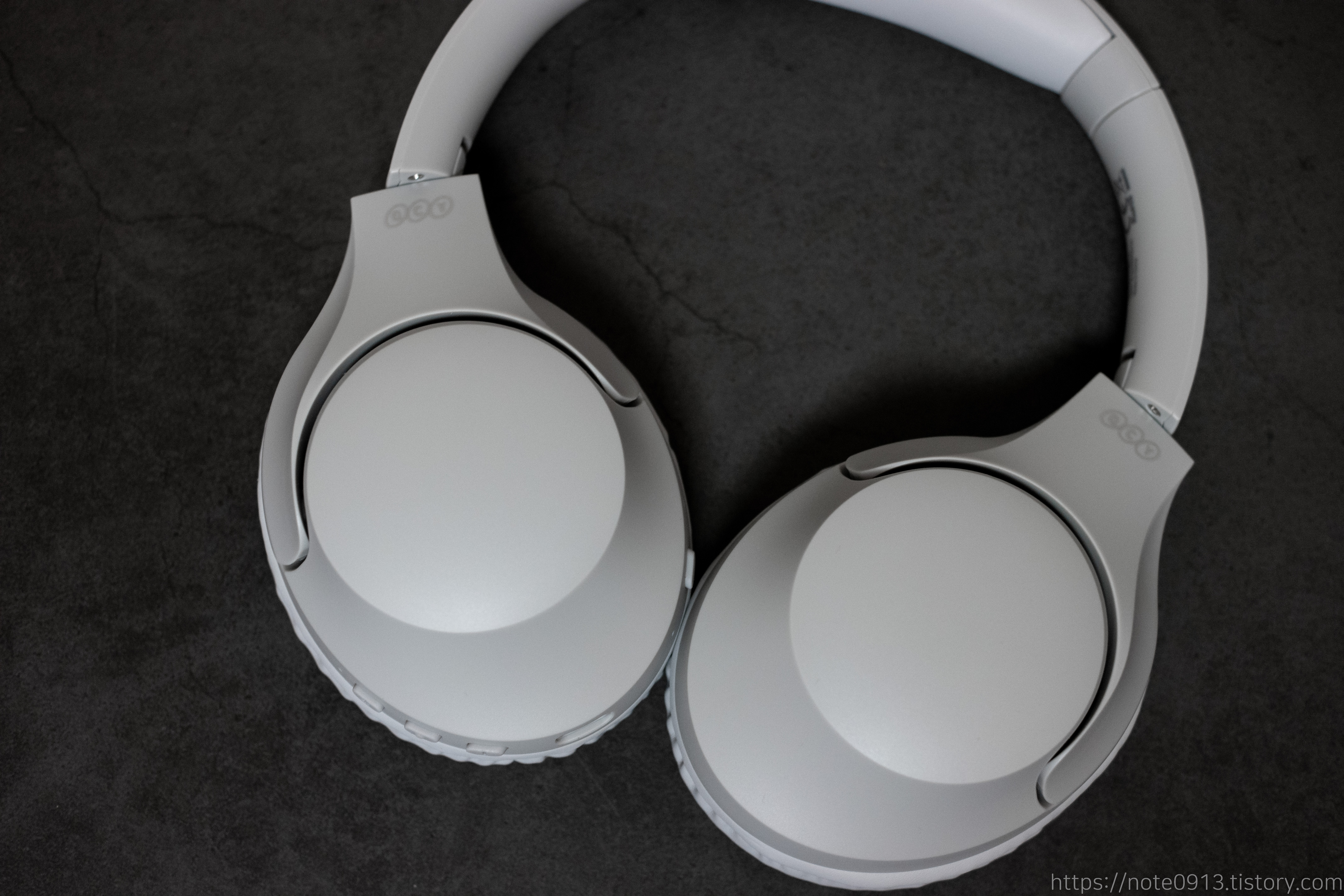 QCY H2 헤드폰은 QCY 로고가 헤드폰 옆에 붙어있습니다. 블랙색상은 골드색으로 로고가 표시되어 있어서 눈에 확 띄는데 그레이 색상은 로고도 회색으로 해서 자세히 보지않으면 잘 보이지가 않습니다.