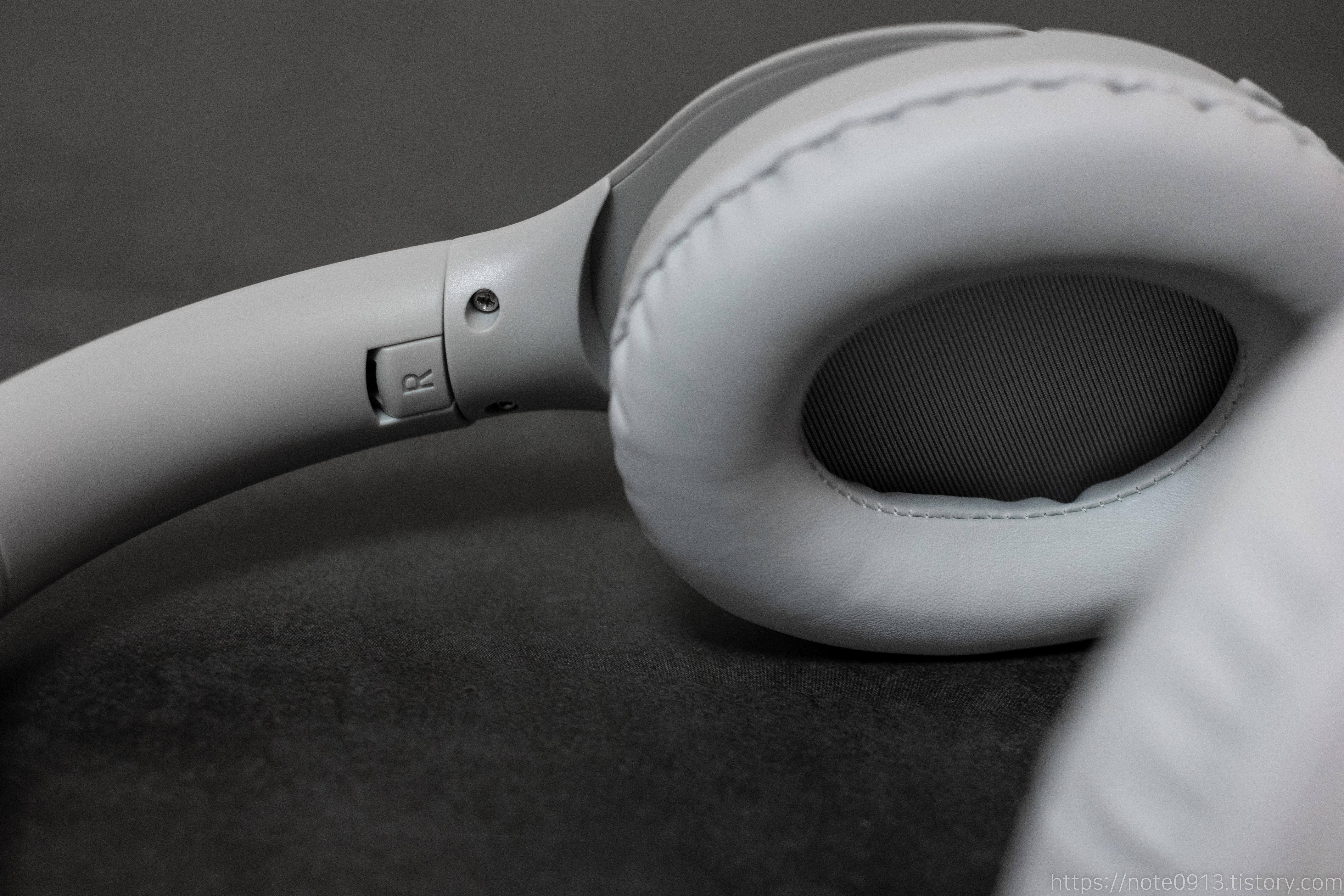 H2 헤드폰의 힌지부분입니다. 접을 수있고 90도 회전도 가능합니다. 움직일 때 부드럽게 움직여서 나쁘지 않습니다.