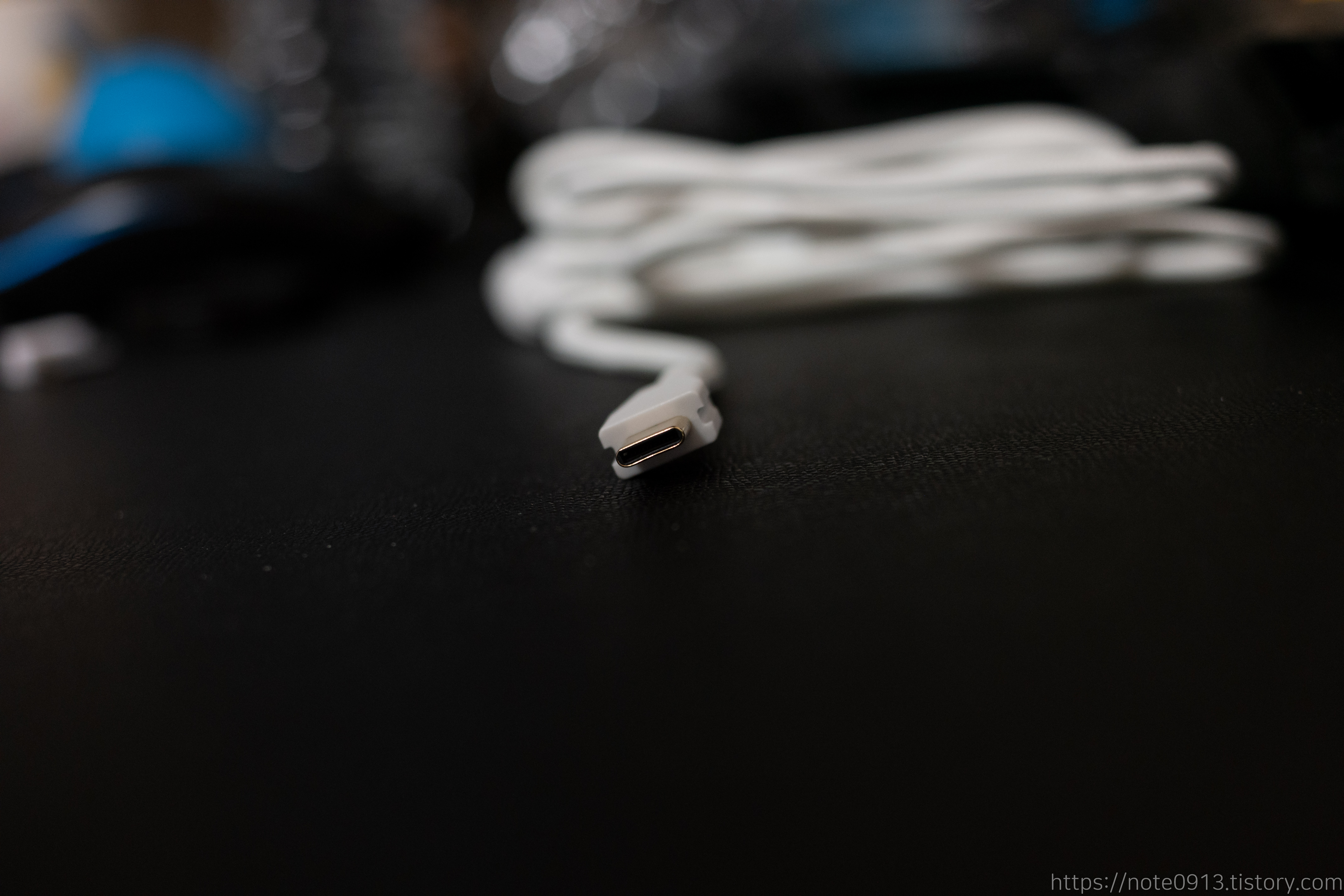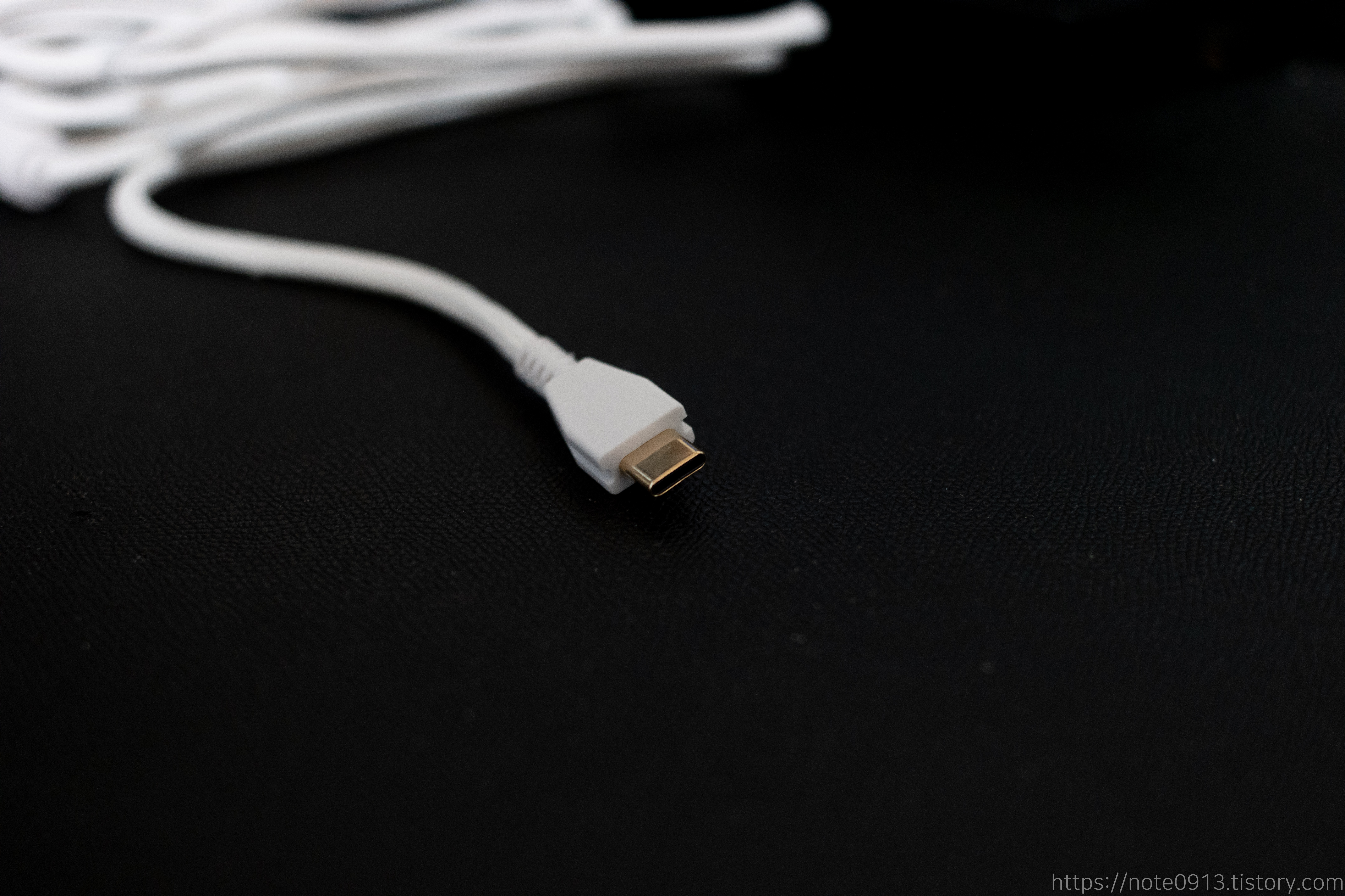 마우스 케이블은 C타입으로 연결됩니다. 다만 케이블은 보면 알 수 있듯이 양쪽에 홈이 있습니다.