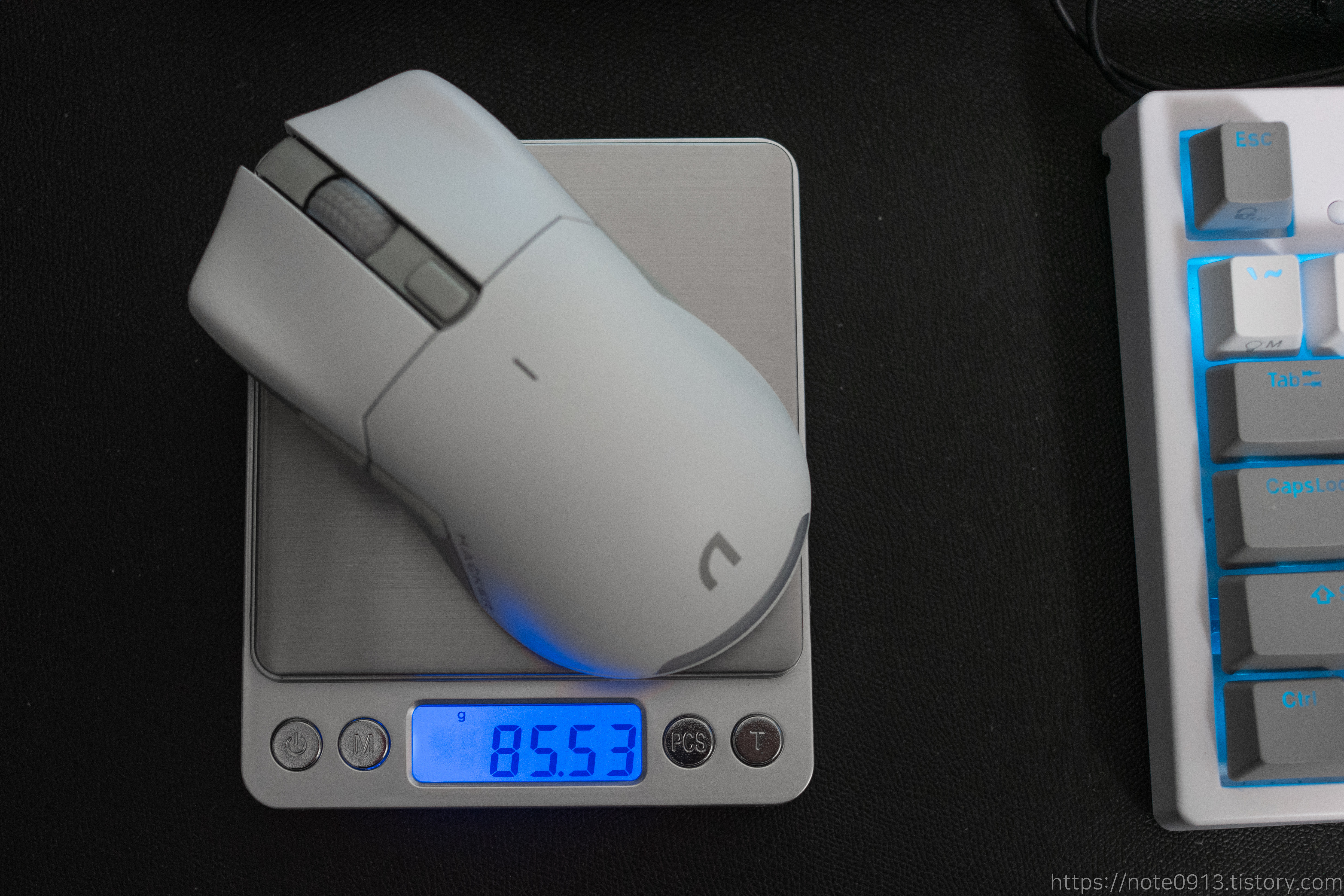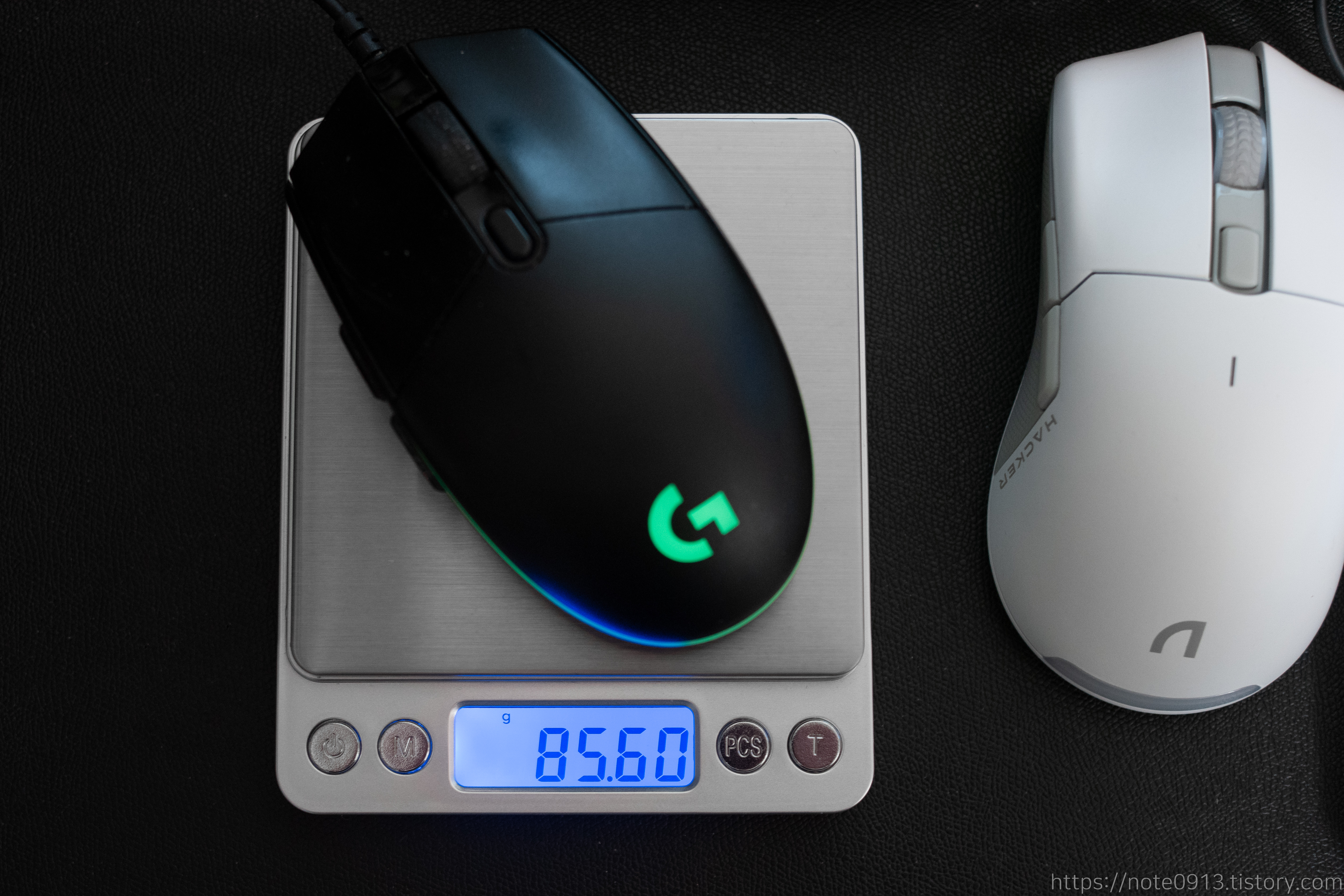 G102 마우스 무게는 85.60g 입니다. G102와 마우스 무게의 차이는 없는 수준입니다. 직접 마우스를 잡아 움직여 보면 G102는 유선이라 무게 중심이 고루 잡혀있는 느낌이지만 H100은 약간 아래쪽이 좀 더 무거운 느낌이 납니다.