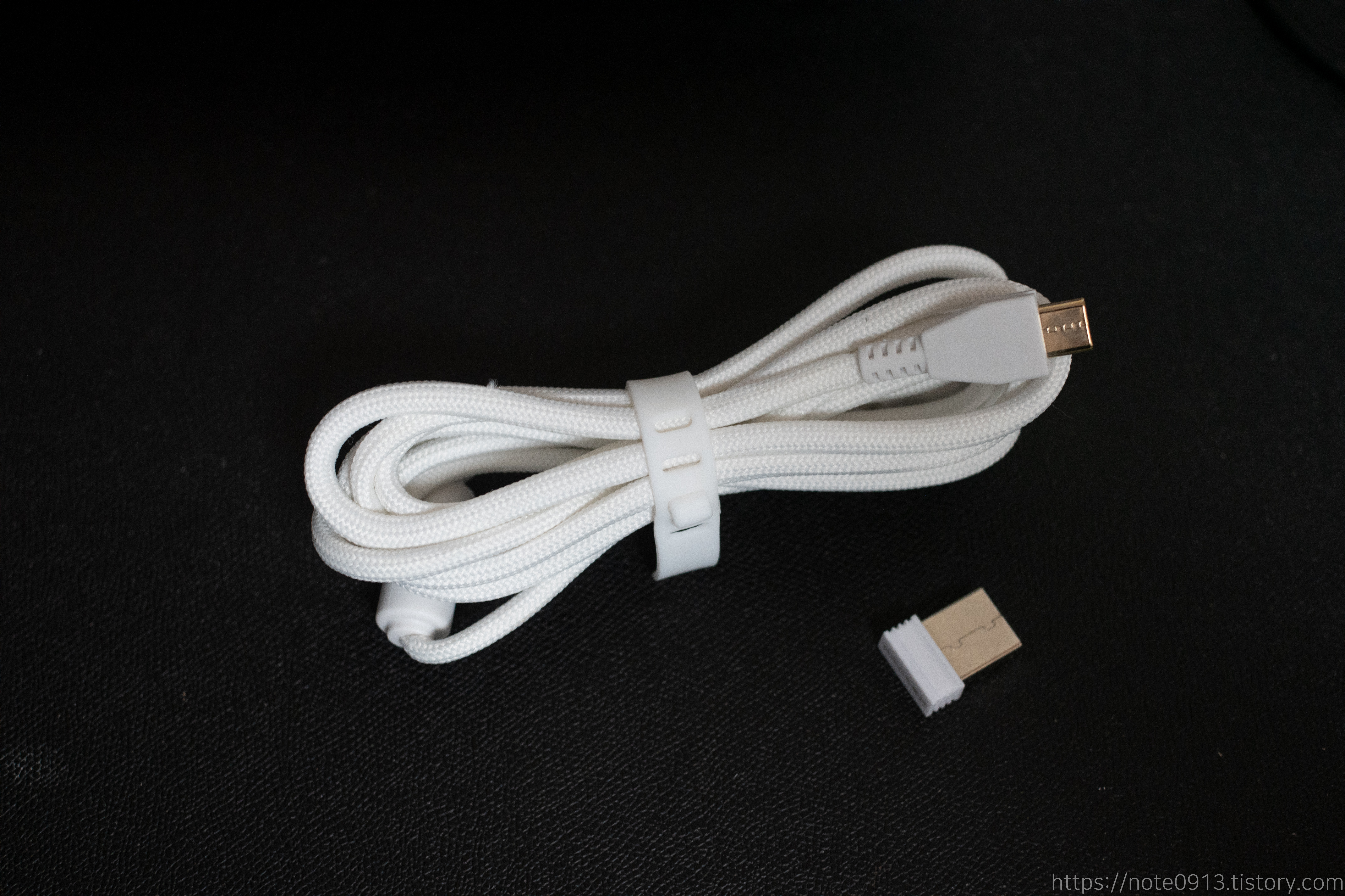 커버 안에 들어 있던 USB 케이블과 마우스 수신기 입니다.