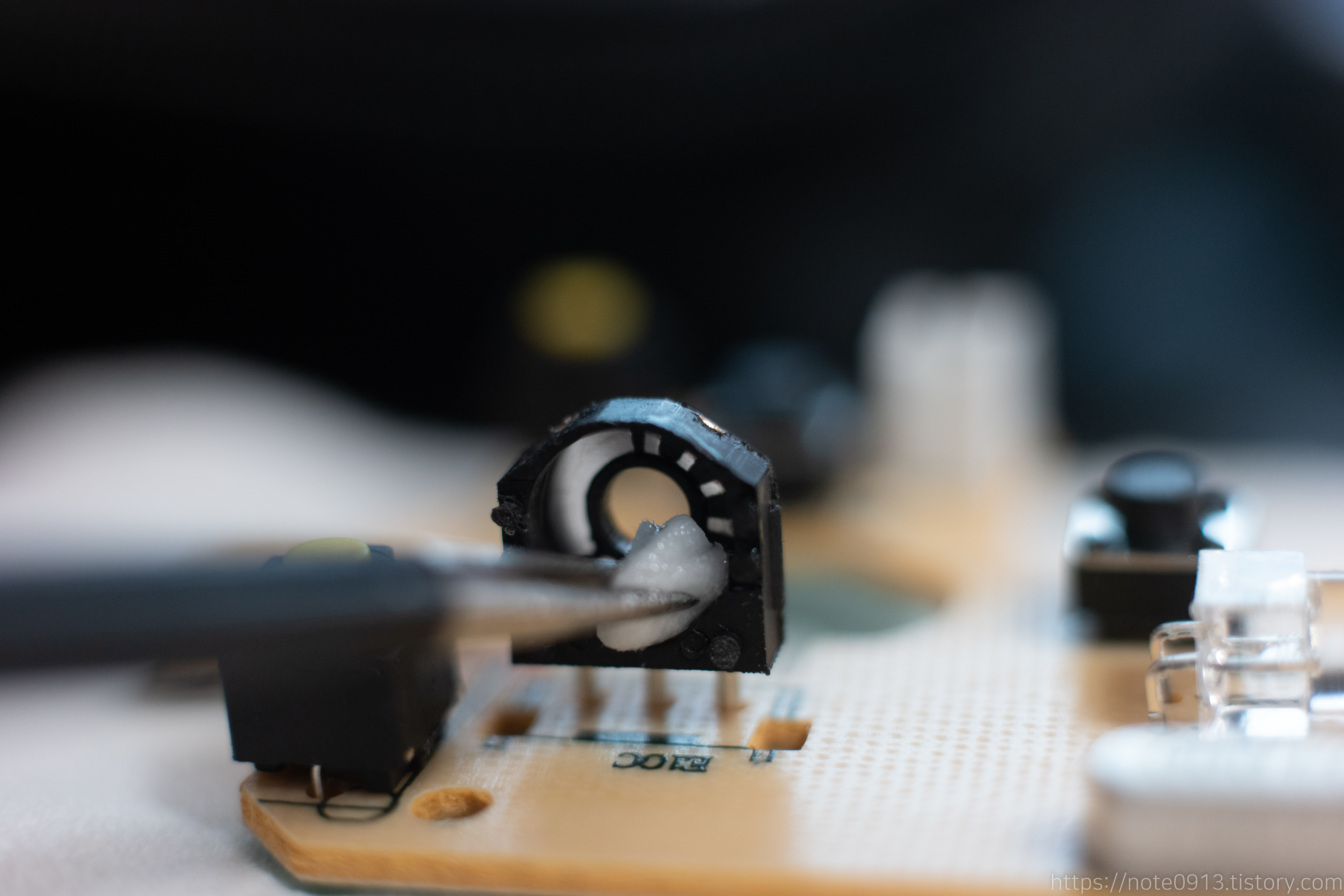 원래는 면봉으로 하려고 했으나 면봉이 커서 제대로 닦이지 않아서 핀셋이랑 휴지조각에 IPA를 묻혀서 청소했습니다.