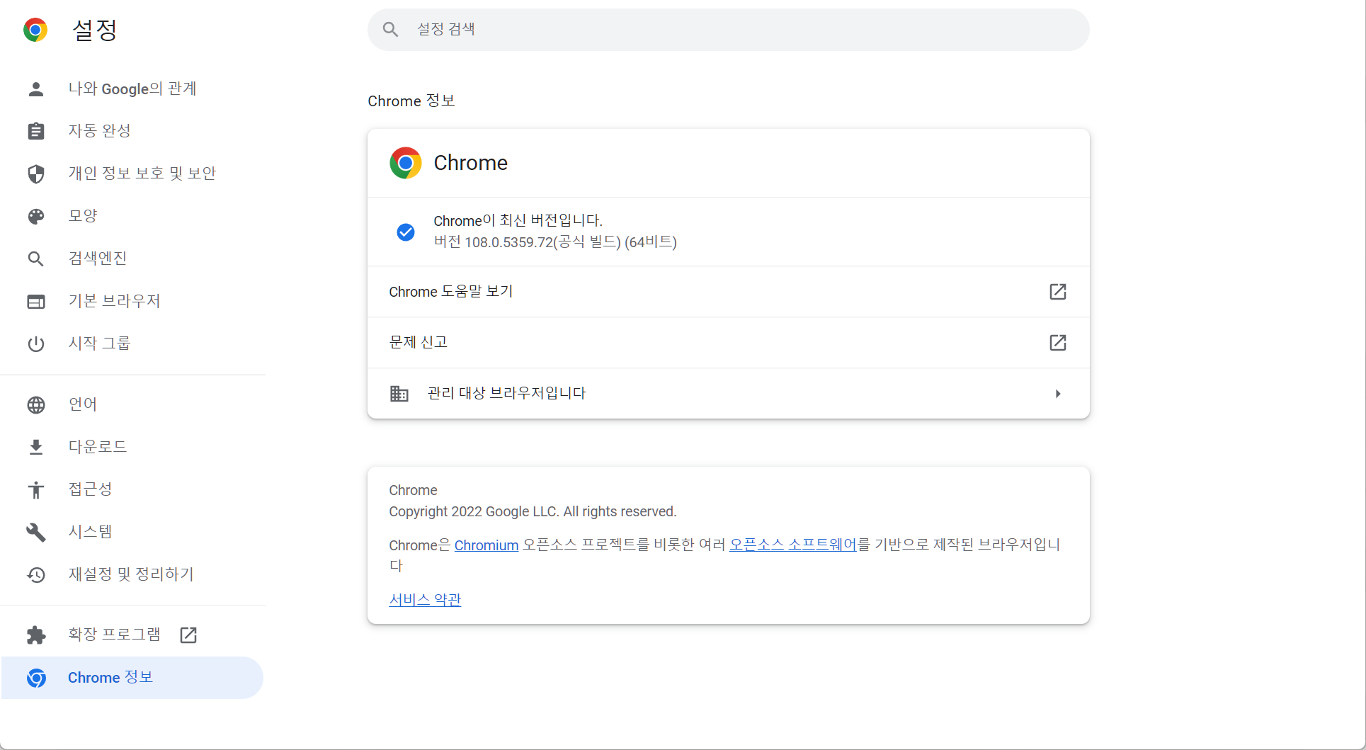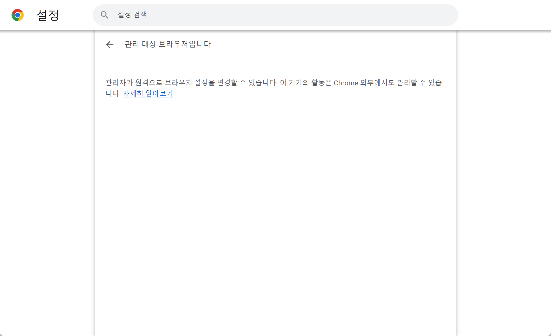크롬 설정에서도 "관리 대상 브라우저입니다"라는 메뉴가 있고 클릭해도 관리자가 원격으로 브라우저 설정을 변경할 수 있다는 말뿐이고 해제하는 방법은 나와있지 않습니다.