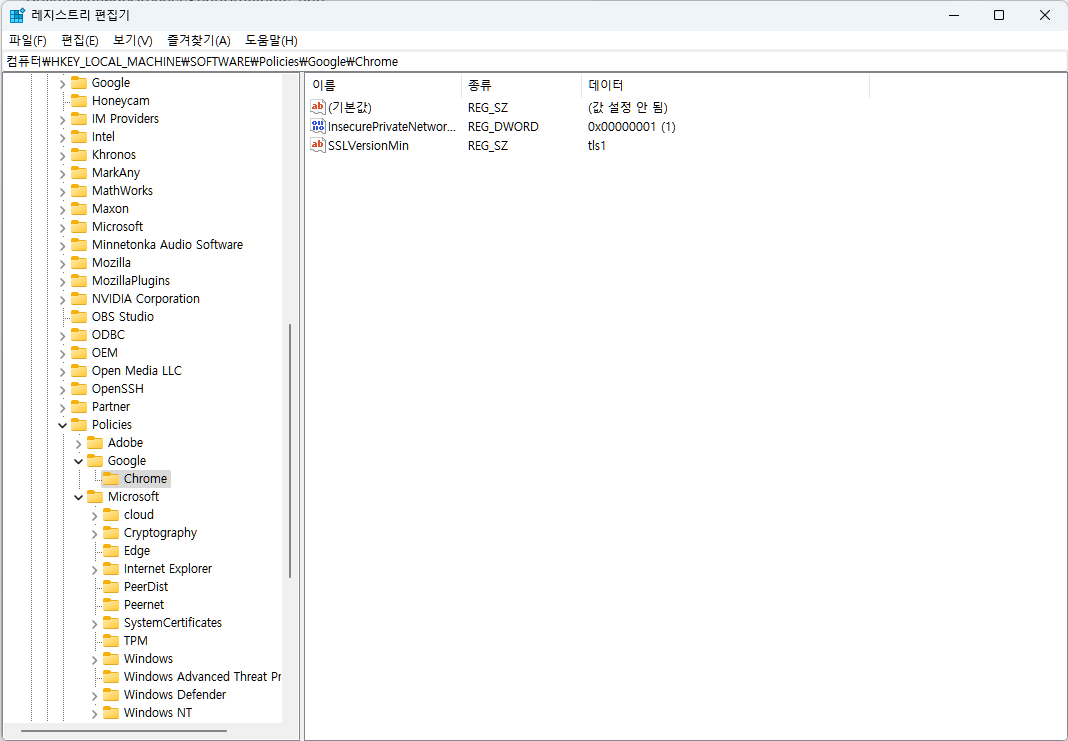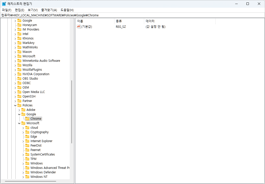 컴퓨터\HKEY_LOCAL_MACHINE\SOFTWARE\Policies\Google\Chrome
