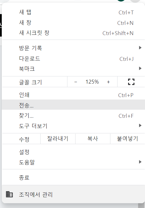 위처럼 크롬과 엣지에서 메뉴를 열어보면 "조직에서 관리" 라는 메뉴가 나타나있습니다. 엣지에서는 "조직에서 관리함" 이라고 나타납니다.
