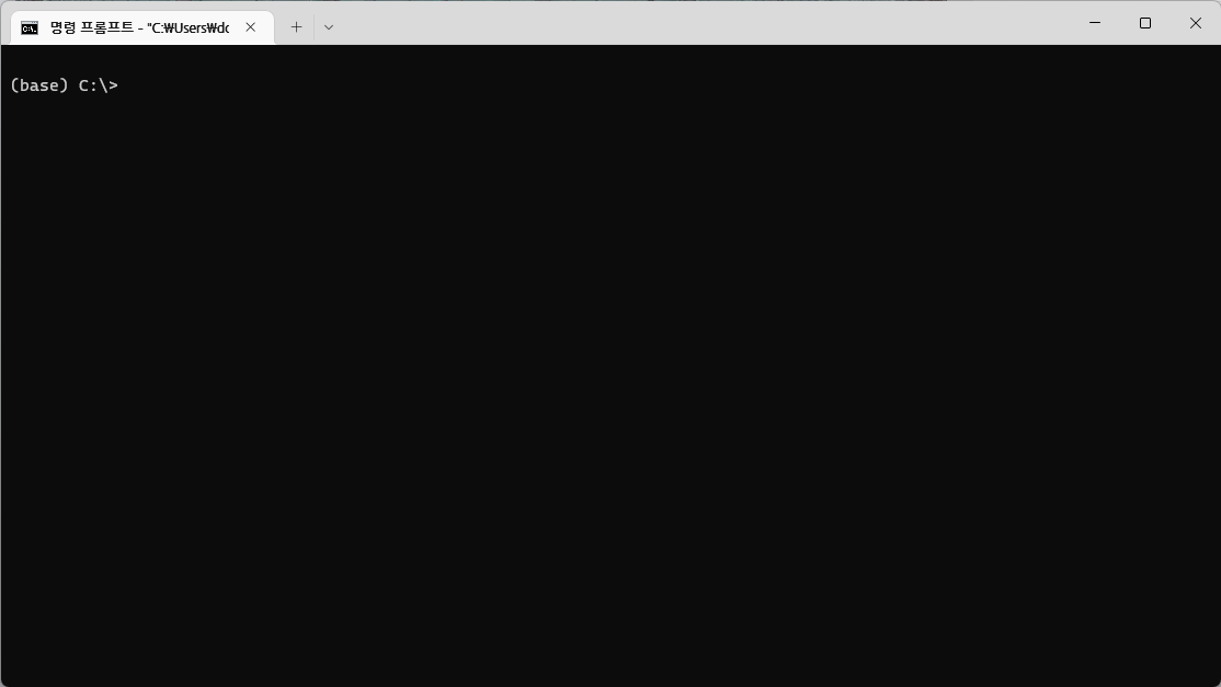 가상환경을 활성화하면 맨 앞에 (base)라고 표시된 것이 (활성화된 가상환경 이름)으로 변경됩니다.
