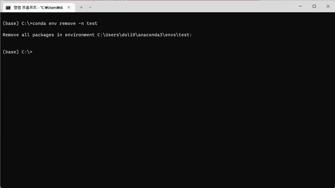 명령어를 통해 가상환경을 삭제한 모습입니다.