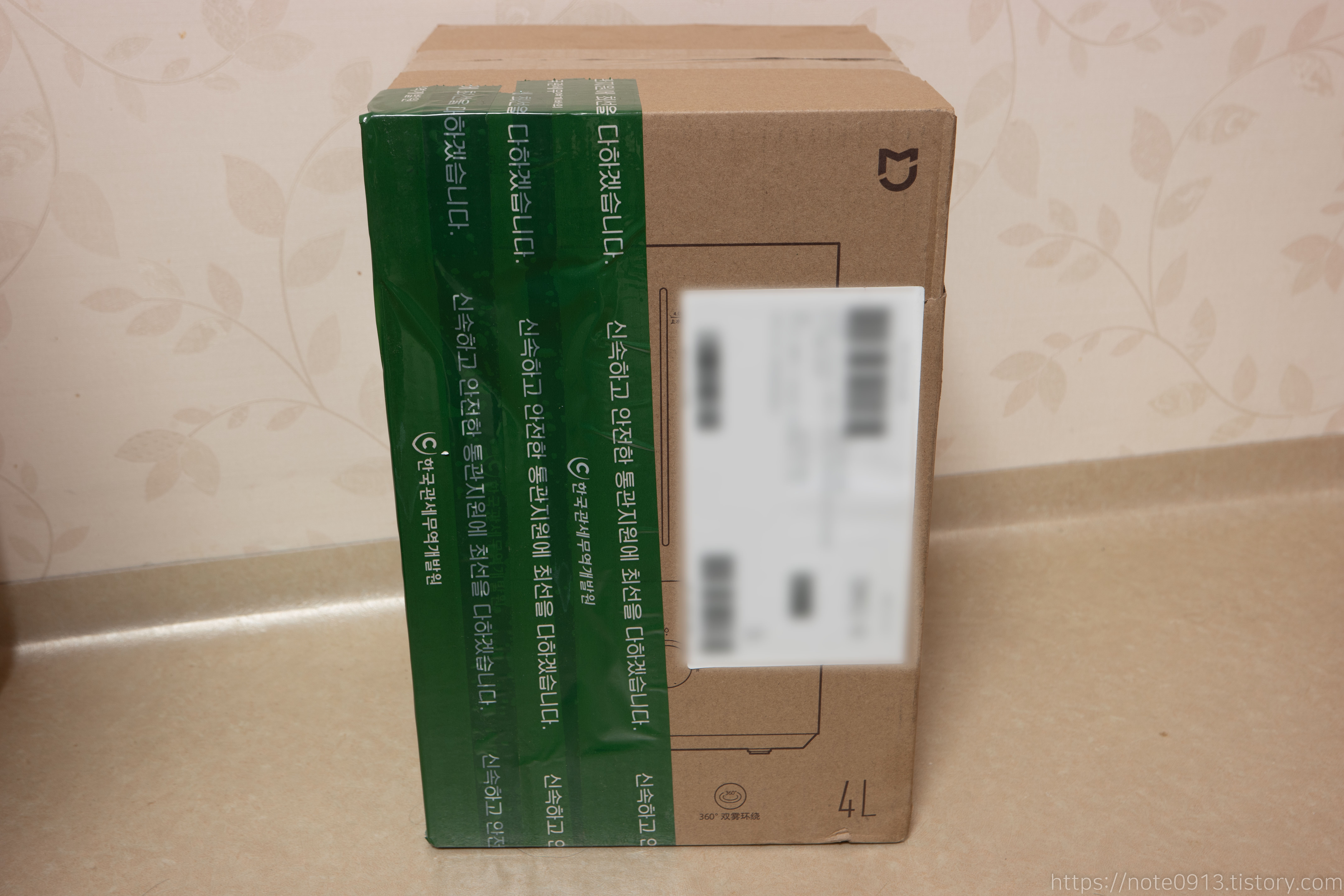 가습기 비닐을 벗겨보면 가습기 통이 분리되지 않게 테이프로 고정해 두었습니다.