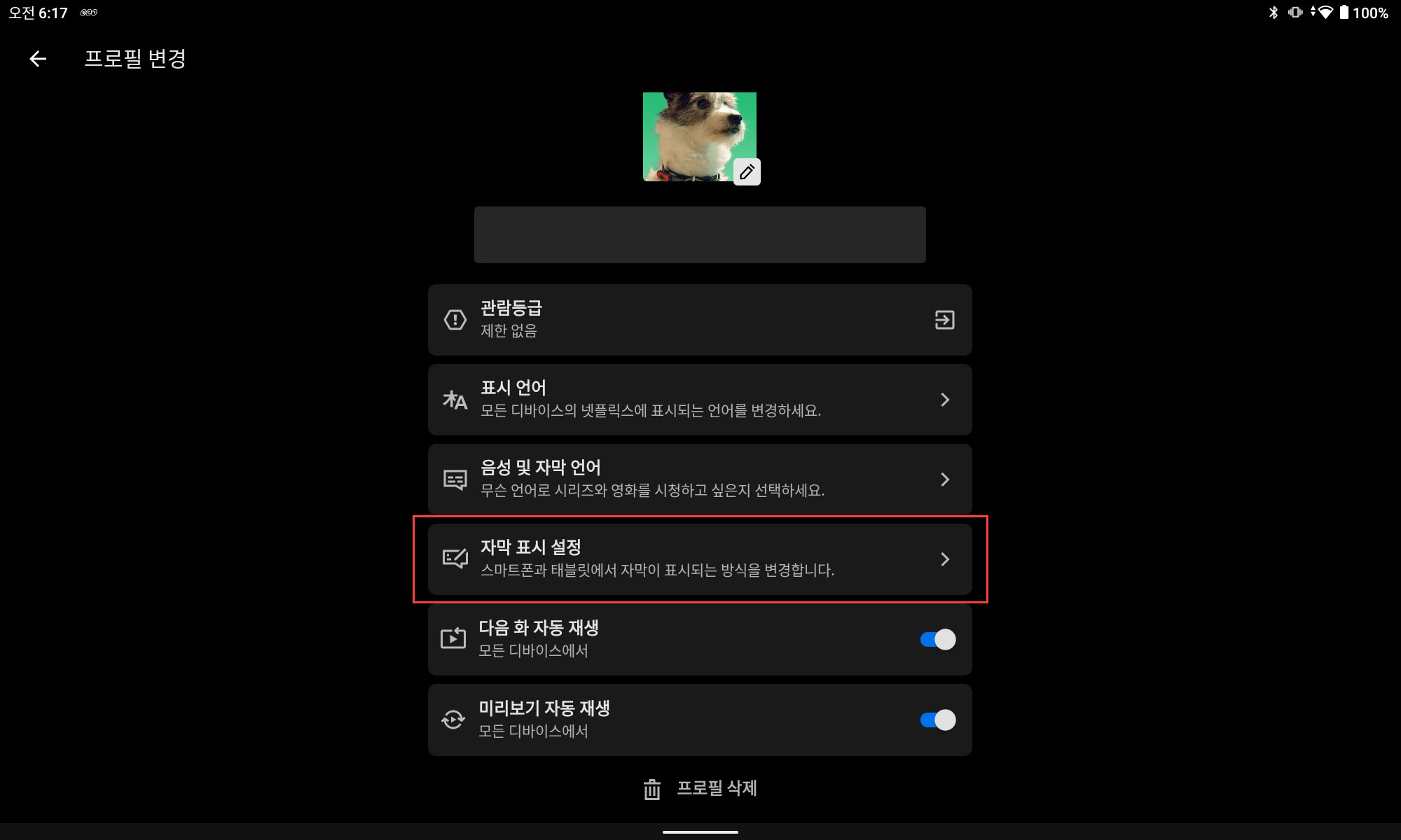 프로필 변경 화면에서 자막 표시 설정으로 들어가 줍니다.