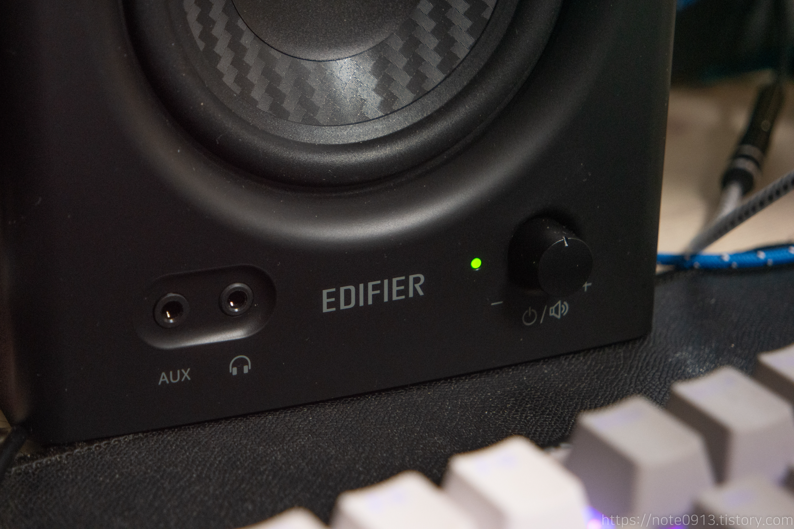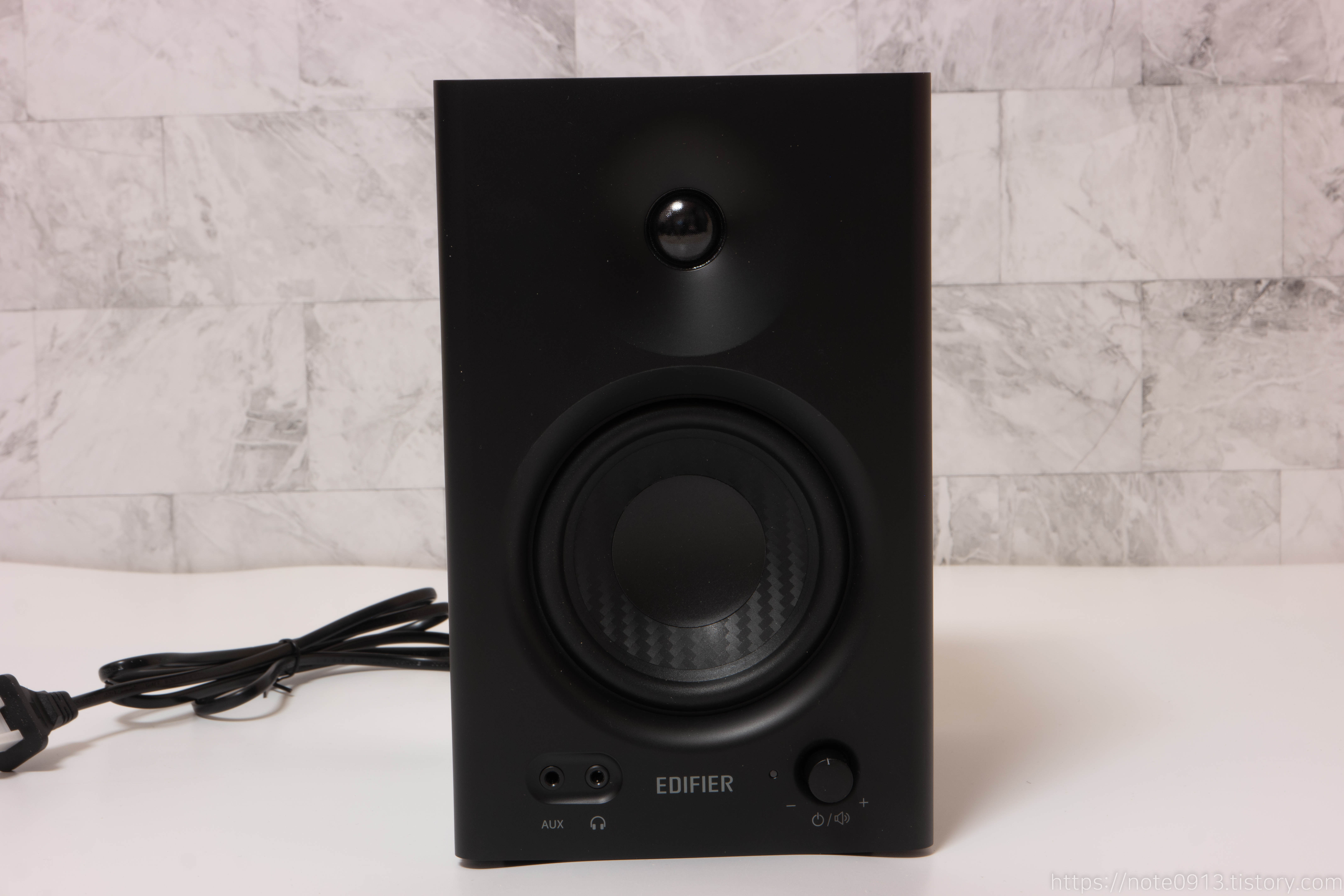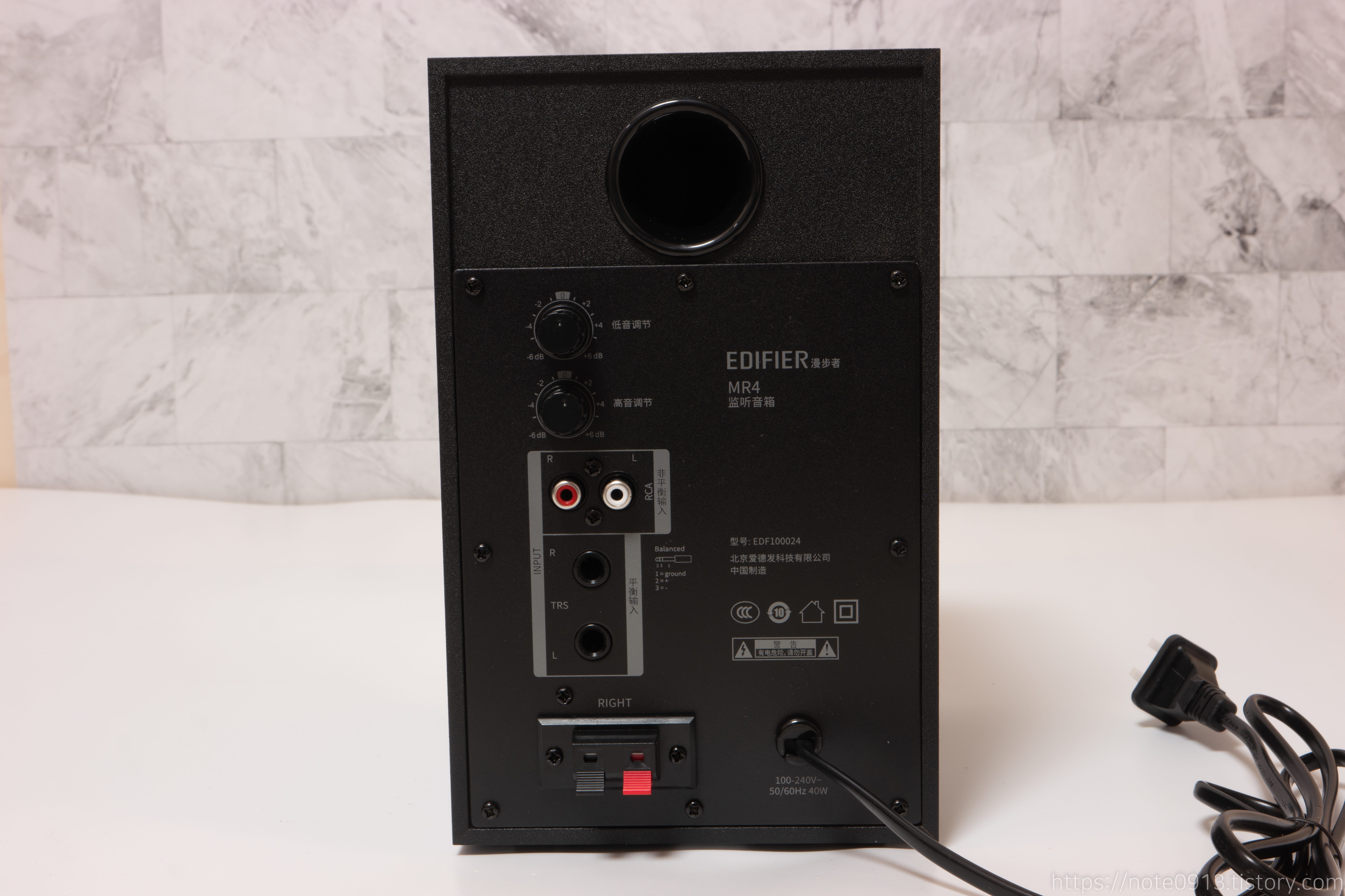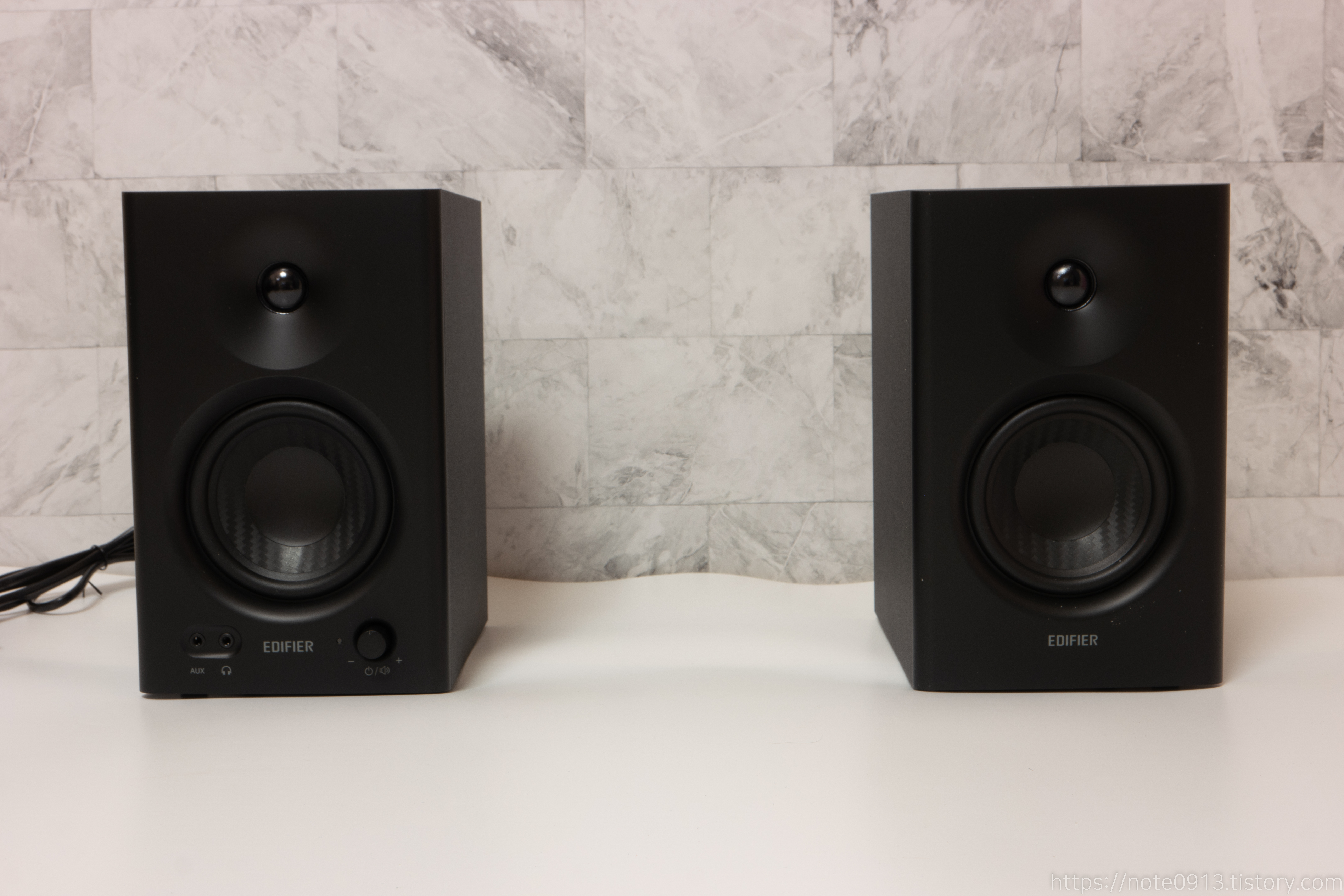 인터넷에 찾아보면 에디파이어 MR4 스피커 자체 화이트 노이즈가 심하다는 말이 있었는데 제가 받은 스피커는 아무 선도 연결하지 않은 채 화이트 노이즈를 들어보면 작게 들리네요. 노브를 최대로 키워도 노이즈가 조금만 커져서 거슬리지 않습니다.