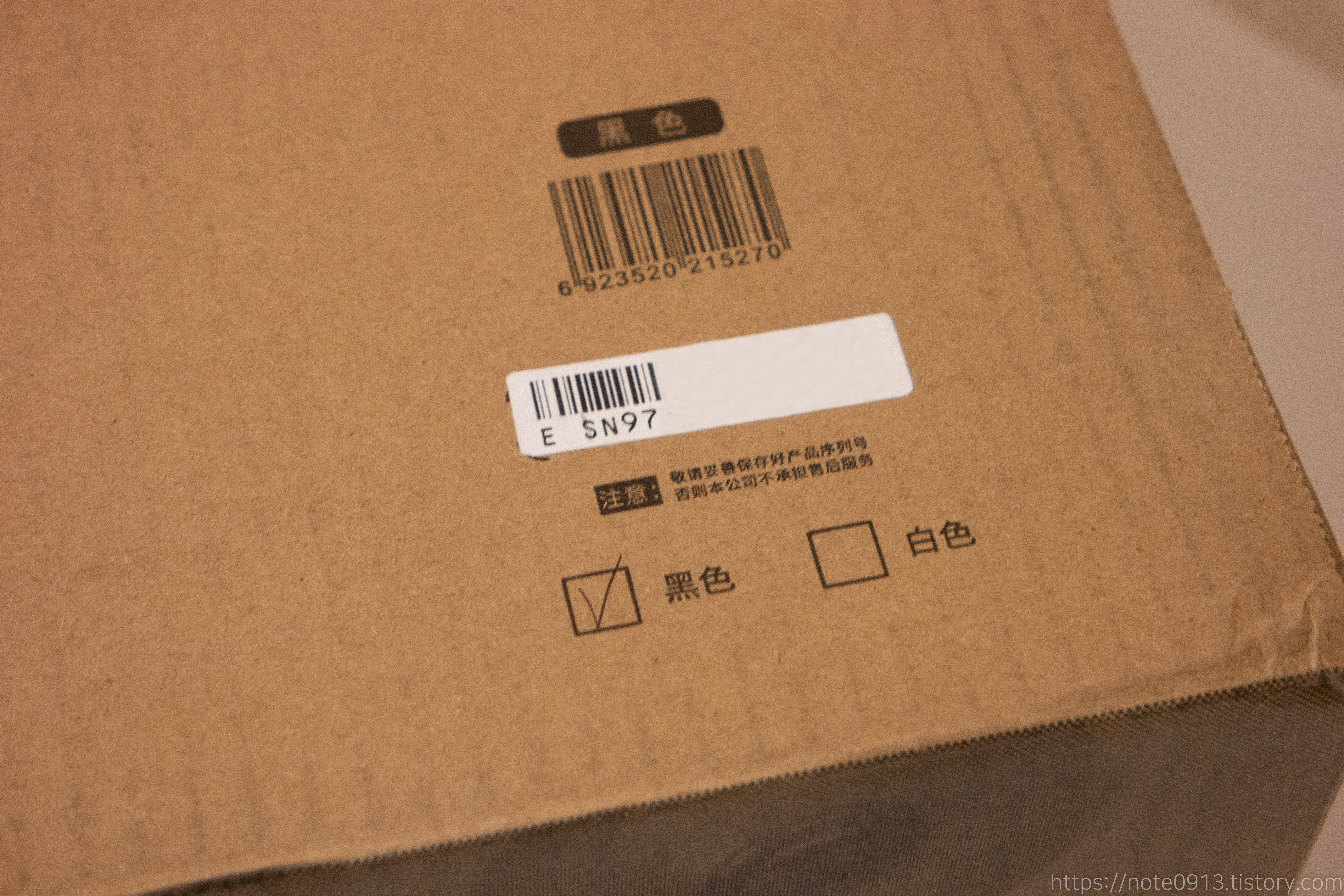 박스에 보면 시리얼 번호가 적혀있는 바코드와 색상을 알려주는 체크박스가 있네요. 검은색이라 흑색에 체크되어 있습니다.