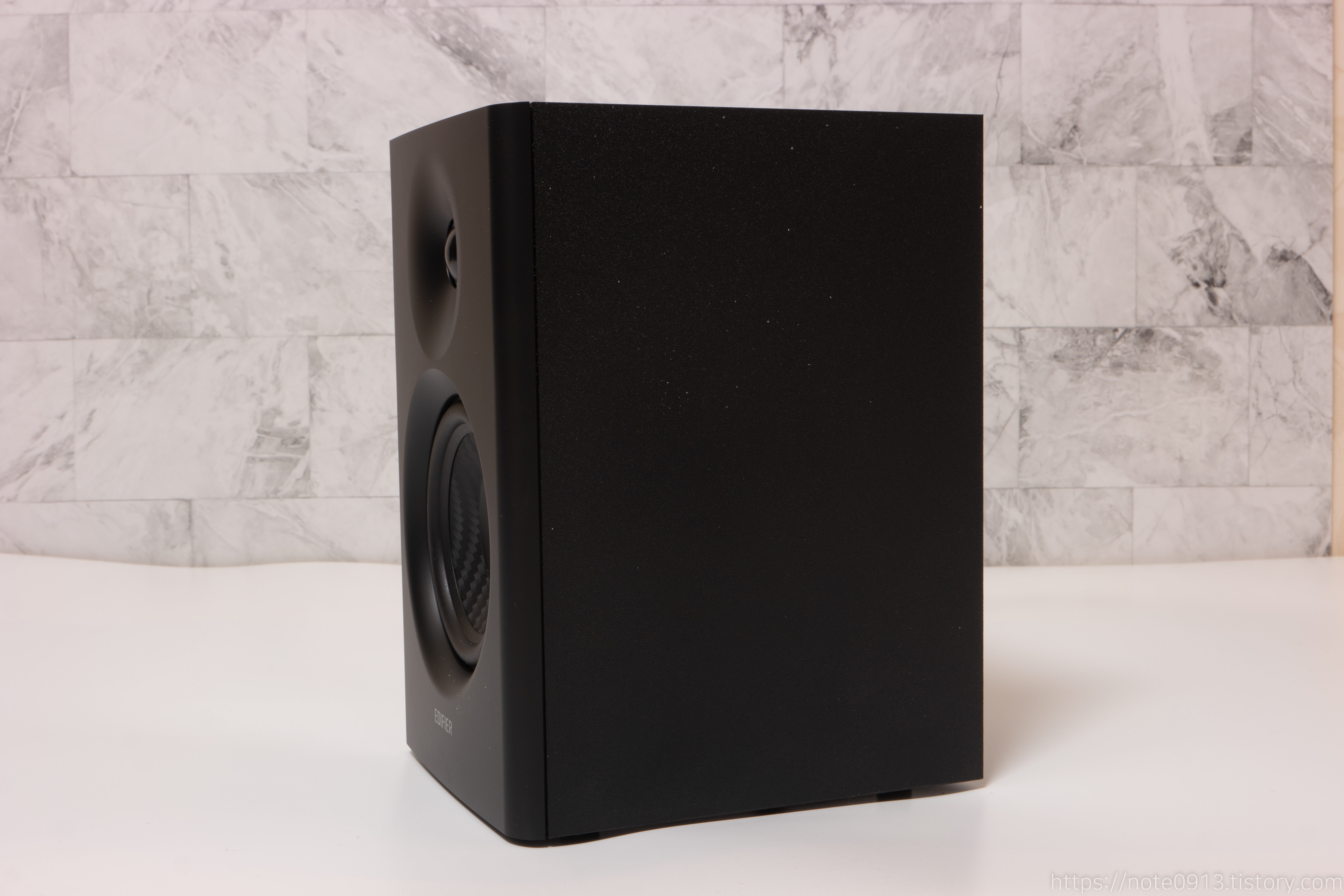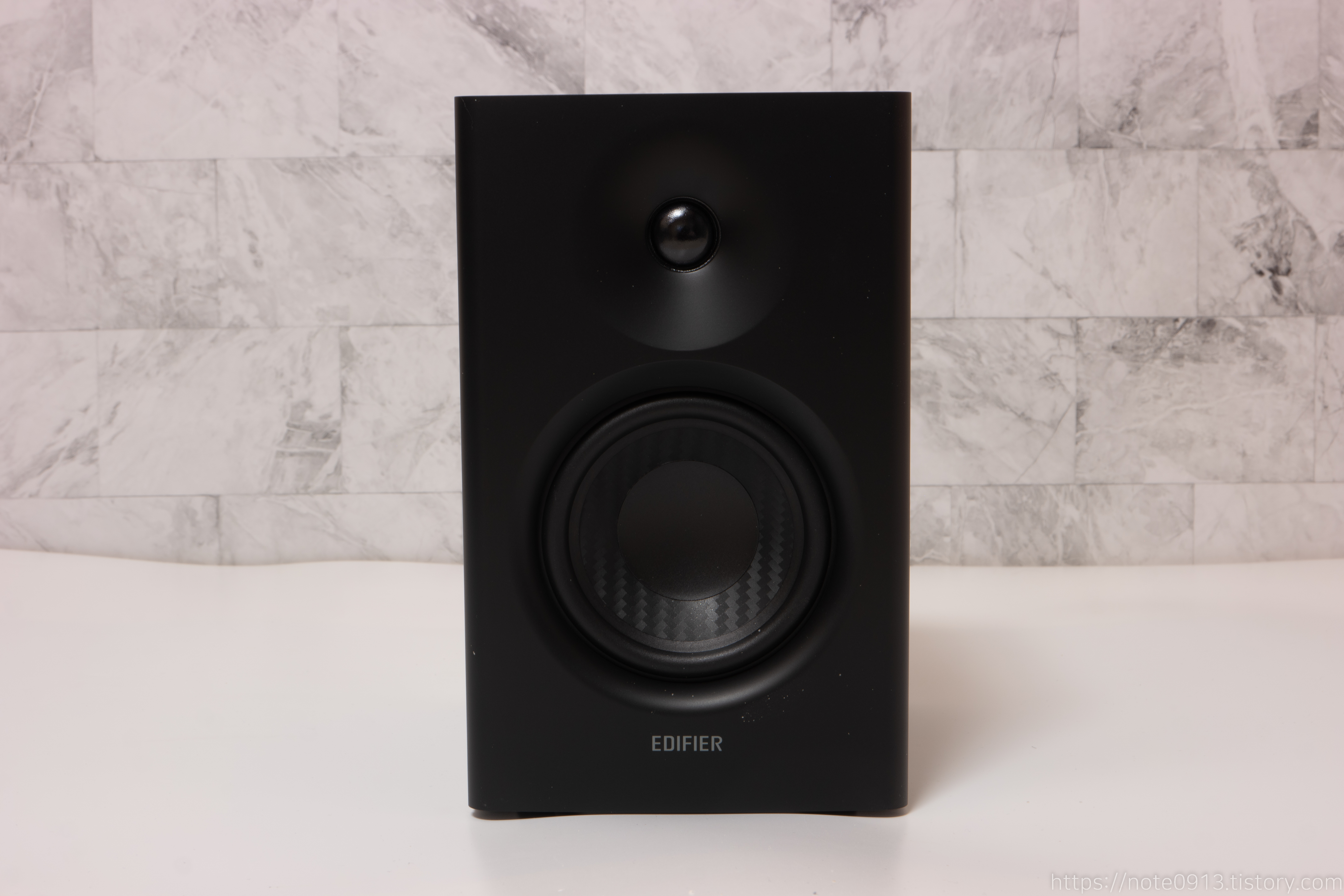 왼쪽 스피커입니다. 스피커 디자인은 좋아 보입니다. 트위터 부분을 만져봤는데 엄청 말랑한 느낌이 듭니다. 트위터 쪽은 조심해야 할 것 같습니다.