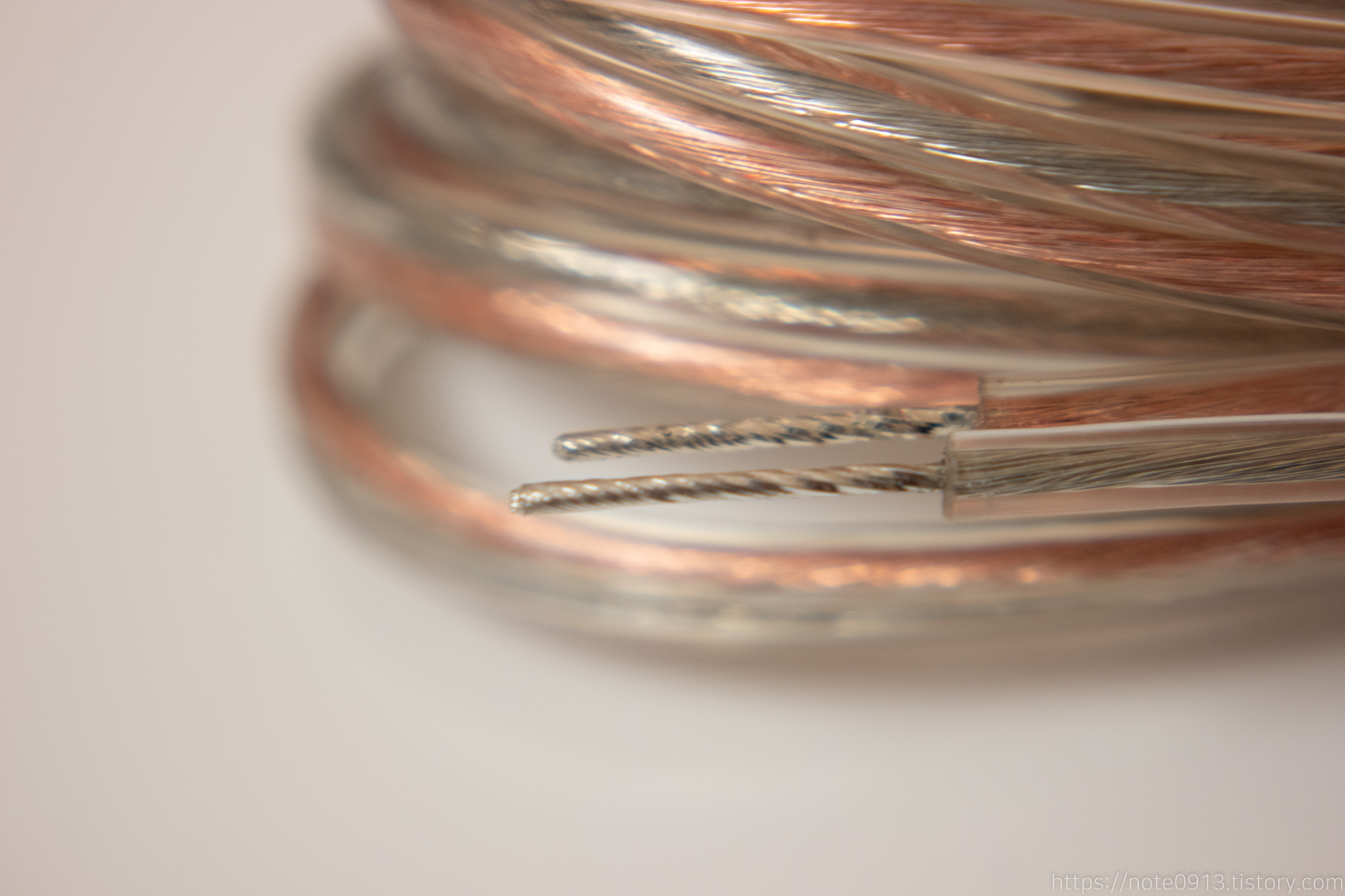스피커 케이블을 보니 기본적으로 납이 먹여져 있습니다. 납으로 고정되어 있어서 선가닥이 흩어지지 않아서 좋네요.