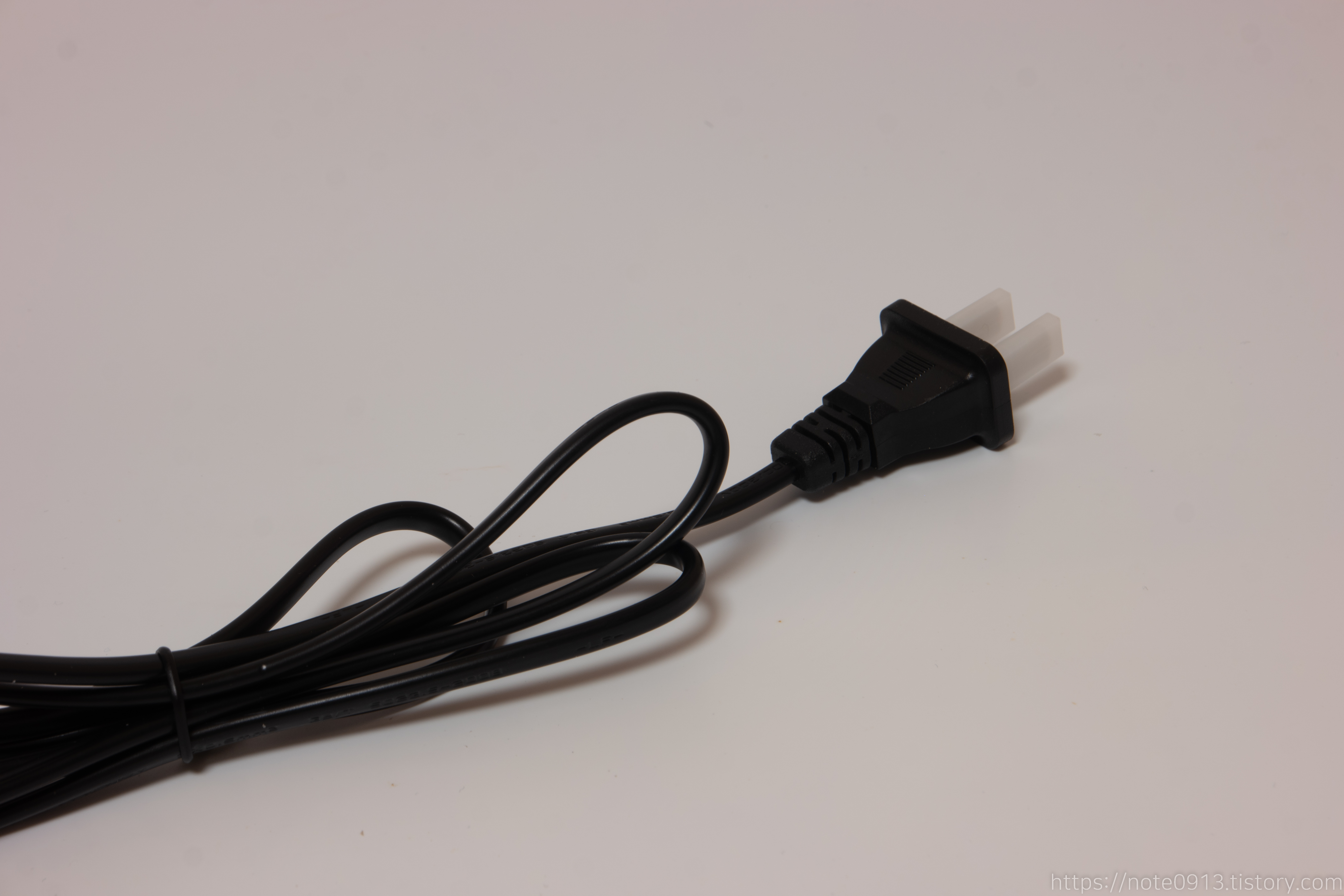 케이블은 110V 단자라서 한국에서 사용하려면 변환 어댑터(돼지코)를 이용해야 합니다.