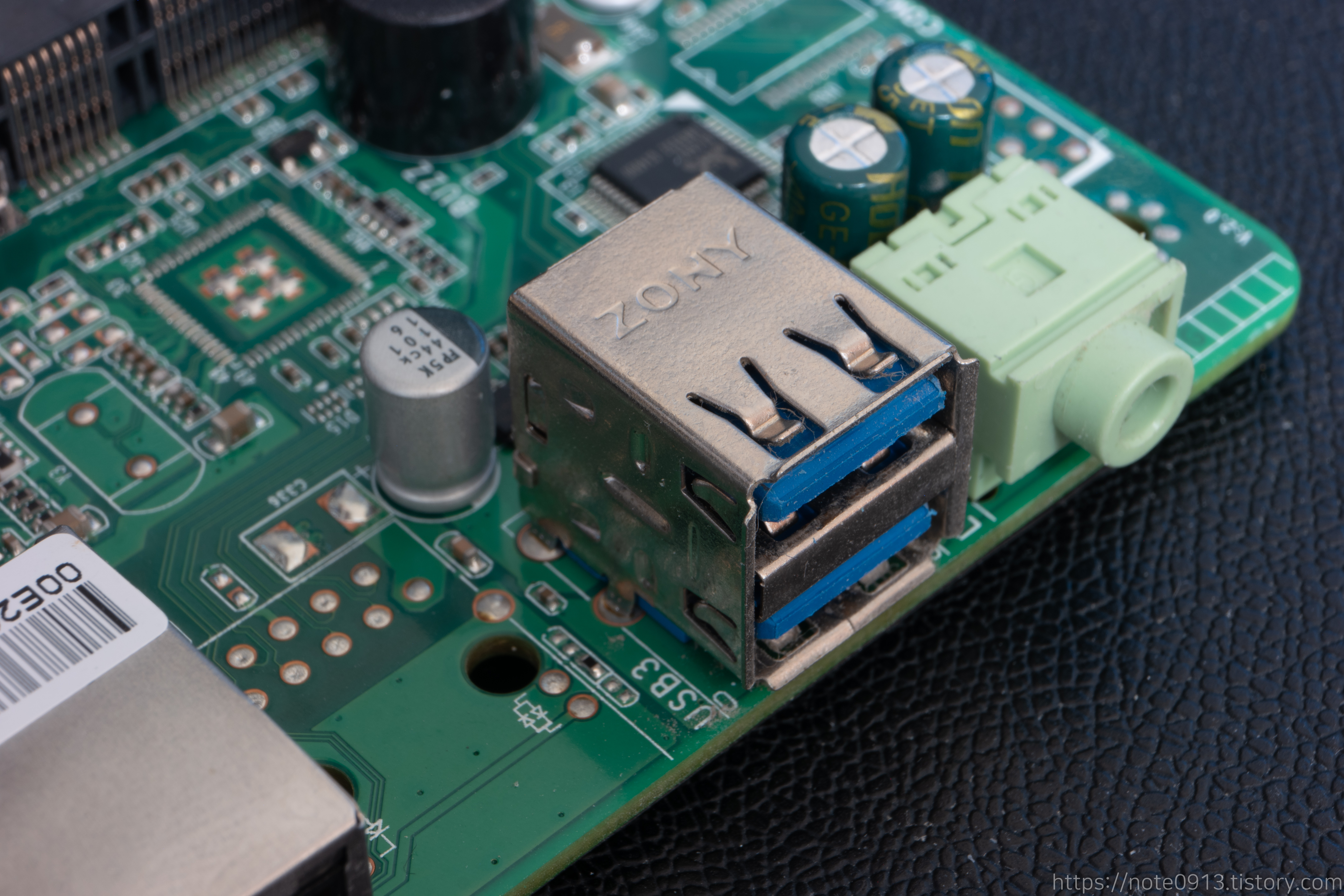 USB 3.0 단자압니다. 위에 ZONY라는 글자가 새겨져 있습니다. USB 3.0 단자가 2개가 적층된 형태입니다.