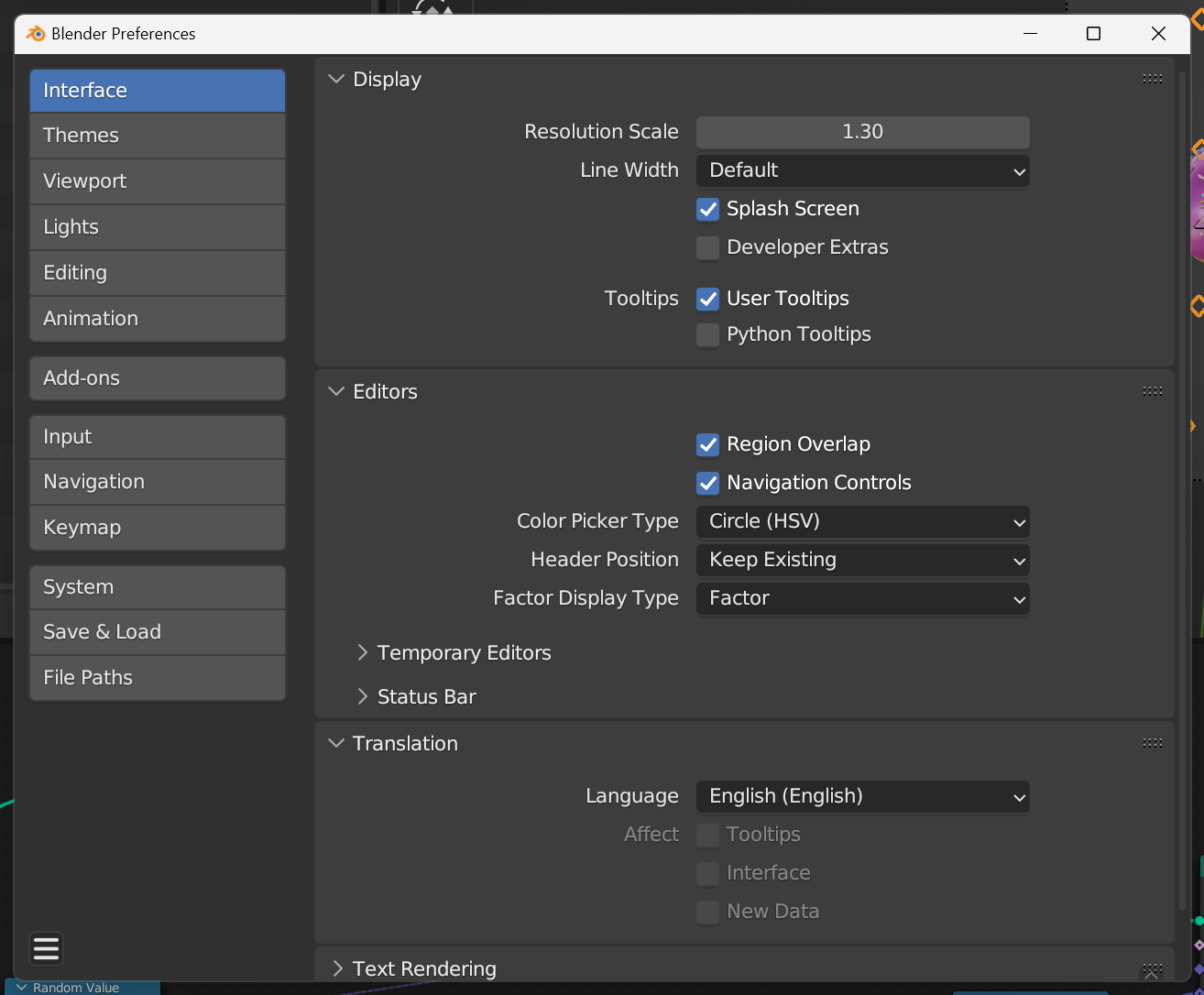 이 값을 변경하면 블렌더의 전반적인 UI와 글자 크기가 변경됩니다. 저 같은 경우에는 1.3으로 설정했습니다.