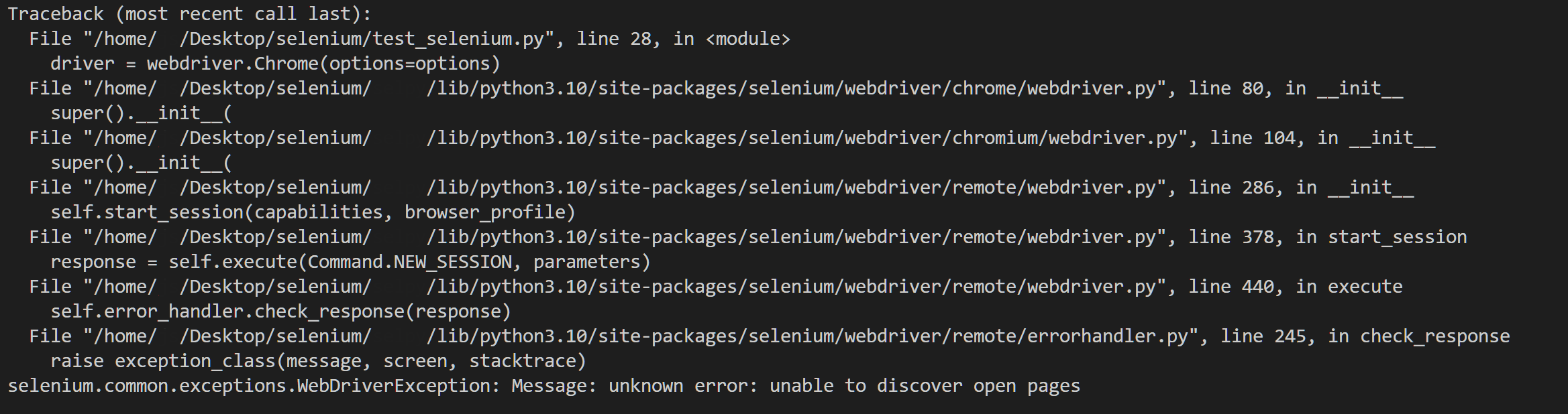 File "/home/Desktop/selenium/lib/python3.10/site-packages/selenium/webdriver/remote/errorhandler.py", line 245, in check_response