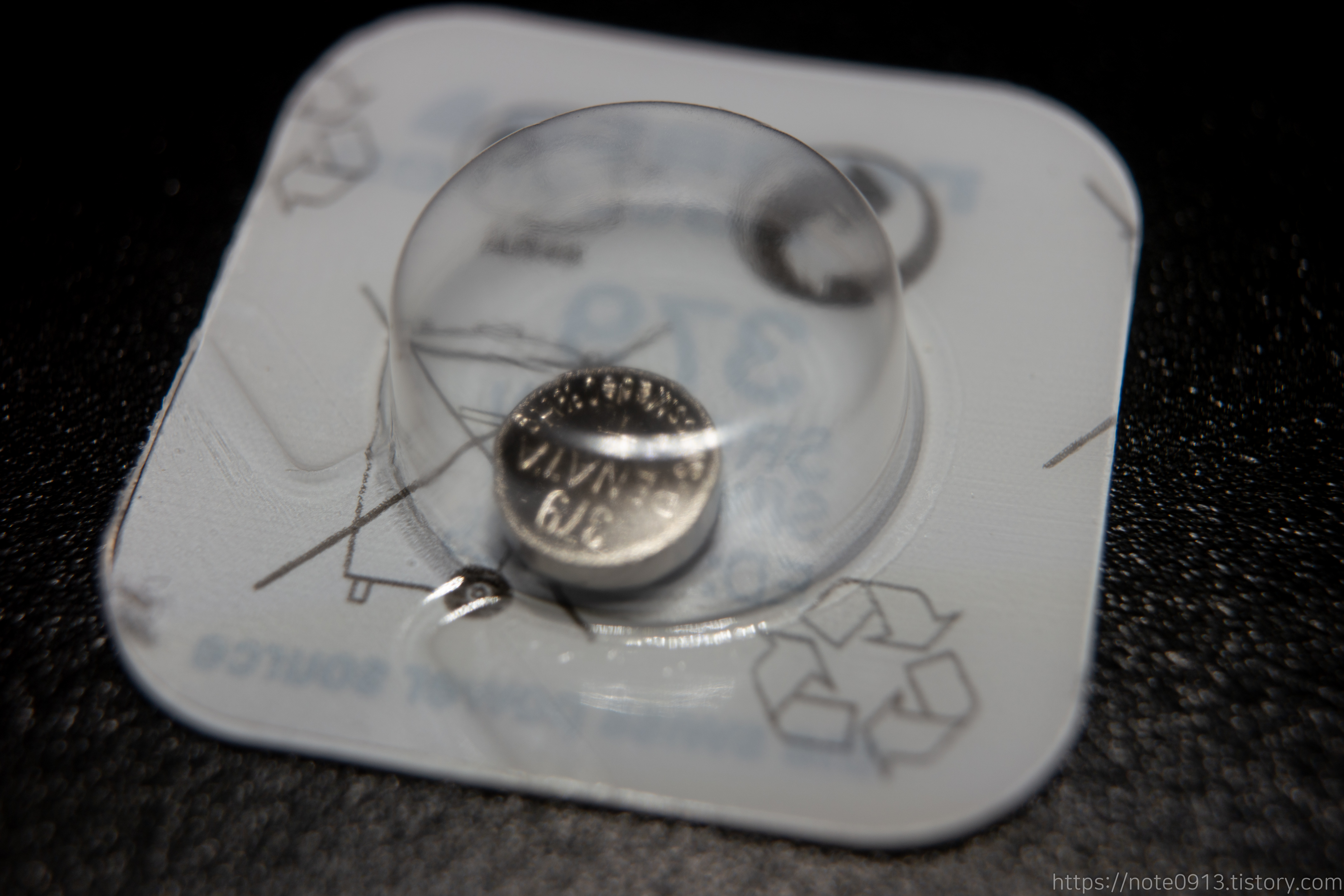 원래 들어있던 소니 건전지를 제거하고 새로운 레나타 건전지를 넣어 줍니다.