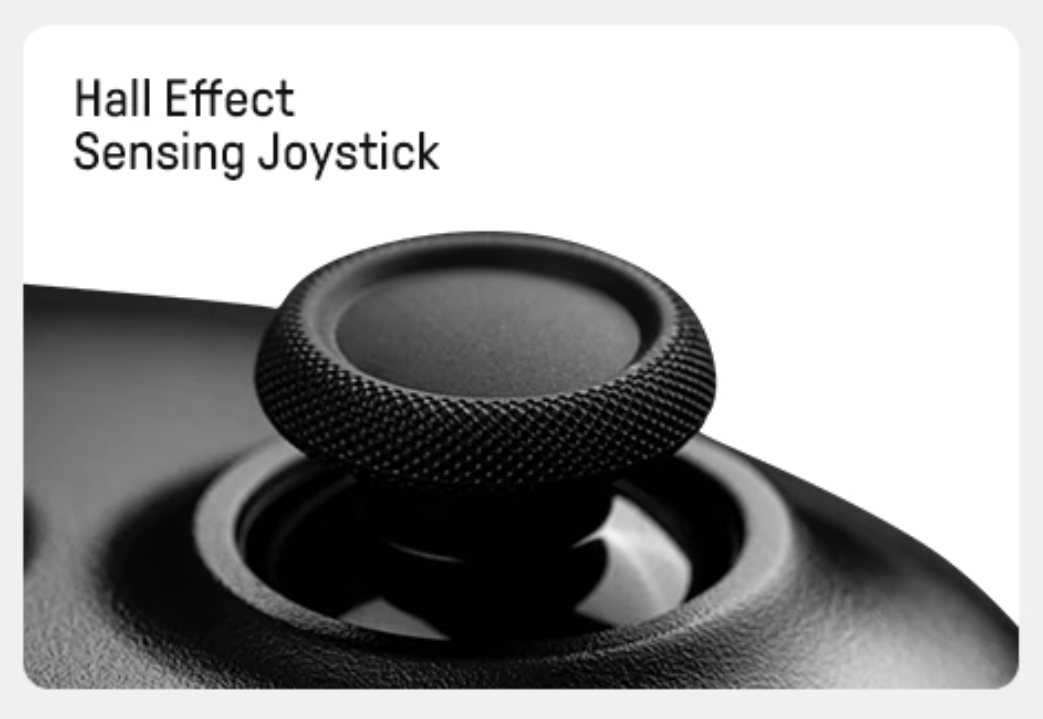 블루투스 버전의 가장 큰 차이점은 바로 조이스틱에 홀센서를 사용하는 점입니다. 스위치의 프로콘이나 일반 패드들은 보통 가변저항을 통해 조이스틱 값을 읽어오는데 8bitdo Ultimate Bluetooth 버전은 홀센서를 사용해서 다른 패드와는 달리 저항값을 읽어오는게 아니라 자기장의 세기를 읽어와서 사용하는 방식입니다.