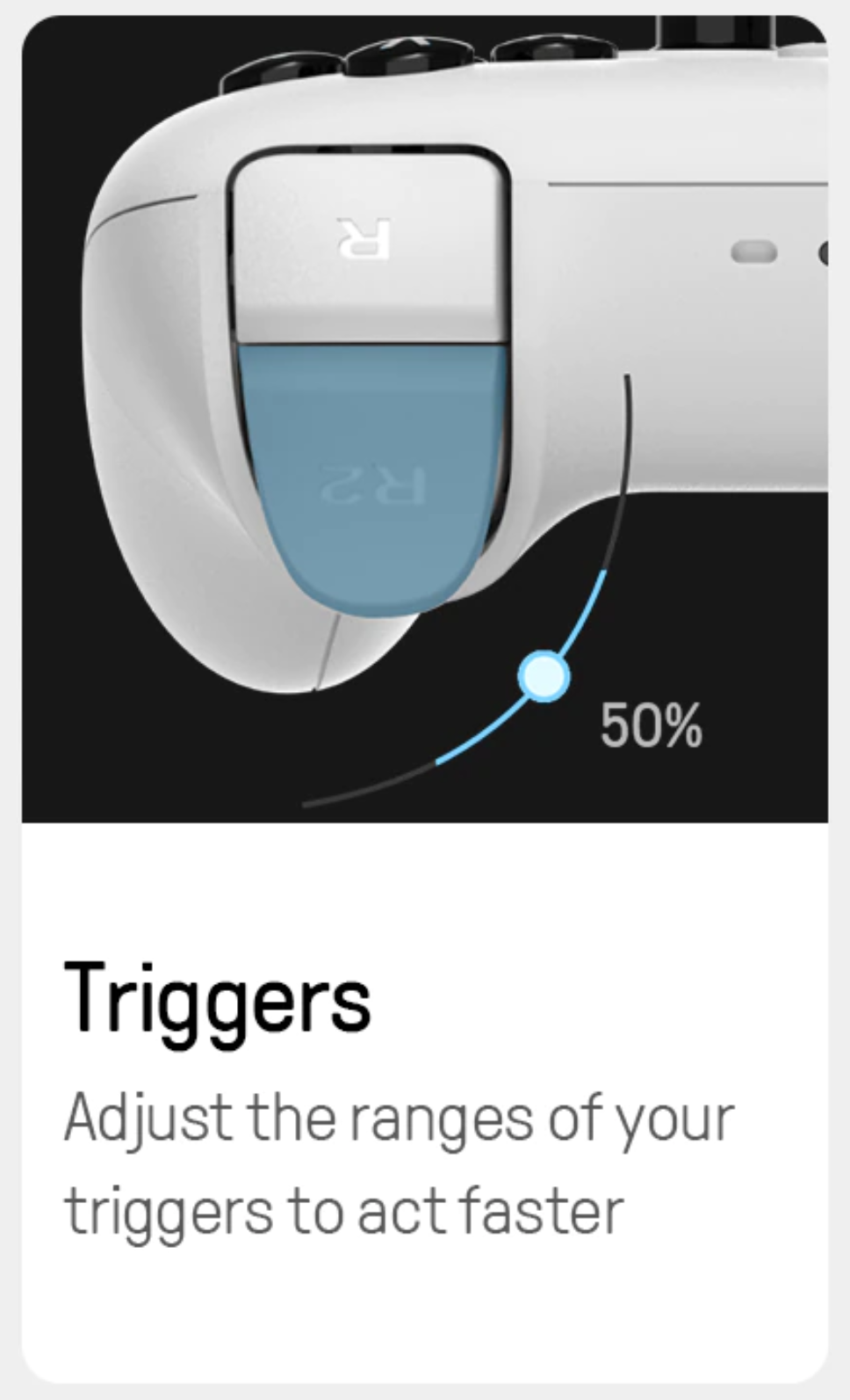 이 외에도 프로콘과 같이 단순히 눌림을 감지하는 방식인 디지털 방식의 트리거가 아날로그 트리거 방식으로 트리거를 얼마나 눌렀는지를 감지하기 때문에 누른 강도도 인식하는 것도 눈에 띄는 장점입니다.
