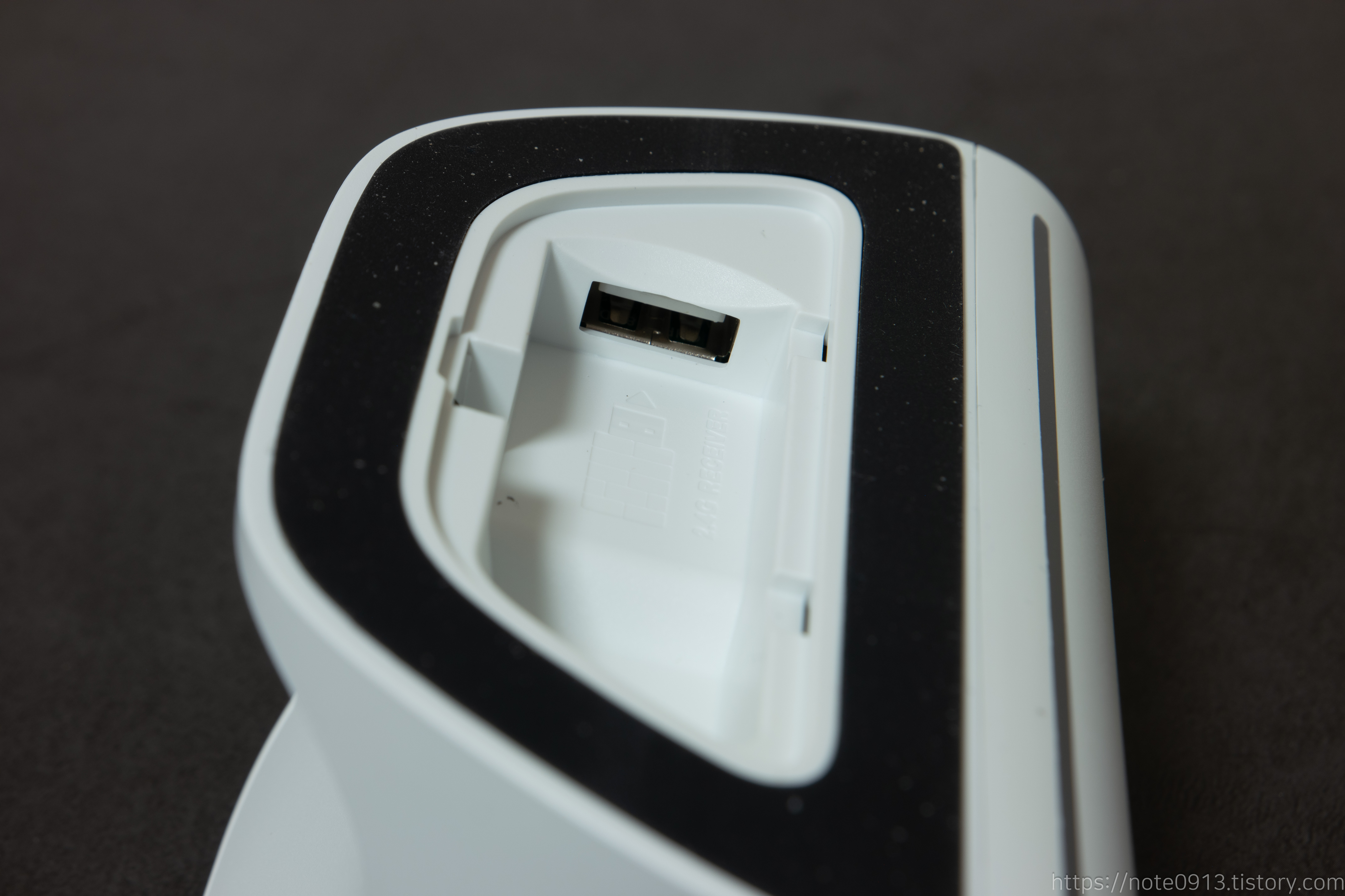 단순히 USB 수신기만 보관하는 줄 알았는데 옆을 보니 USB 포트가 있습니다. 충전독에 수신기를 꽂아놓고 PC에 연결해서 사용도 가능하네요.