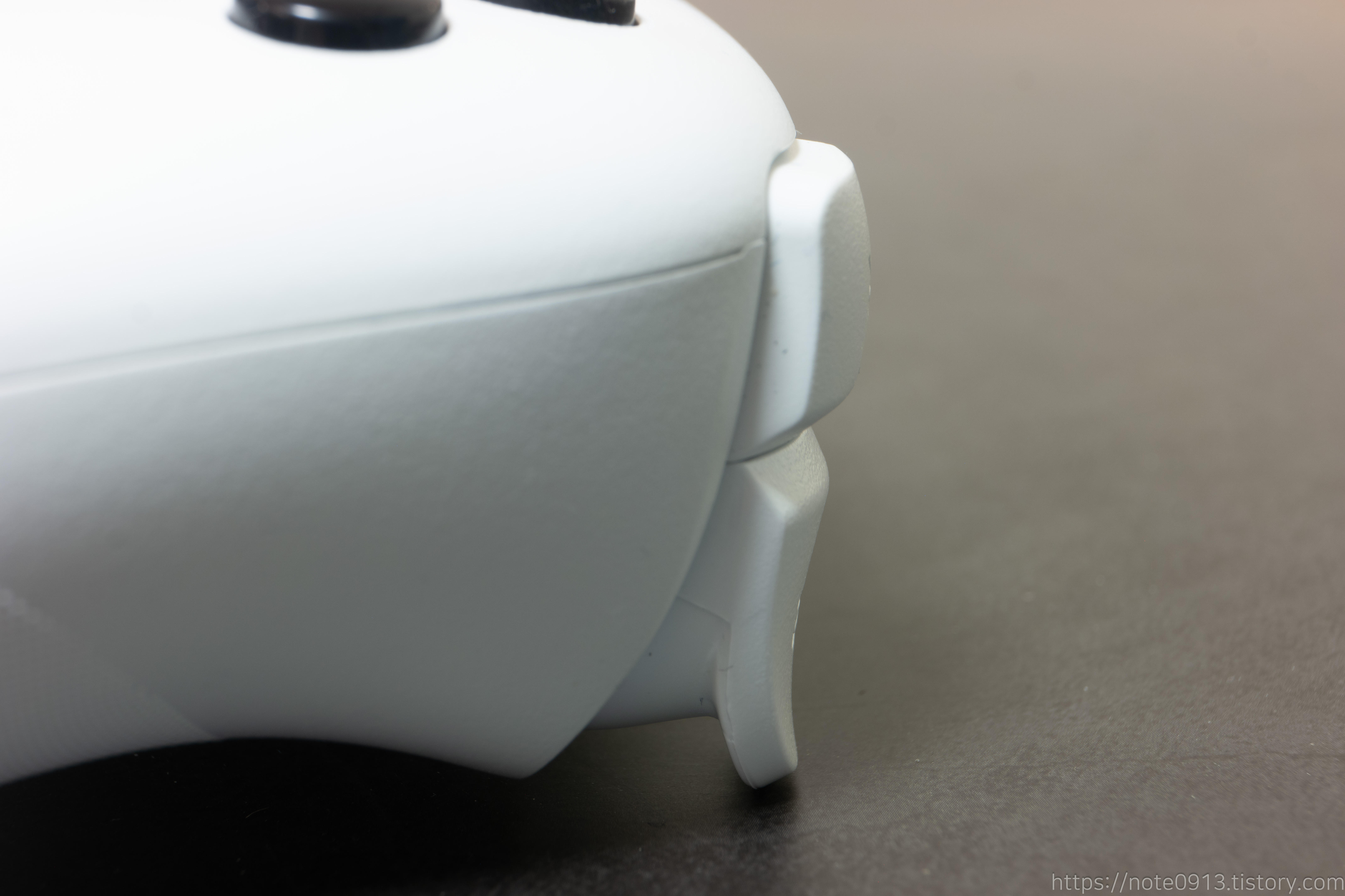 트리거 버튼쪽입니다. R2와 L2 버튼은 아날로그 입력이라서 끊기는 부분없이 부드럽게 들어갑니다.