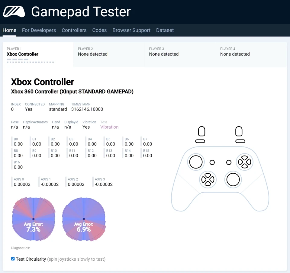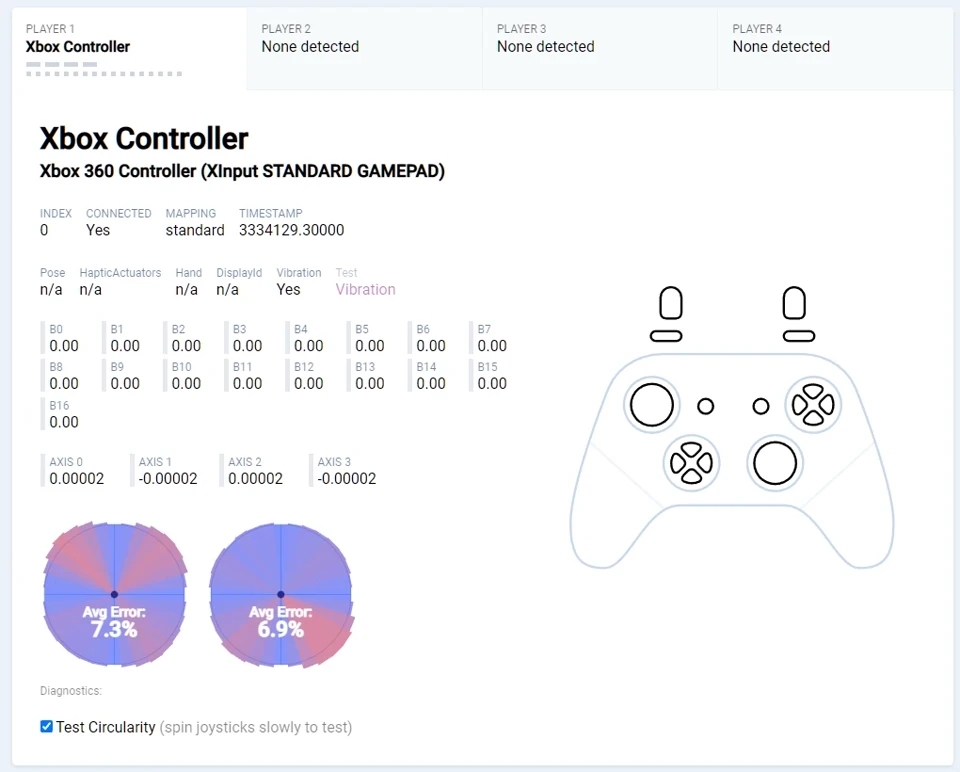 아날로그 트리거라서 디지털 트리거와는 다르게 트리거를 누르는 강도에 따라 입력 값이 서서히 증가하는 것을 확인할 수 있습니다.