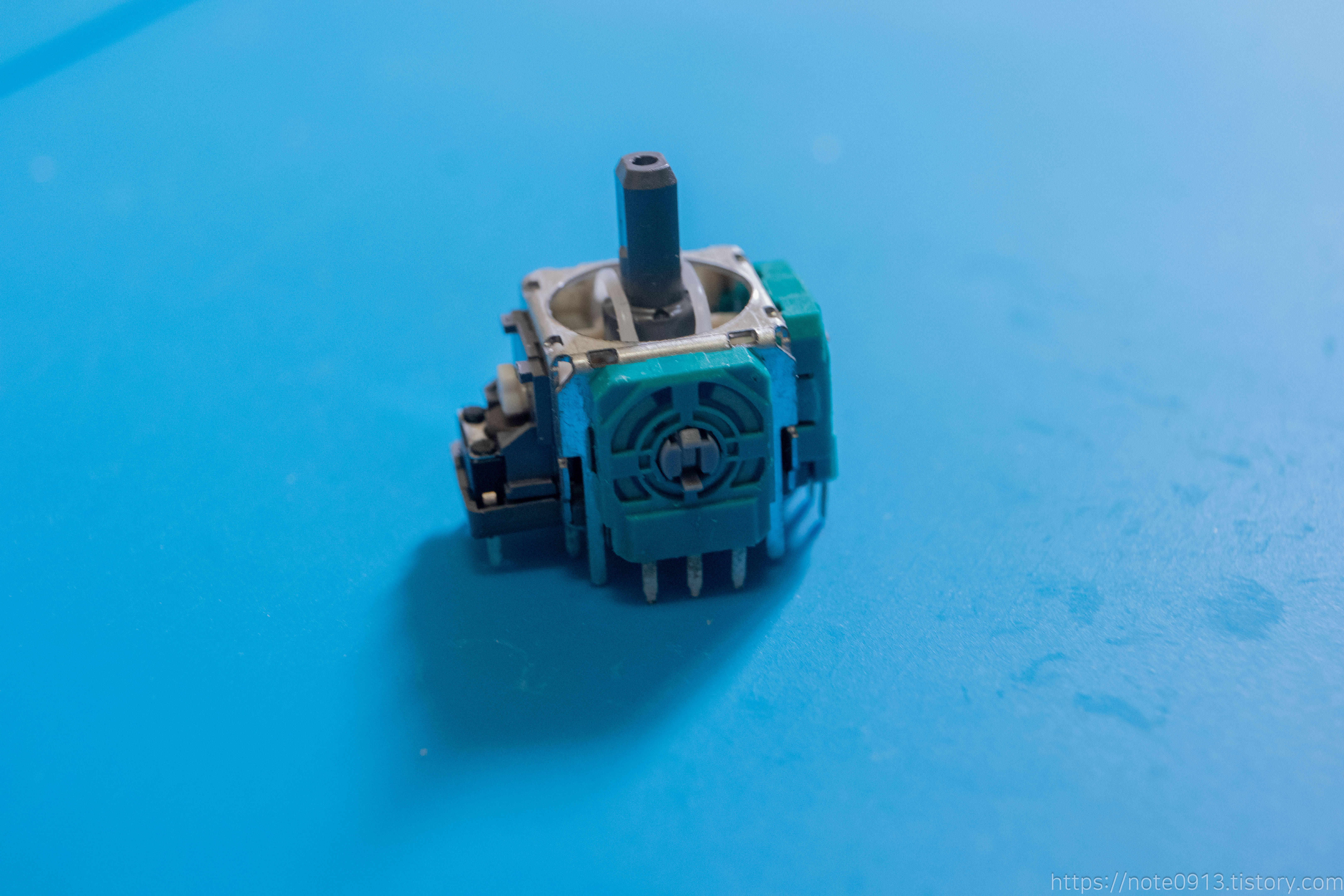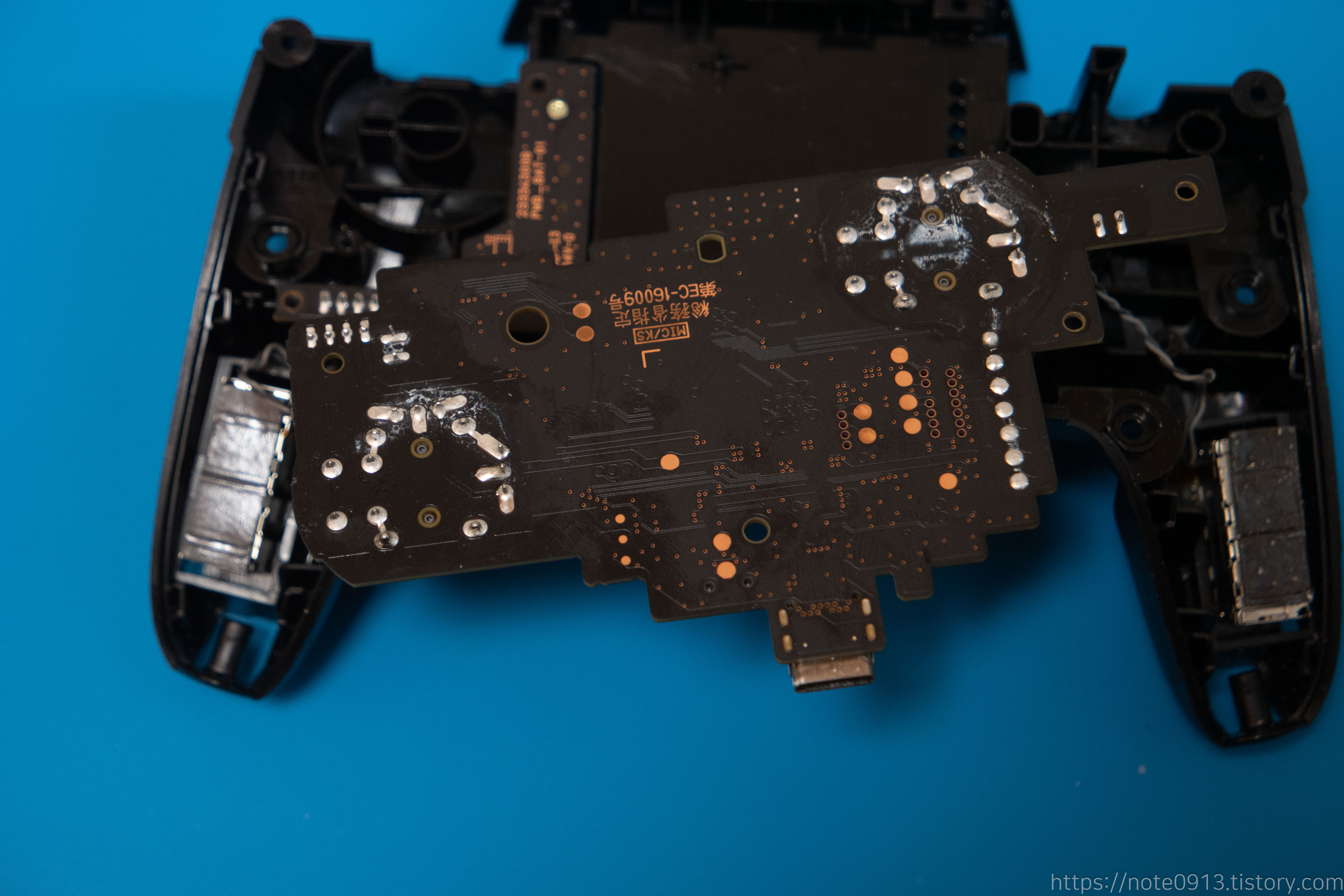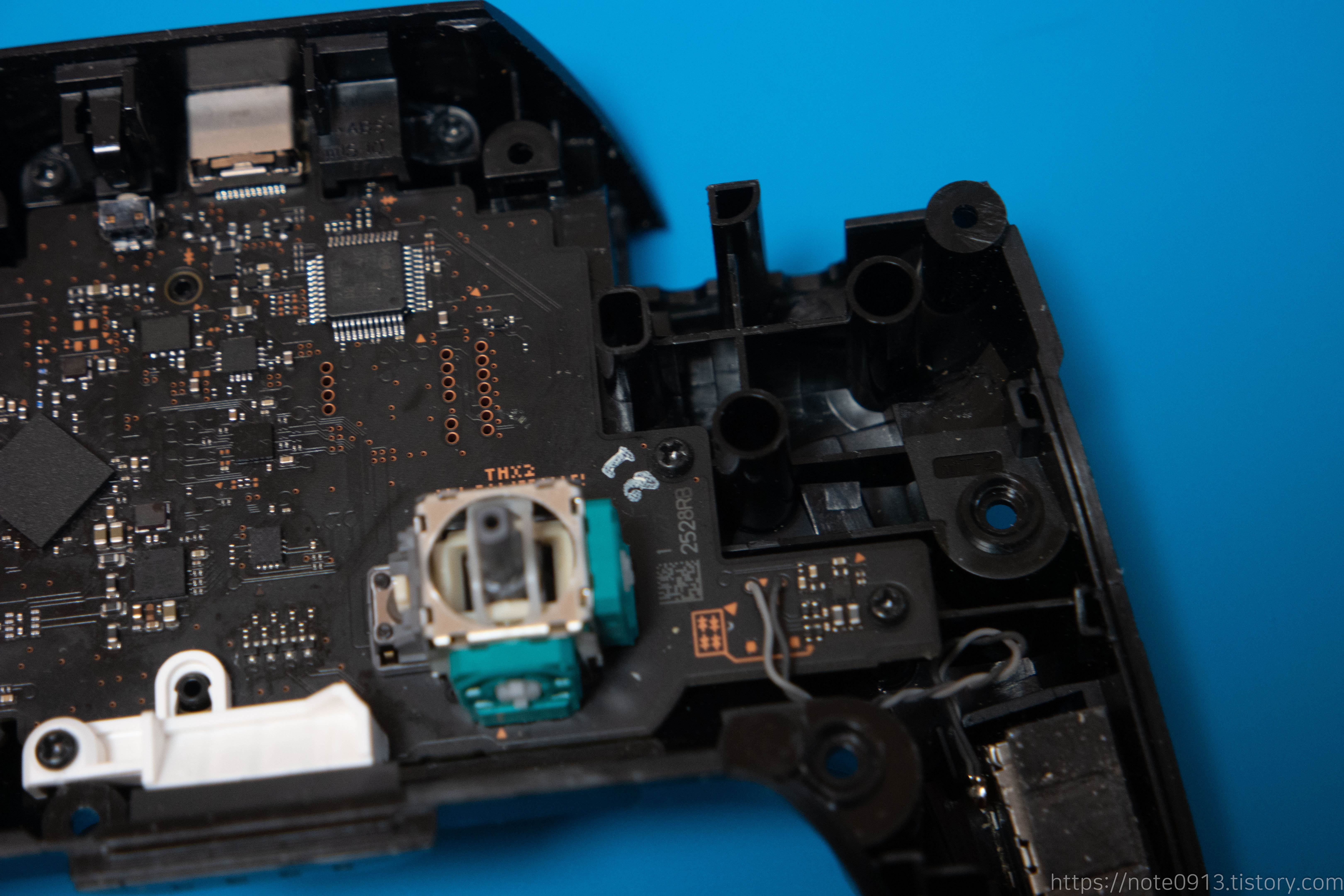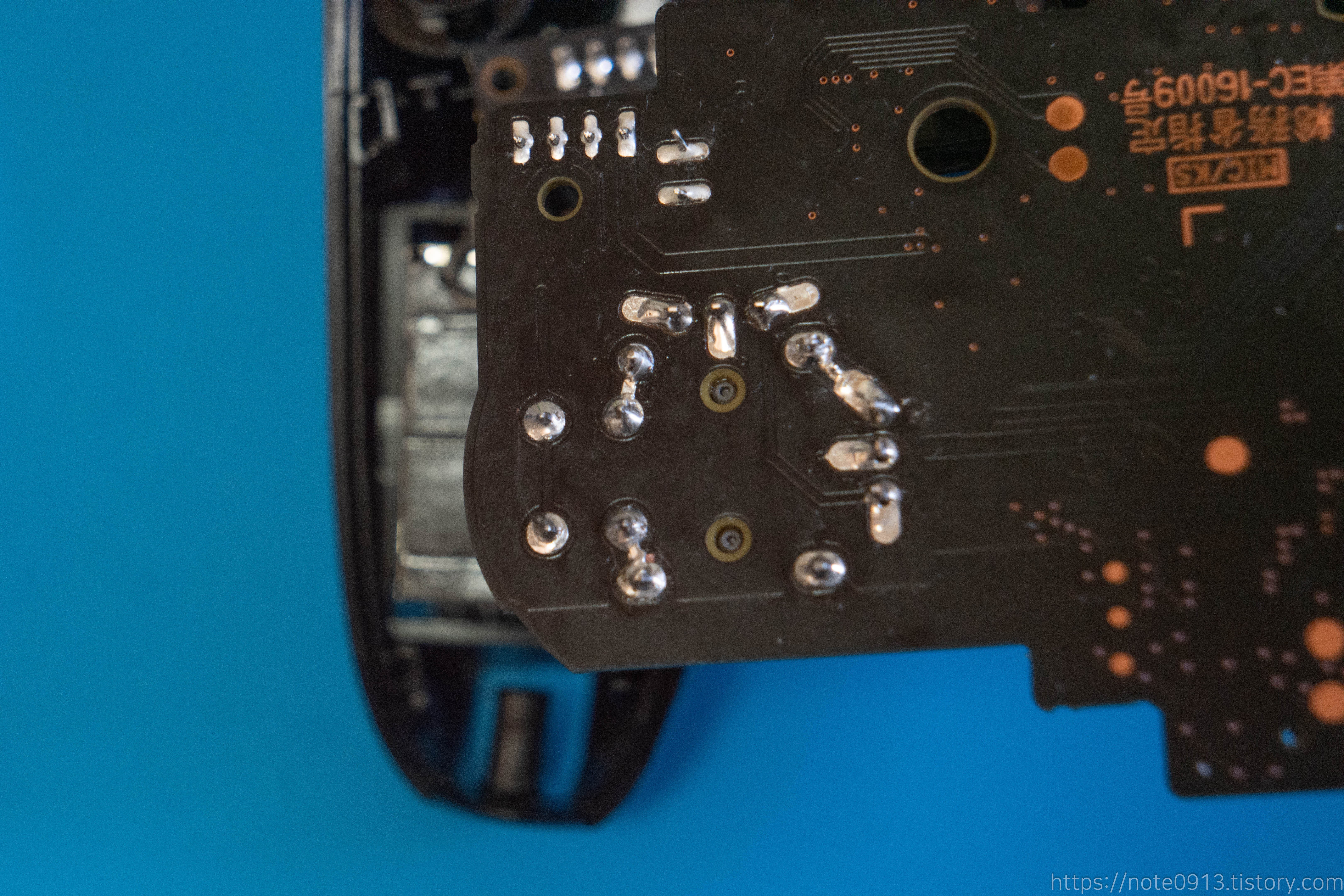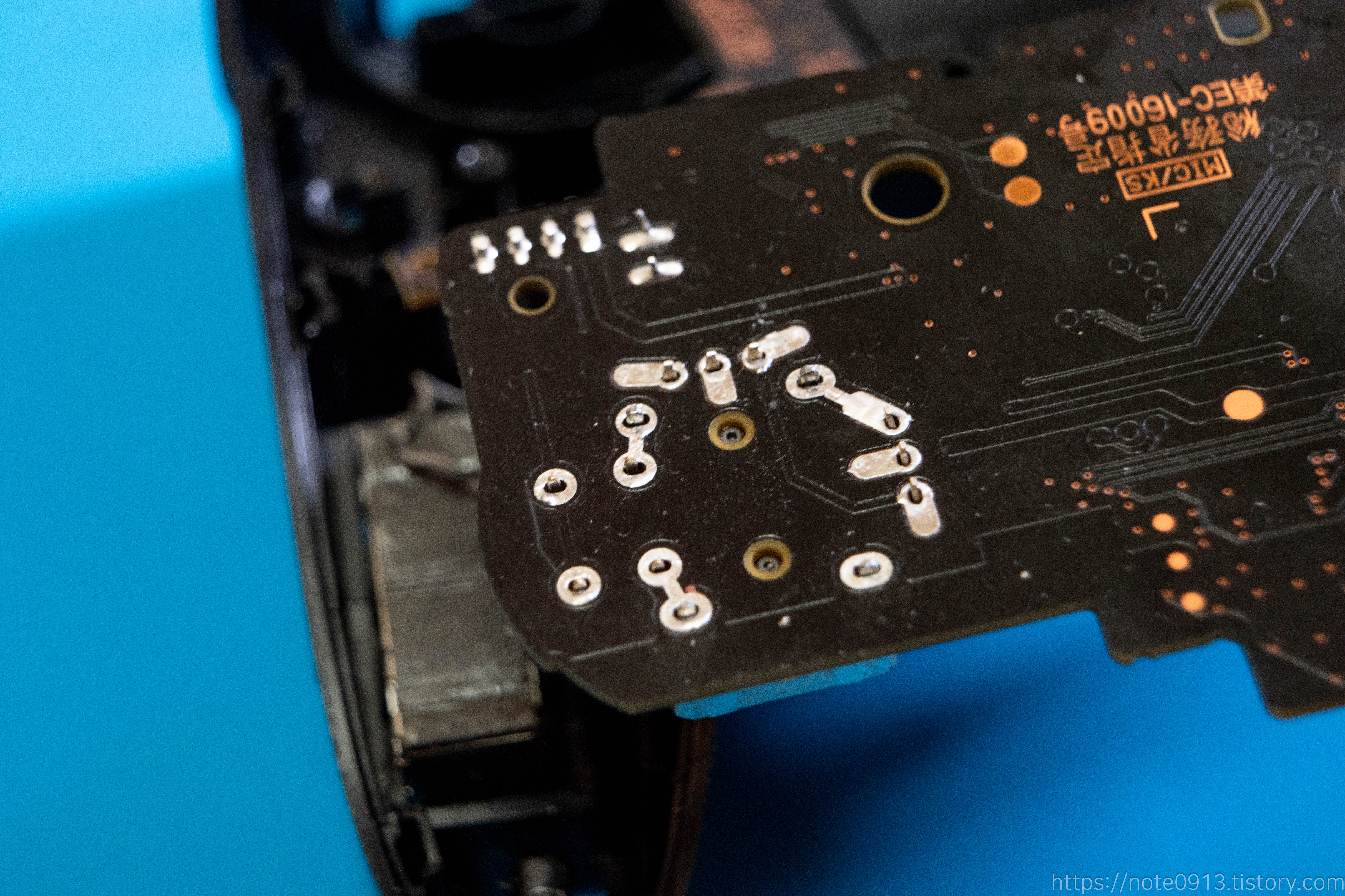 새로운 아날로그 스틱을 기판에 장착하고 다시 납땜해 줍니다.