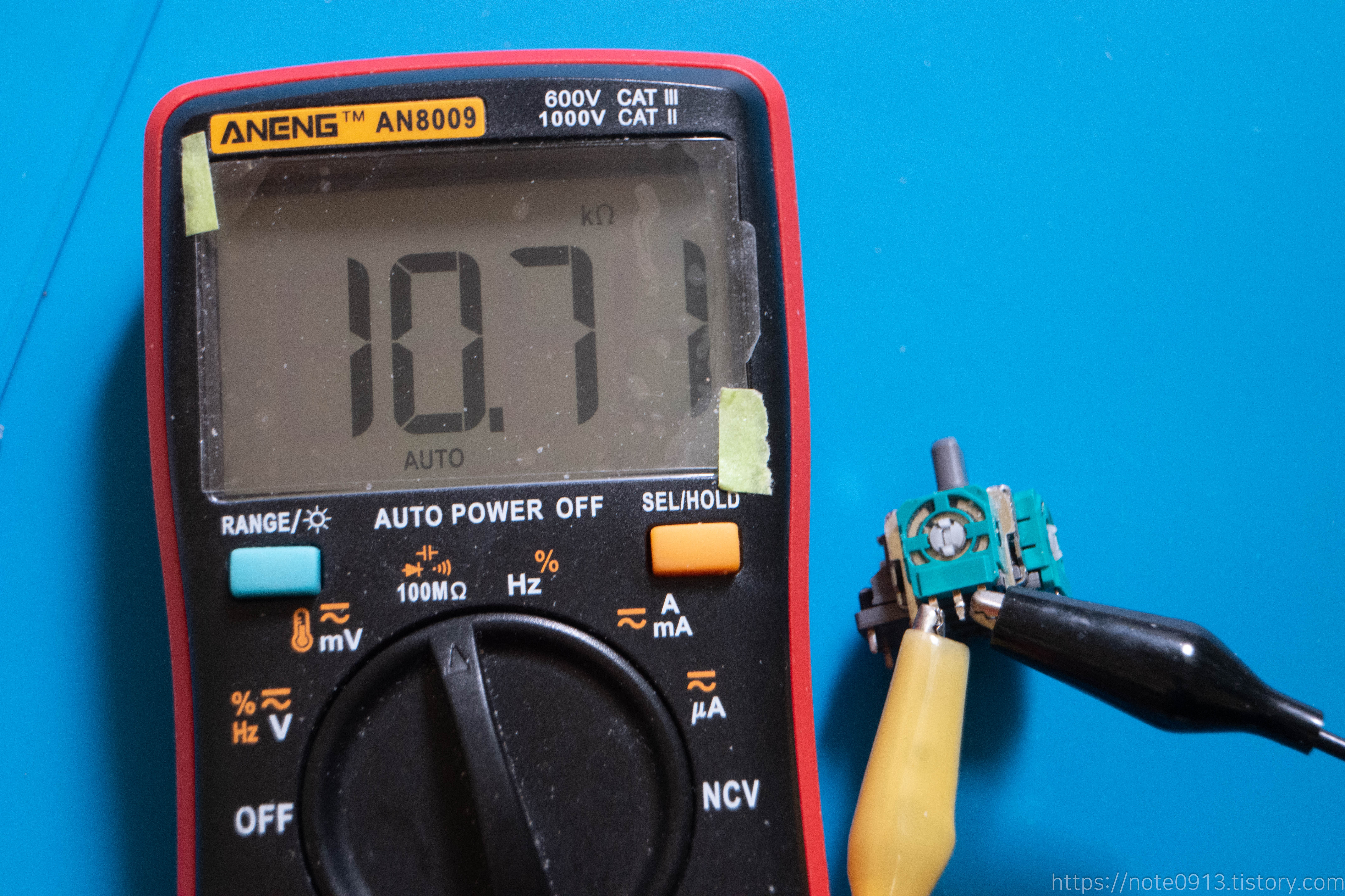상하를 담당하는 가변저항은 12.08KΩ, 좌우 가변저항은 10.71KΩ으로 측정됩니다.