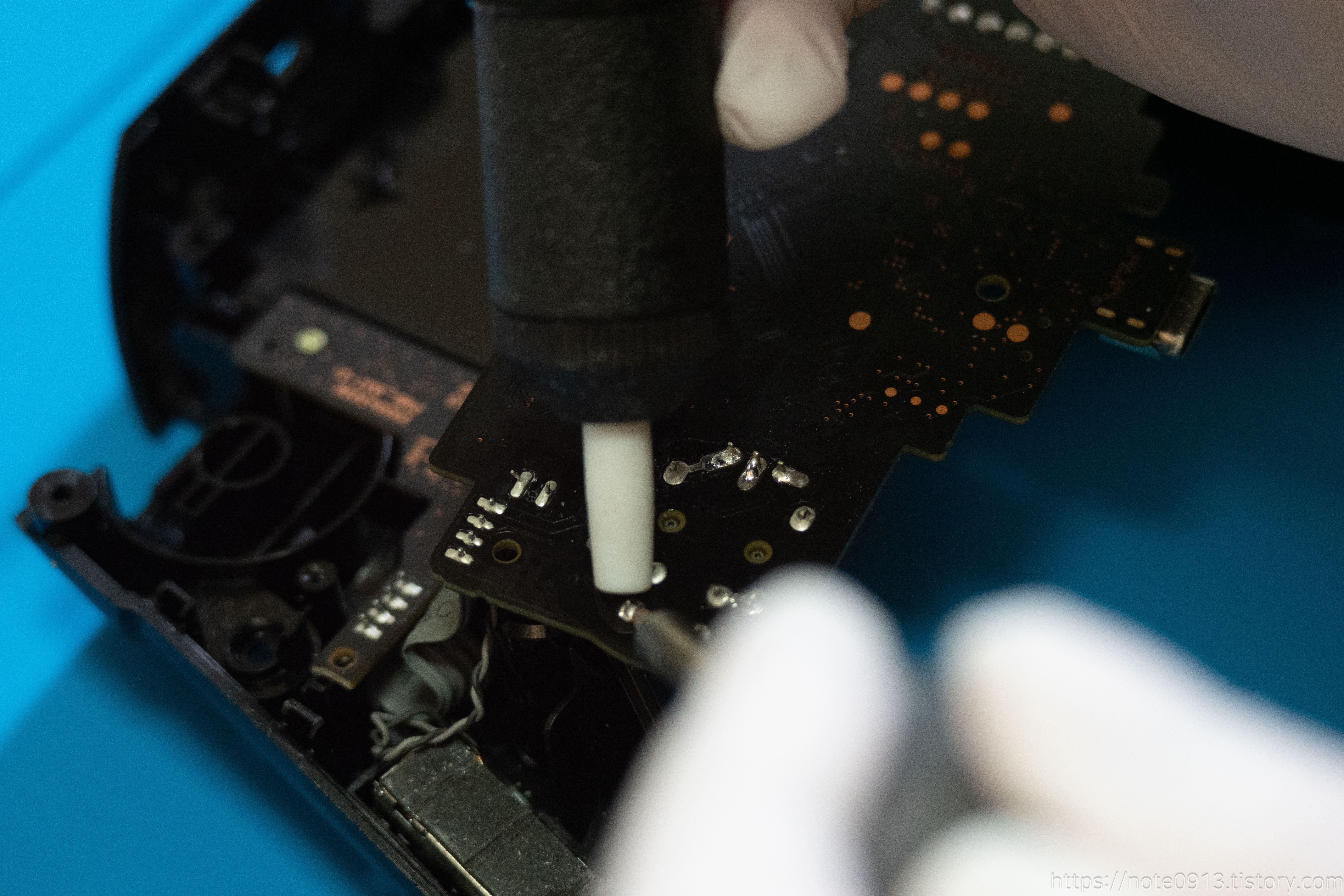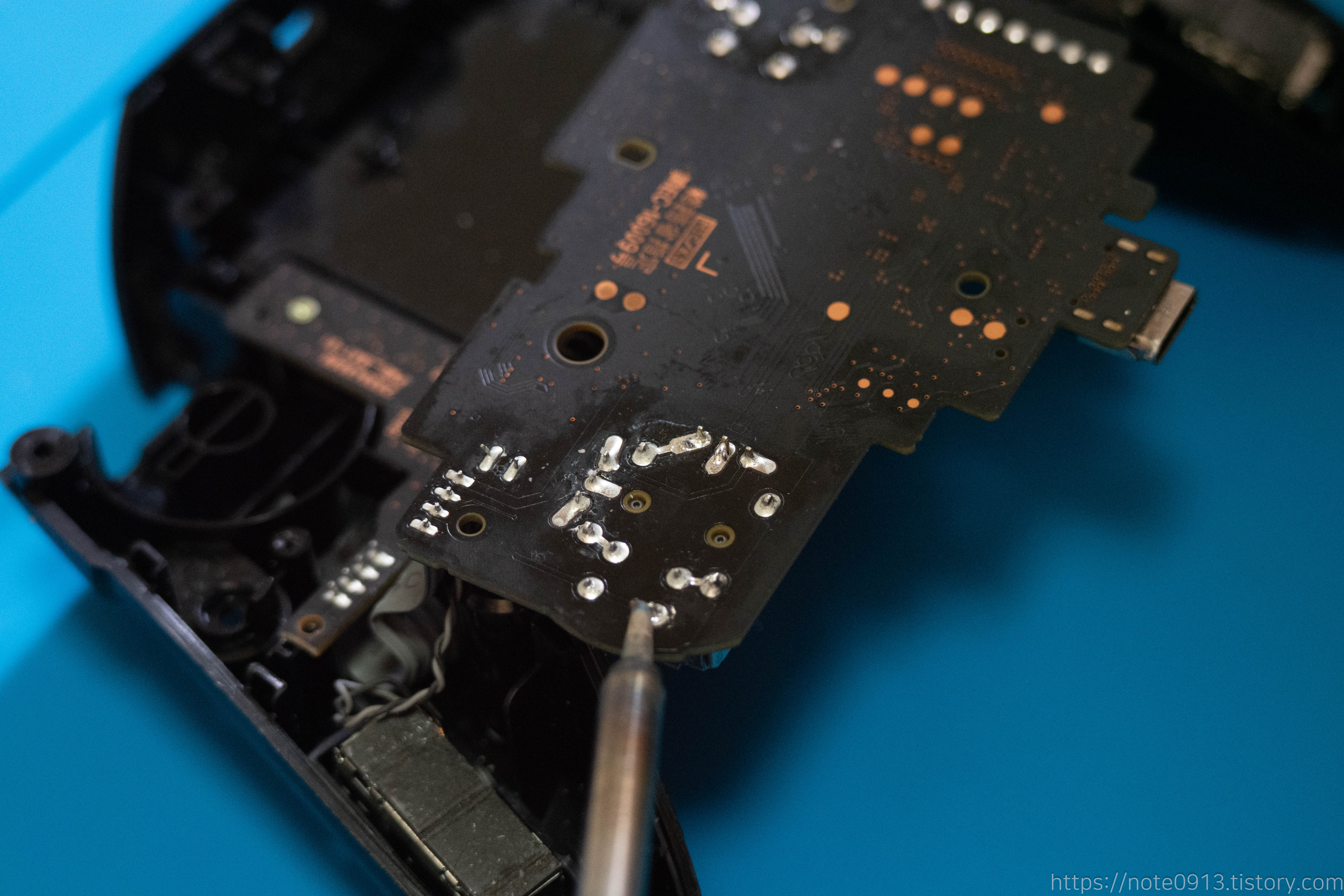 이제 아날로그 스틱을 분리하기위해서 디솔더링(납 제거) 작업을 해야 합니다.