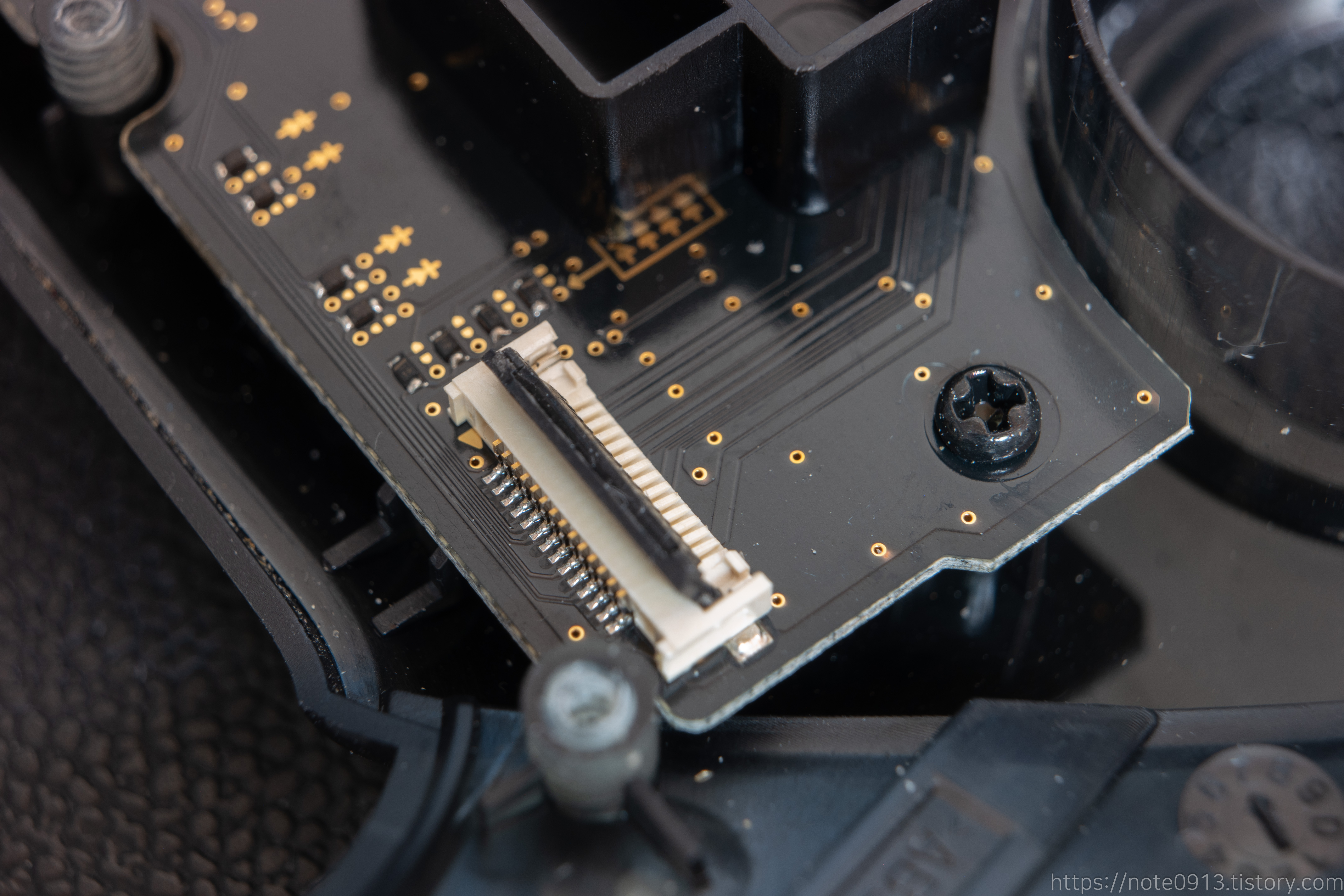 플레이어 표시 LED 쪽에도 나사 1개를 풀어줍니다. FFC 케이블도 분리해줍니다.
